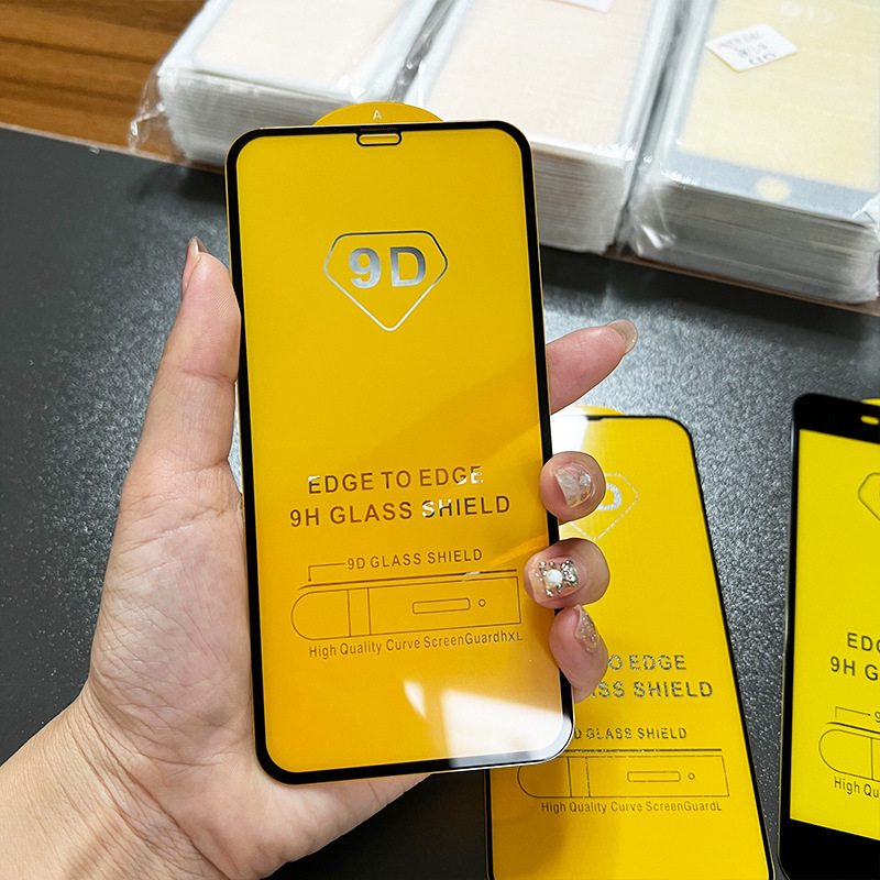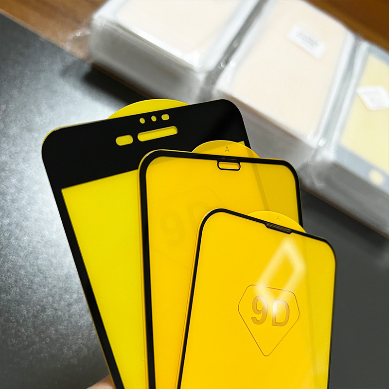 Película templada fuerte de serigrafía 9D negro [pedido mínimo de 25 múltiplos de un solo modelo]