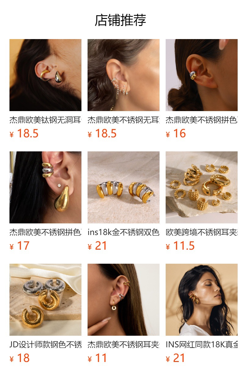 Jieding clip de hueso de la oreja de acero inoxidable europeo y americano sin orejas perforadas Pendientes de alta gama de nicho Joyas de acero de titanio Earrings transfronterizos
