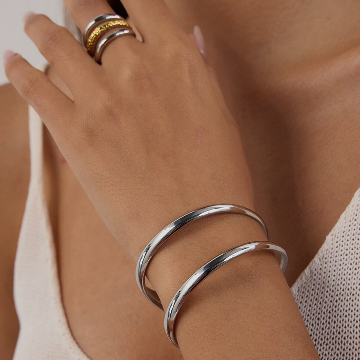Jeding pulsera de apertura hueca de acero inoxidable joyería que no se desvanece, joyería de acero de titanio de alta calidad de lujo ligero femenino, joyería transfronteriza