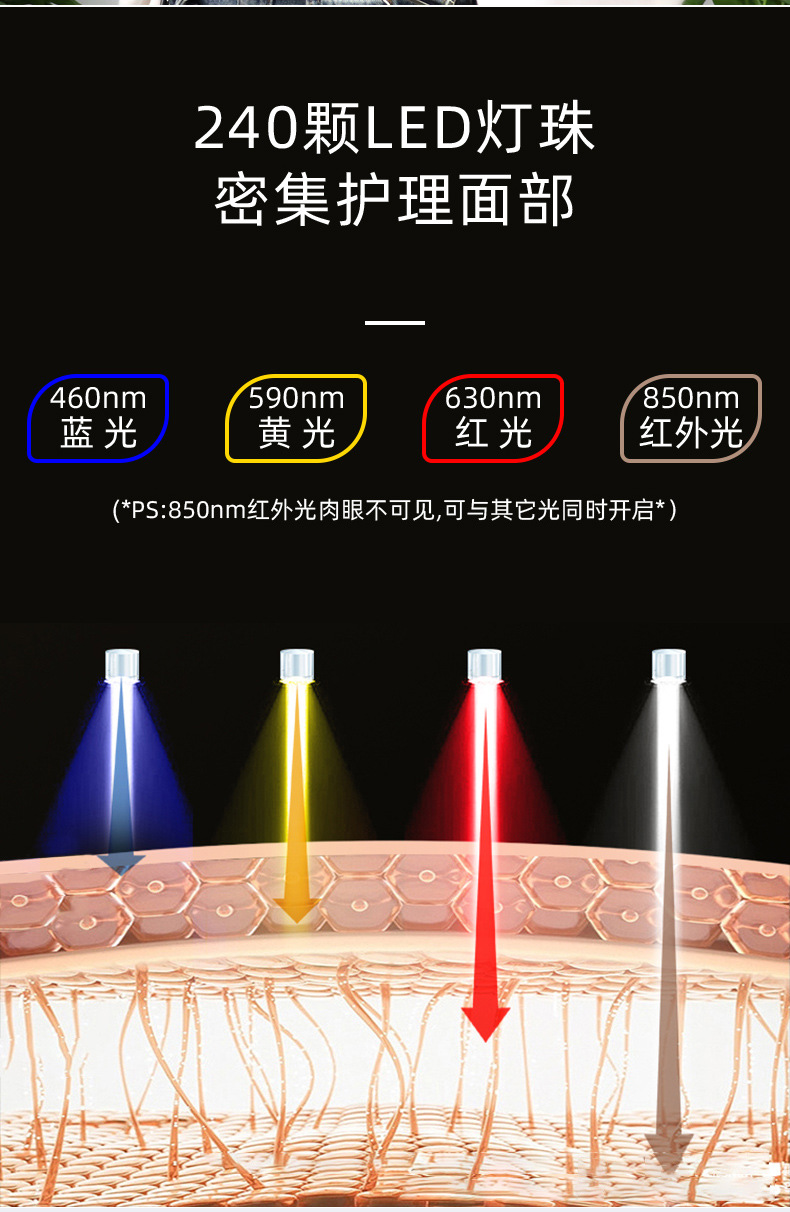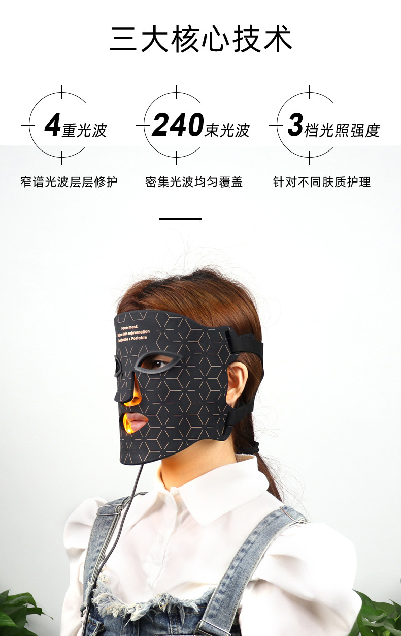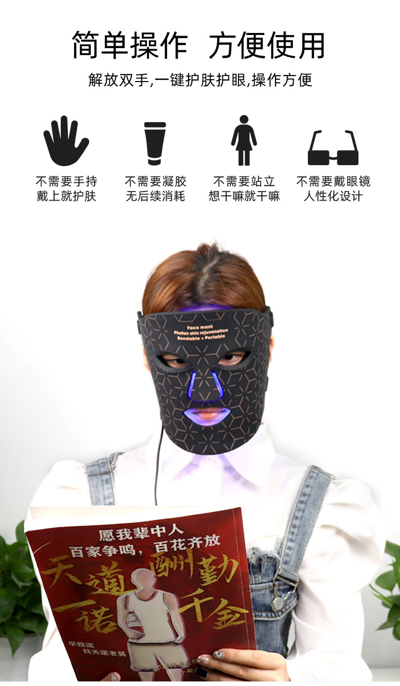 Luz roja máscara de belleza LED rejuvenecimiento de la piel máscara de silicona instrumento de belleza cara hogar fila grande luz roja luz azul máscara instrumento