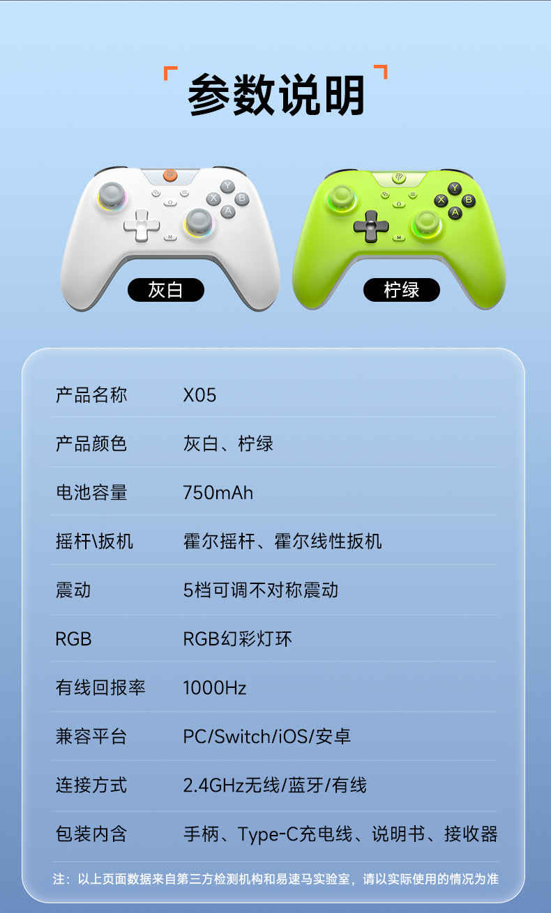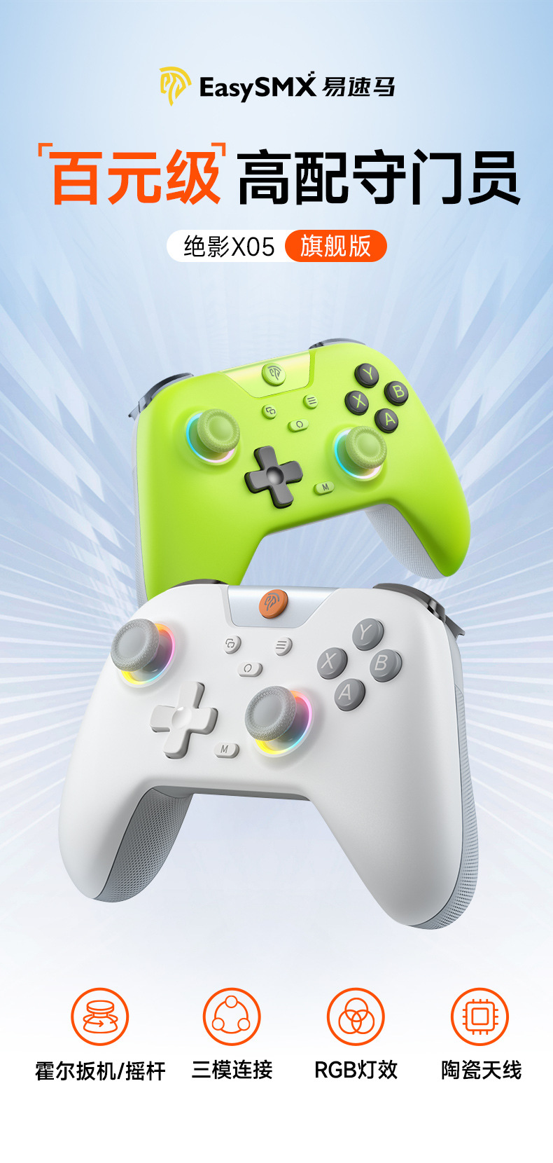 EasySMX Jue Shadow X05 mando de juego de venta caliente, 2.4G USB / Bluetooth / cable controlador de juego de tres modos