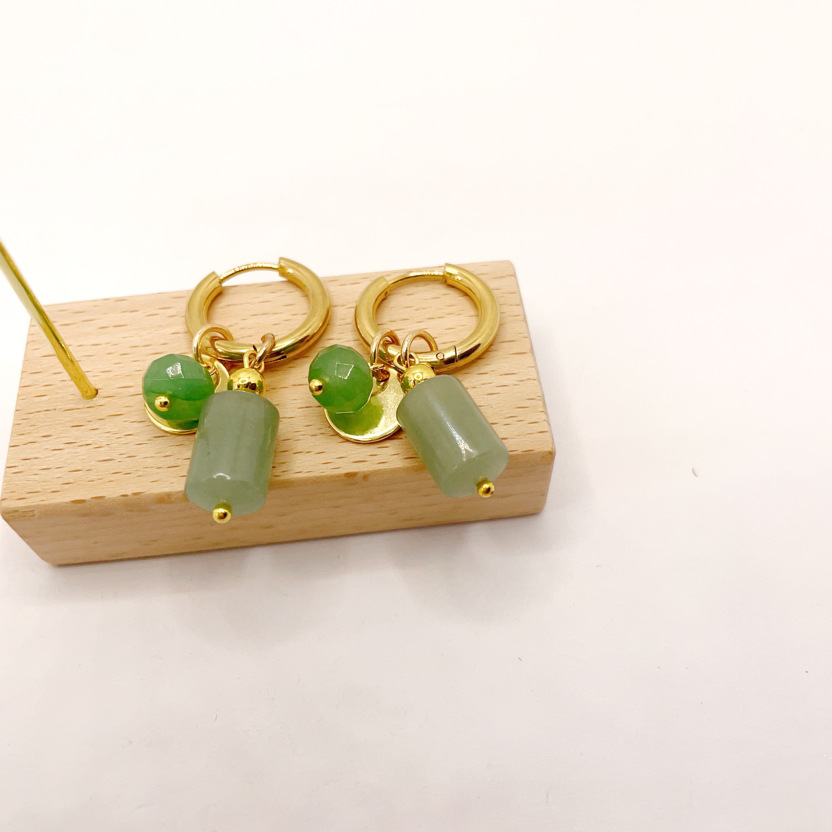Deseo nueva llegada de acero inoxidable de las mujeres pendientes redondos verde colgante de piedra natural vintage moda joyería impermeable