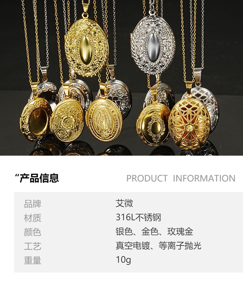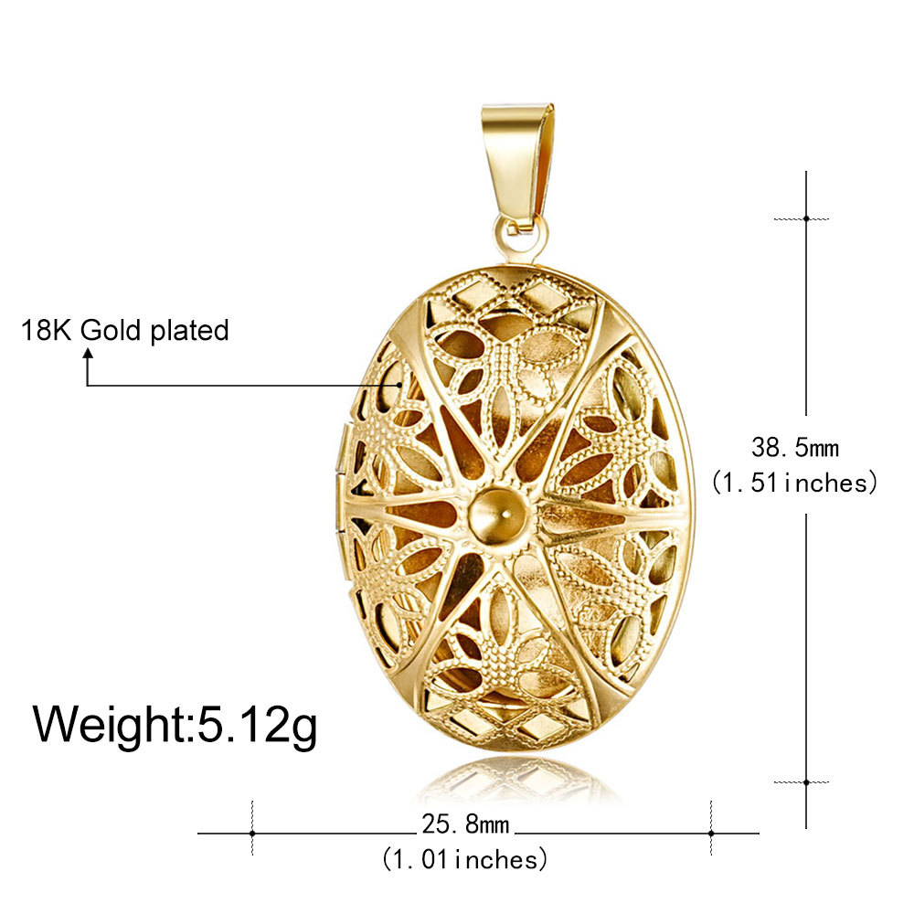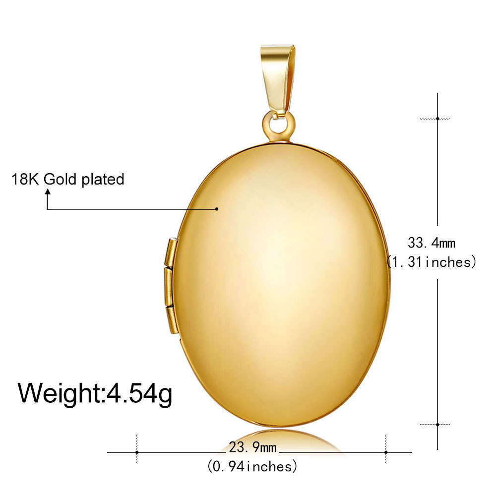 316L espejo de acero inoxidable pulido plasma ovalado bricolaje pareja caja colgante collar de galvanoplastia de oro real de 18K