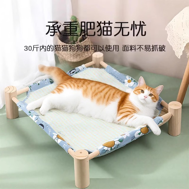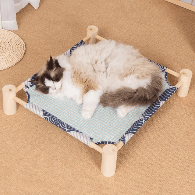 Cama para gatos Cuatro estaciones, desmontable y lavable, nido para gatos, cama de verano suspendida de lino fresco y transpirable, cama de marcha para perros, cómoda de madera