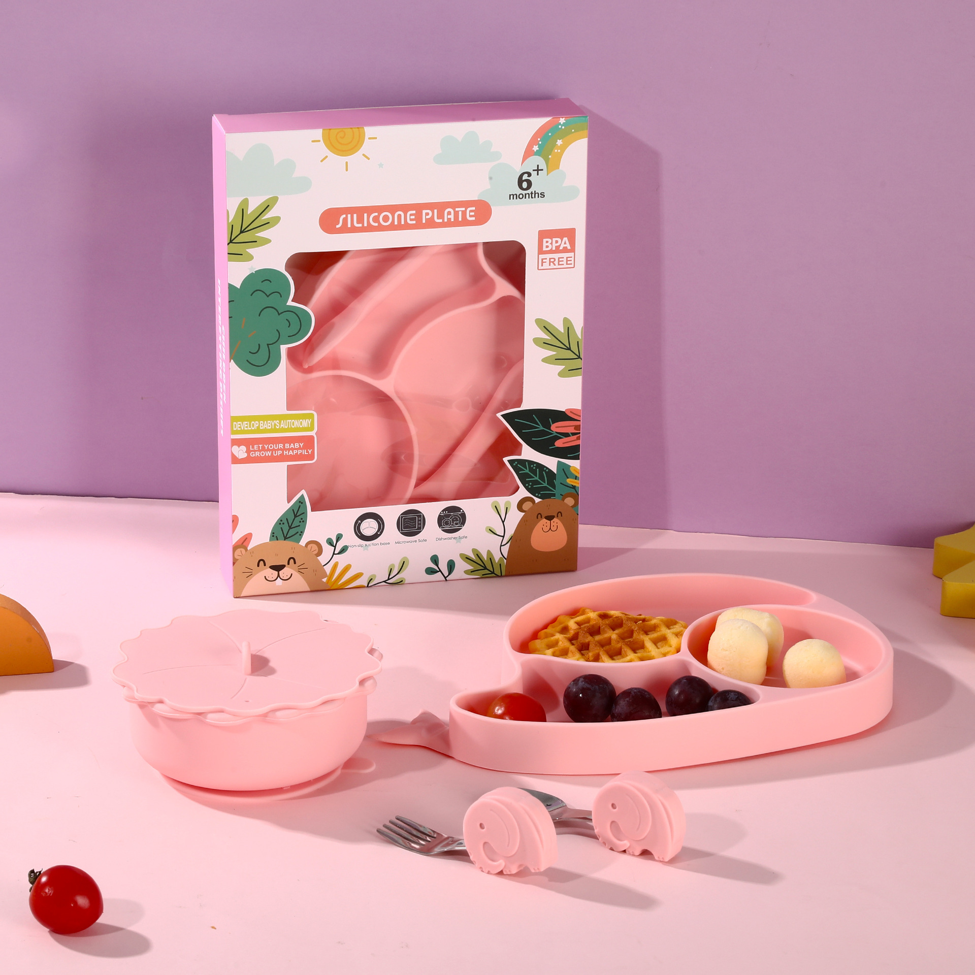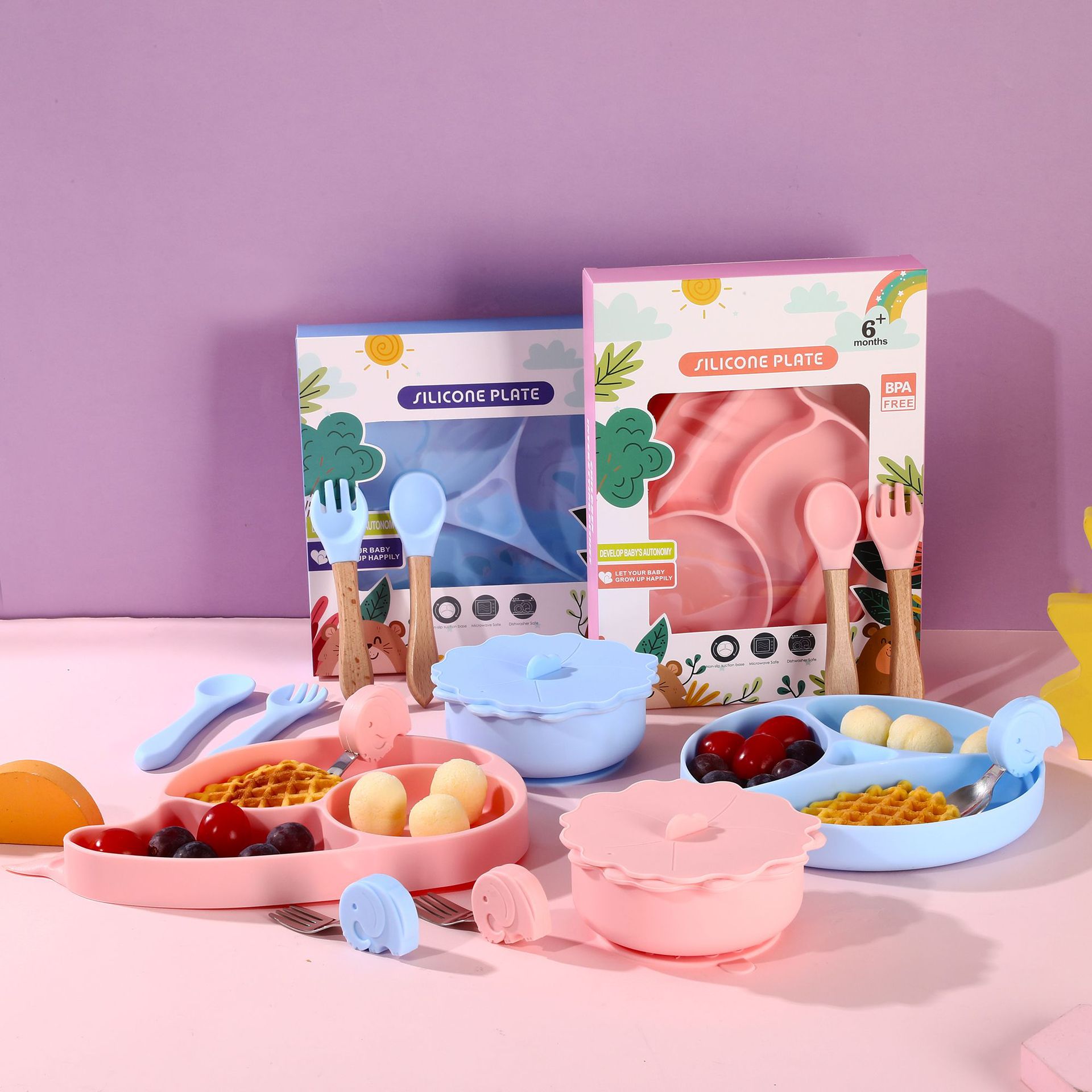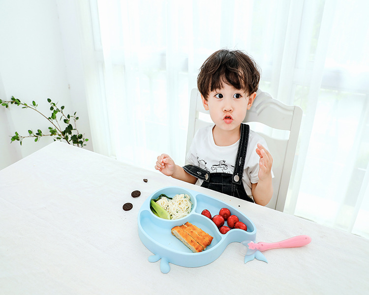 Estrictamente seleccionados transfronterizos ins bebé placa resistente a la caída de los niños de silicona suplemento alimenticio tazón dibujos animados rejilla placa lechón vajilla