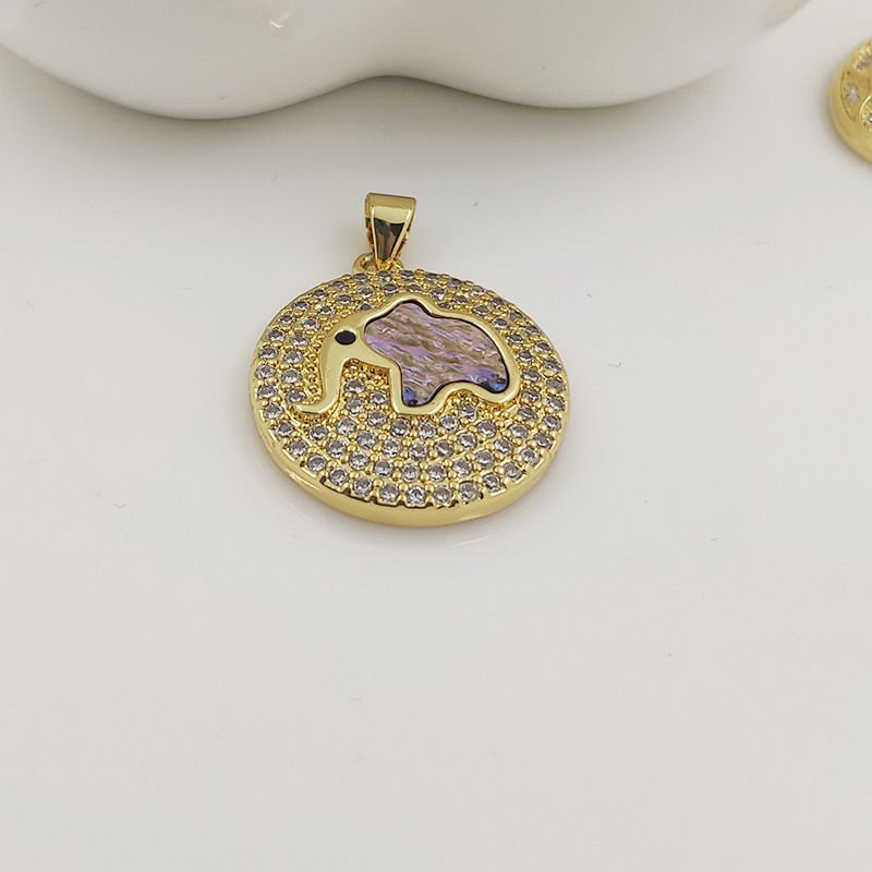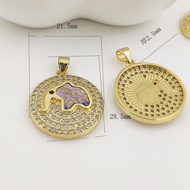 Europeo y americano virgen ZIRCON colgante abalone Shell elefante colgante con incrustaciones de arroz cuentas fritillary colgante nuevo collar redondo colgante