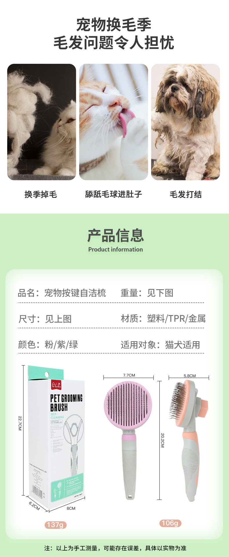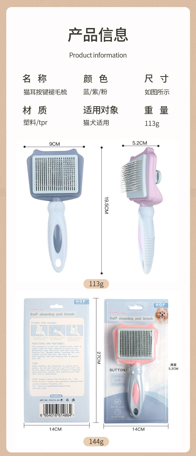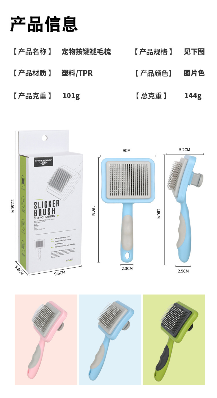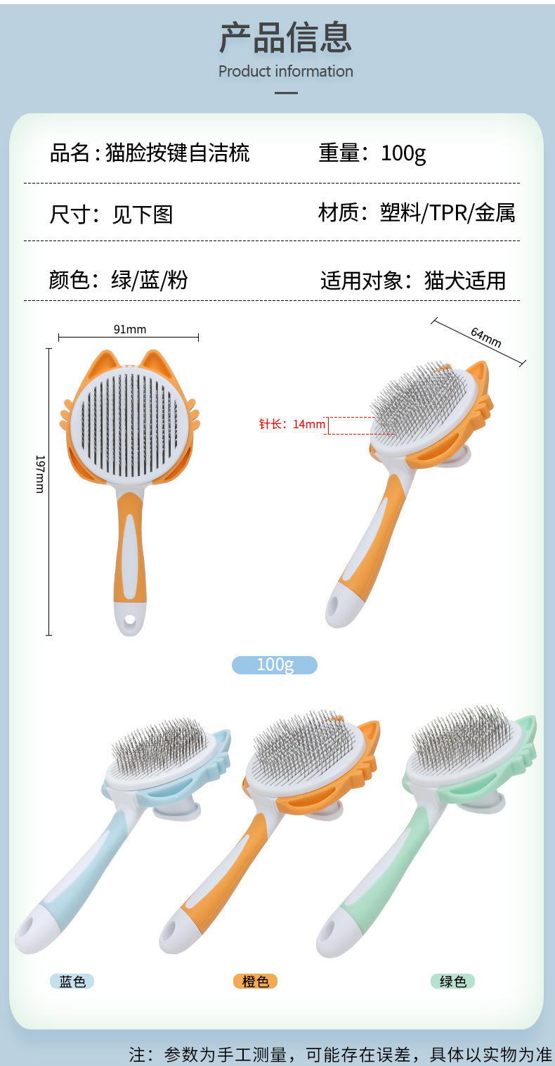 Peine para gatos para eliminar el pelo suelto, peine de agujas para gatos, peine con botón autolimpiante, peine para mascotas, peine para pelo de gato, especial para el cuidado de gatos.