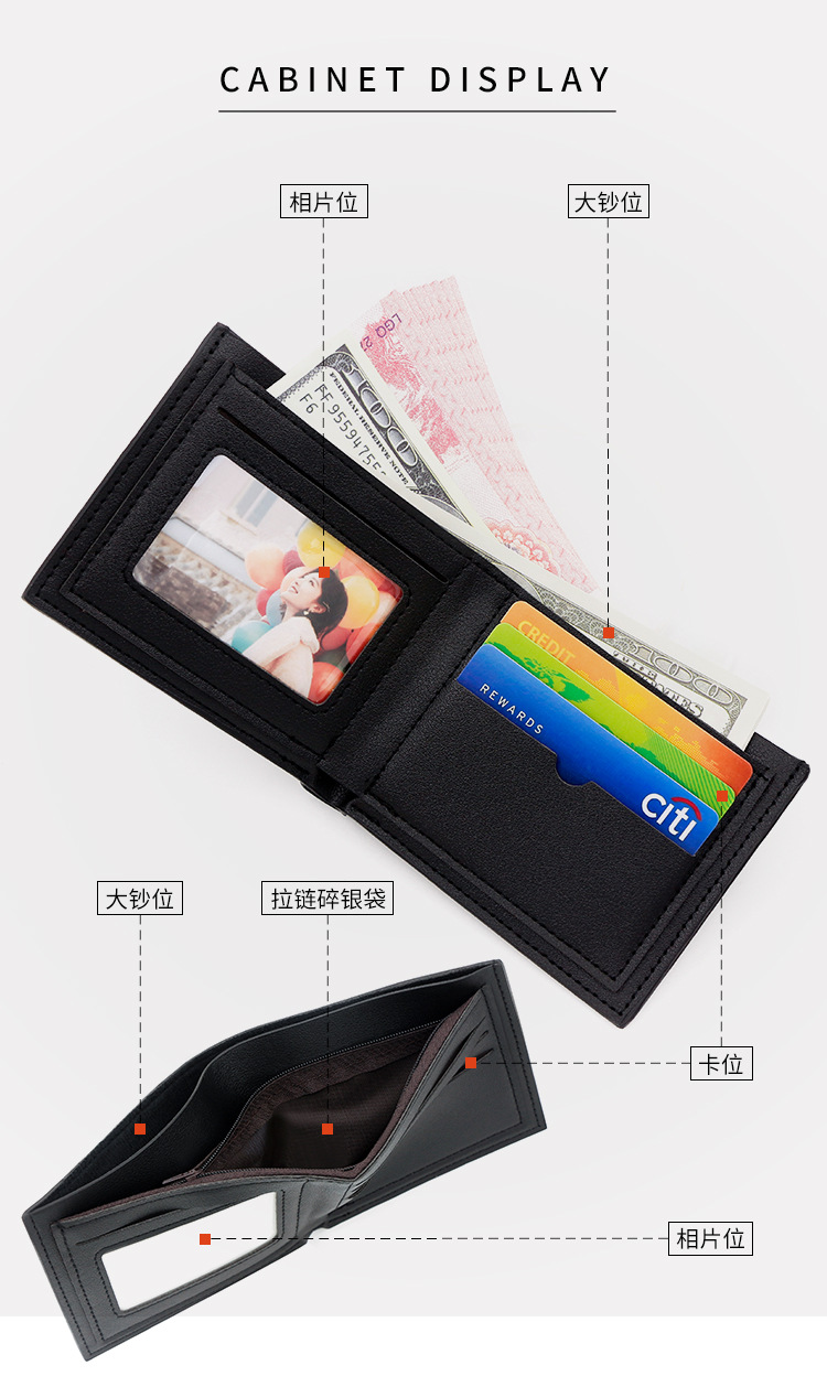 Nuevo tipo de cartera de hombre cartera corta de moda para hombres jóvenes delgada multi-tarjeta de gran capacidad cartera de negocios suave horizontal