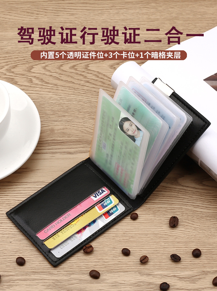 Funda de cuero para licencia de conducir de vehículo con ranura para múltiples tarjetas para hombres y mujeres, licencia de conducir personalizada, creativa y de moda, libro de licencia de conducir dos en uno