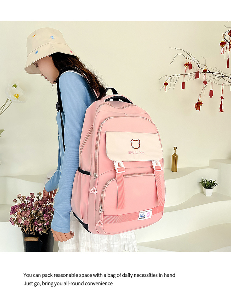 Nueva mochila coreana para mujeres de color contrastante, mochila de estudiantes de primaria y secundaria de gran capacidad, mochila de viaje simple