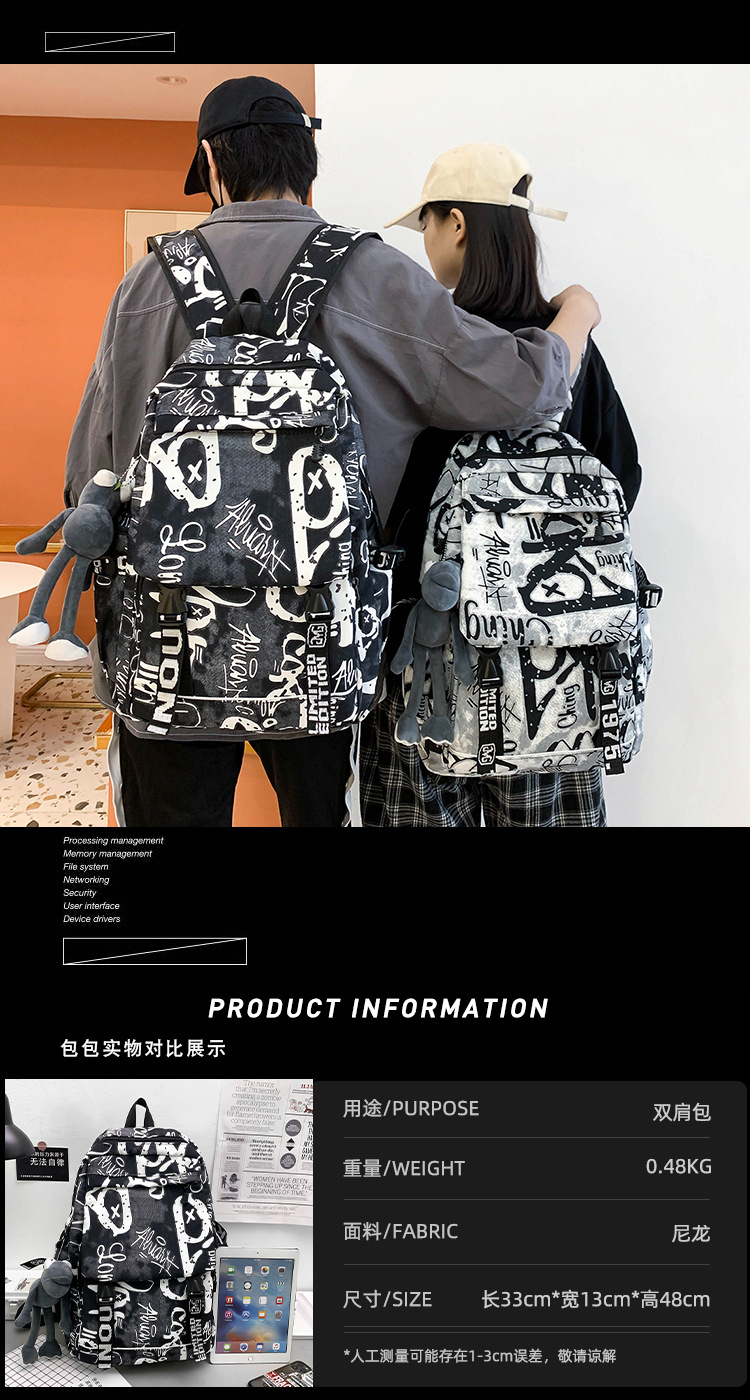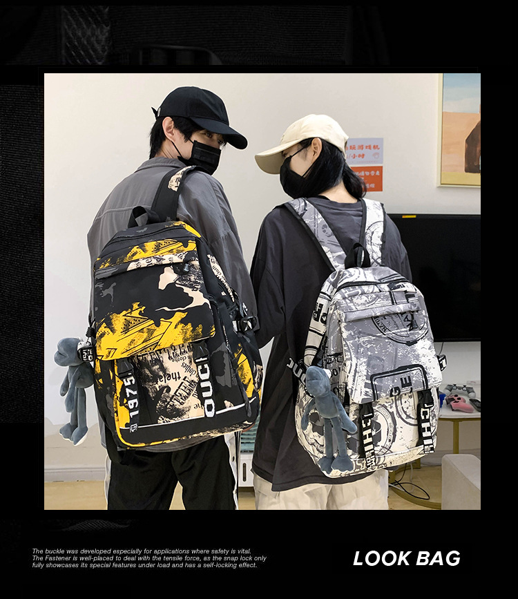 Mochila de mujer japonesa Harajuku de gran capacidad para estudiantes de secundaria bolsa de escuela de los hombres de moda fresca casual todo partido Mochila deportiva