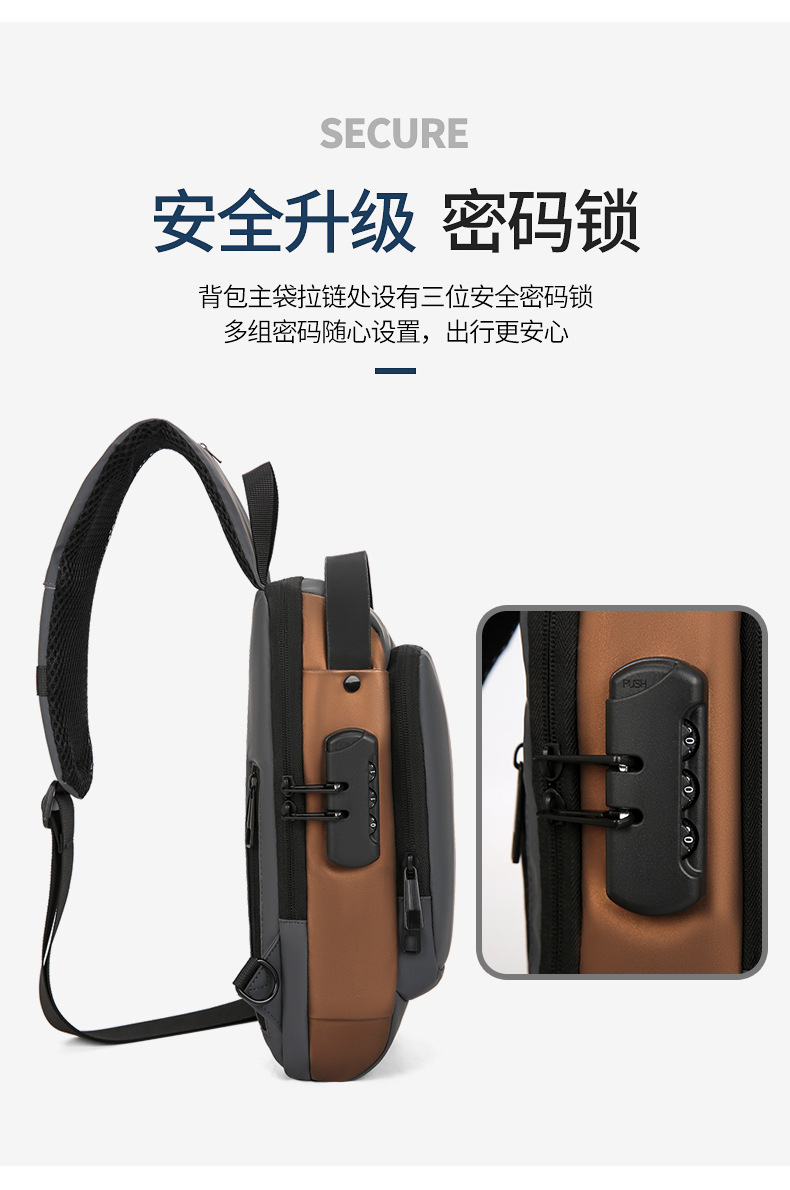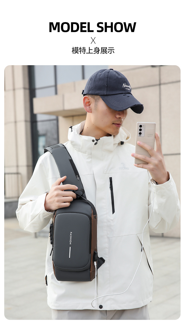 Nuevo bolso de moda para hombres bolso de pecho bolso de bloqueo de contraseña bolso de motocicleta de gran capacidad bolso de hombro antirrobo bolso deportivo
