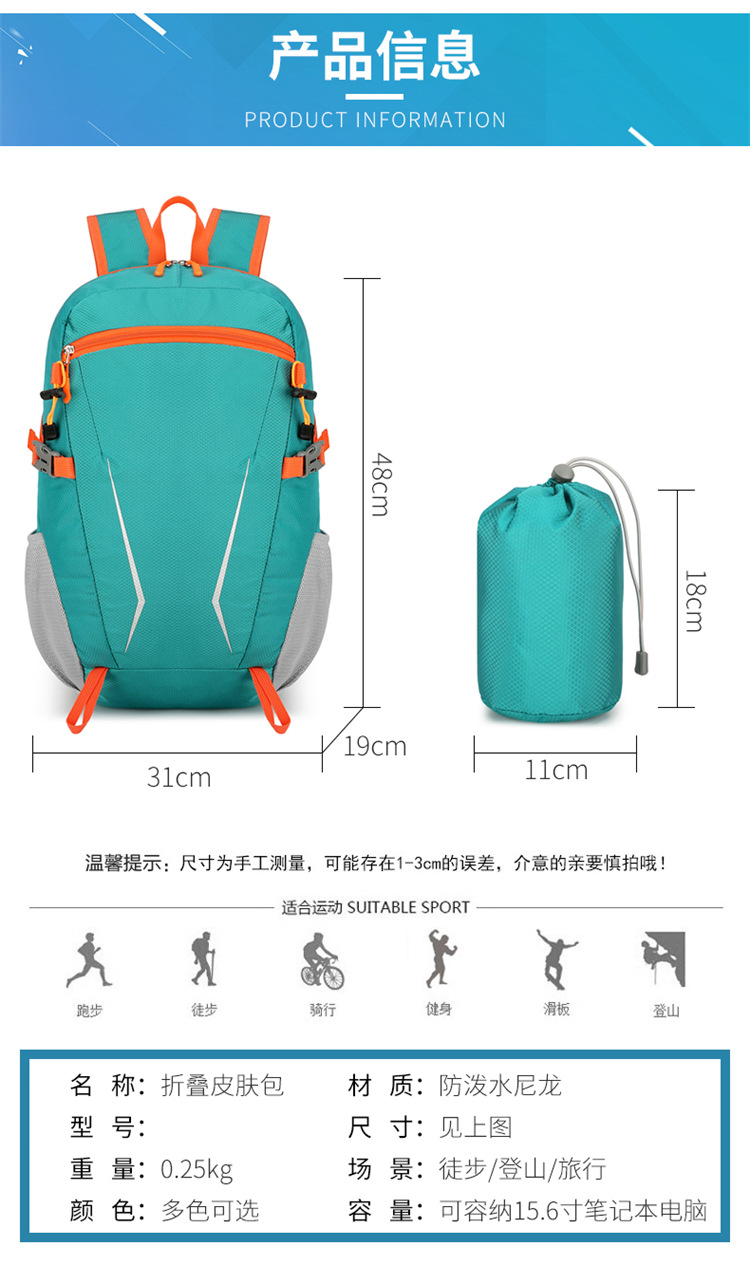 Mochila de los nuevos hombres, bolso de viaje de gran capacidad para ciclismo ligero, bolso de senderismo al aire libre, mochila plegable simple