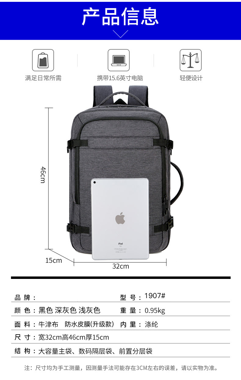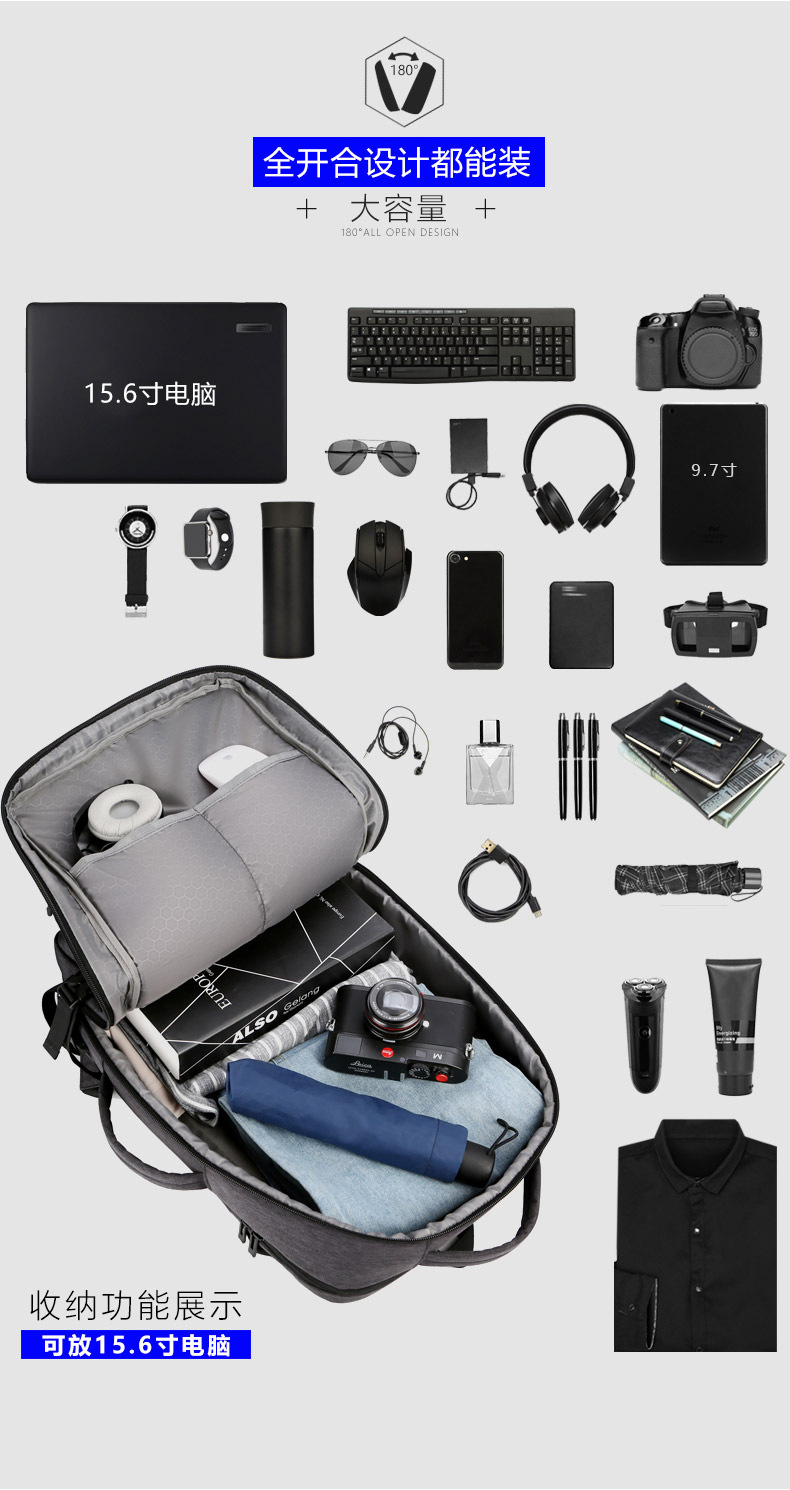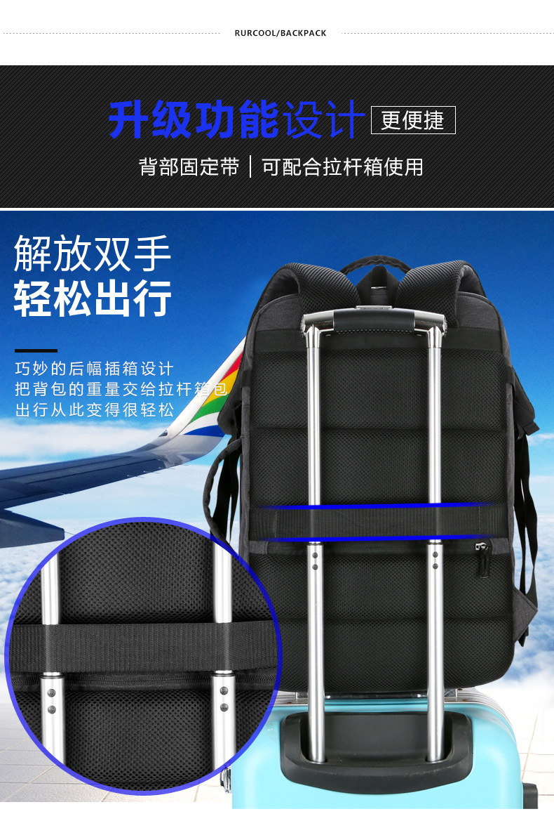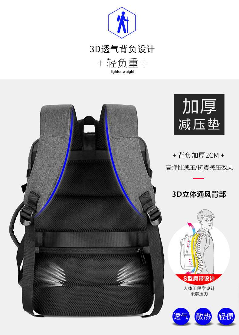 Mochila para hombres de negocios transfronterizos Mochila de viaje de moda de alta gama Mochila impermeable para computadora Mochila de gran capacidad