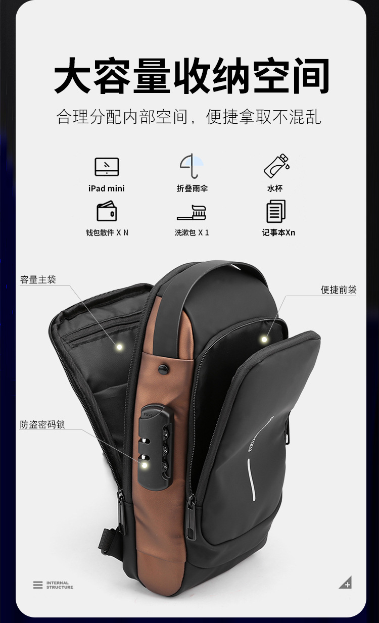Nuevo viaje al aire libre bolso de hombro de negocios ocio multifuncional bolso de pecho conveniente gran capacidad de viaje ocio mochila inclinada