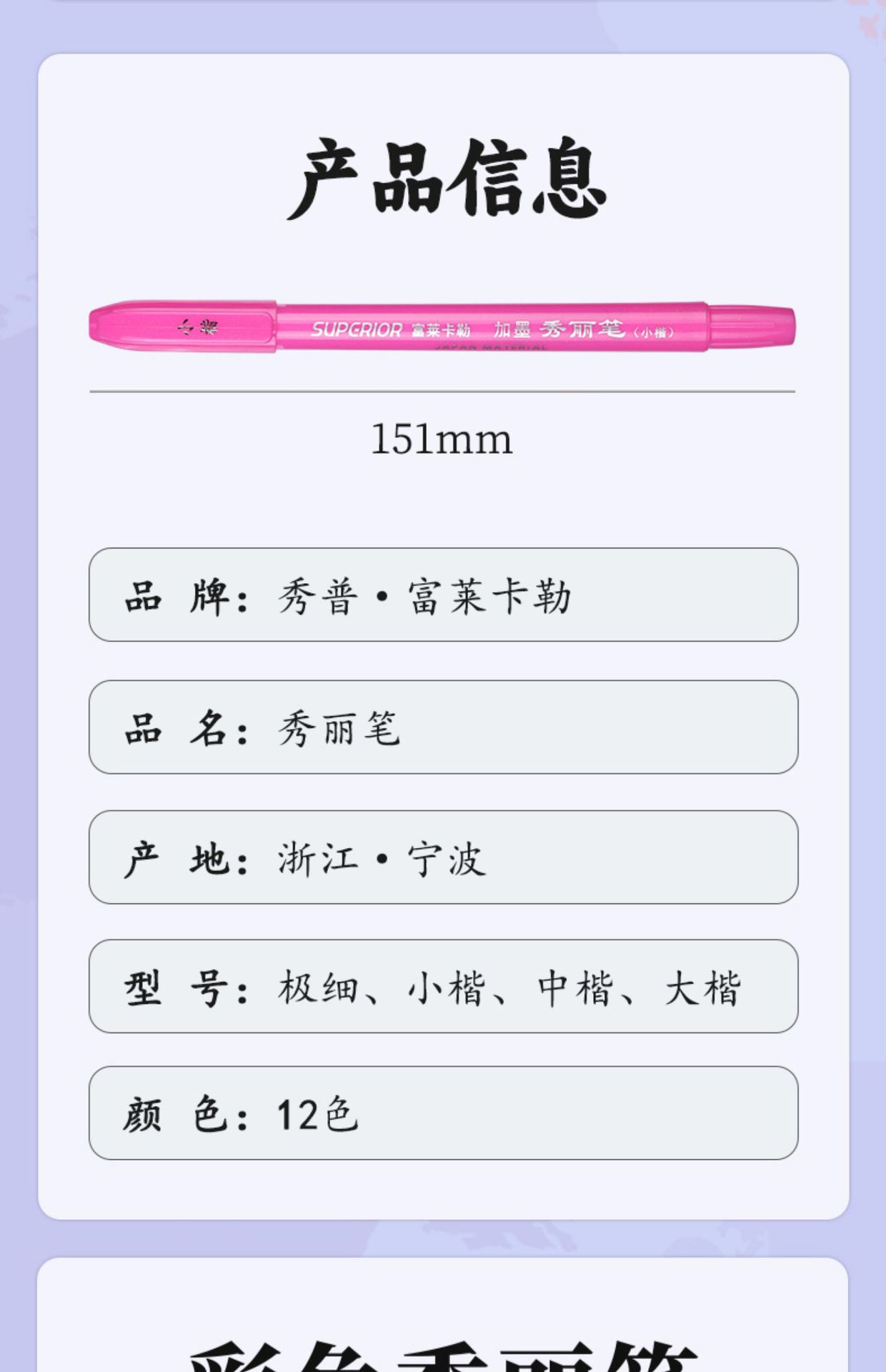 Xiupu Fulai Kaole Xiuli pluma suave práctica de caligrafía Pluma de firma muy pequeña escritura regular mediana escritura regular pluma grande de escritura regular