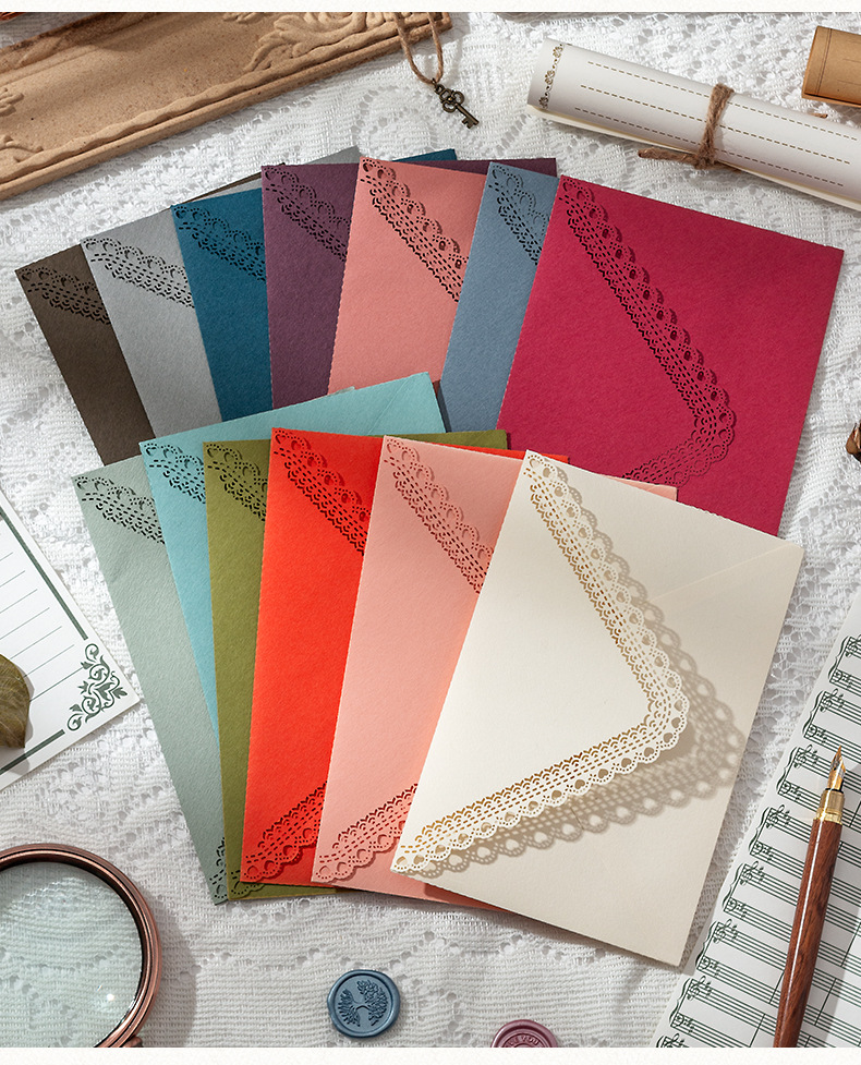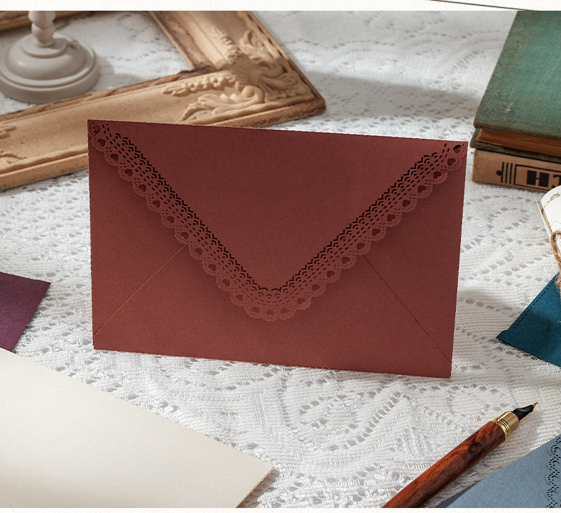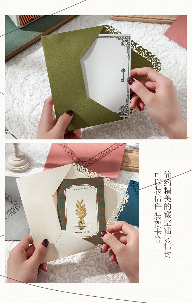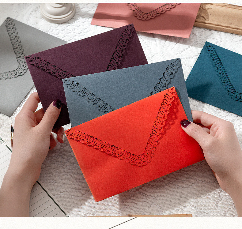 Invitación de boda de cumpleaños de encaje grabado láser sobre triángulo hueco colorido invitación de boda
