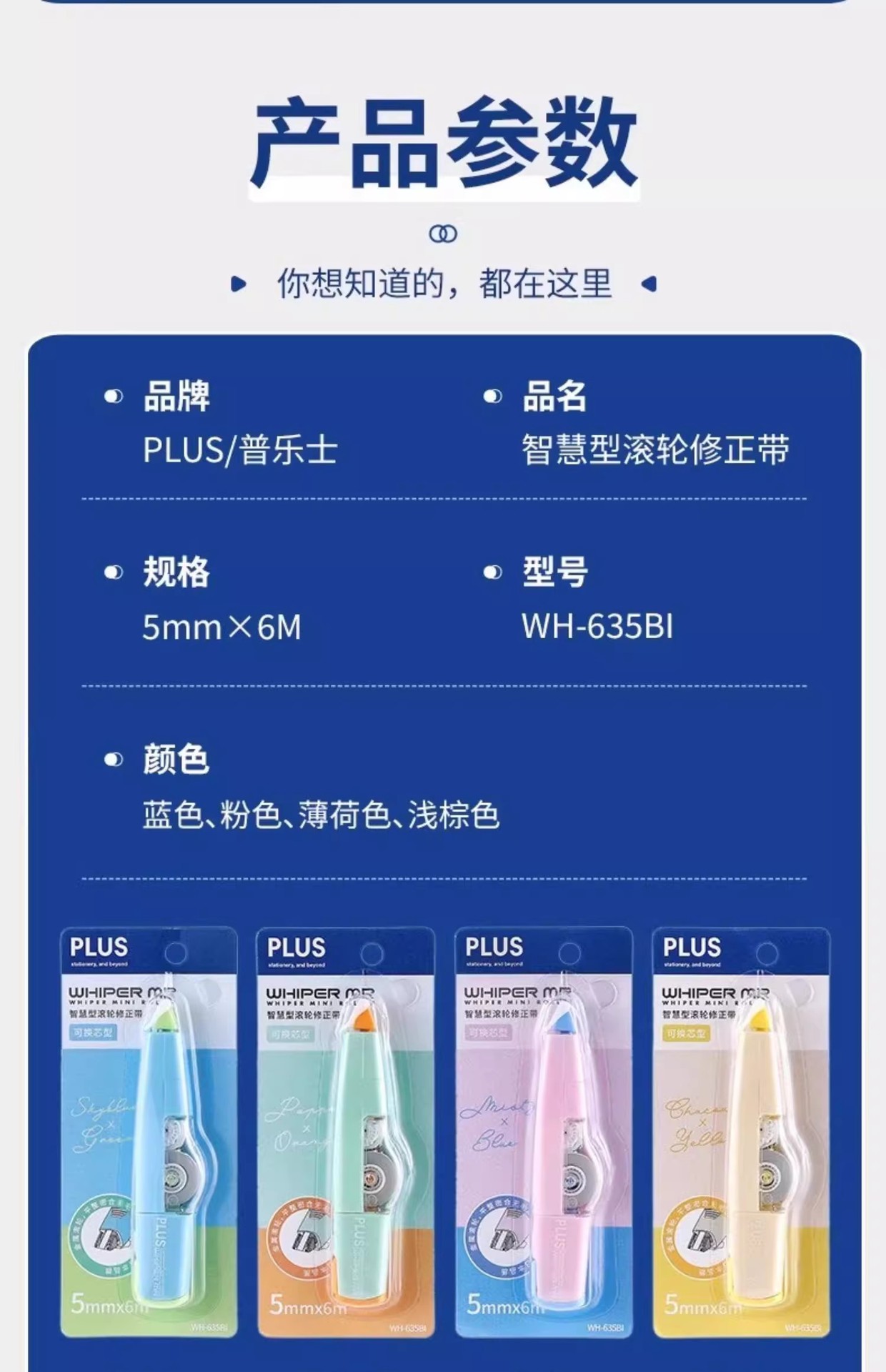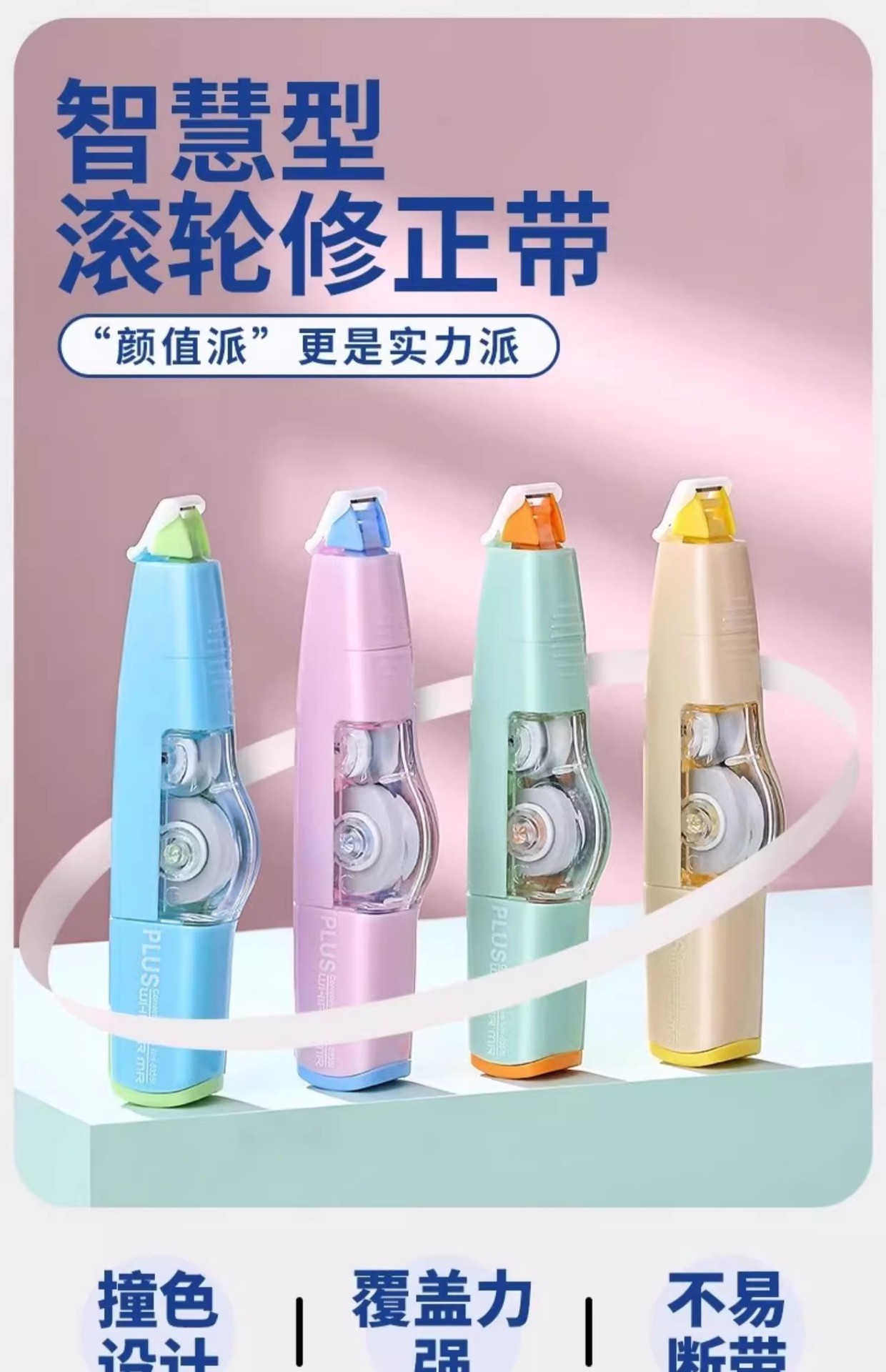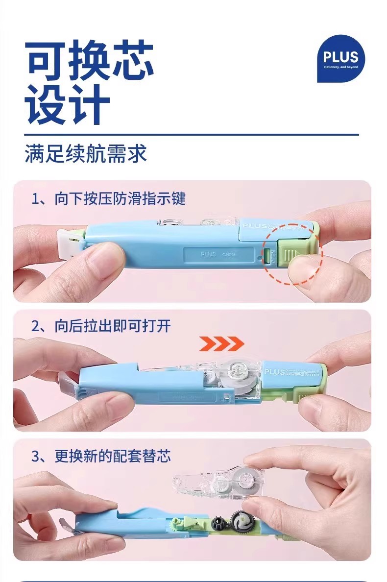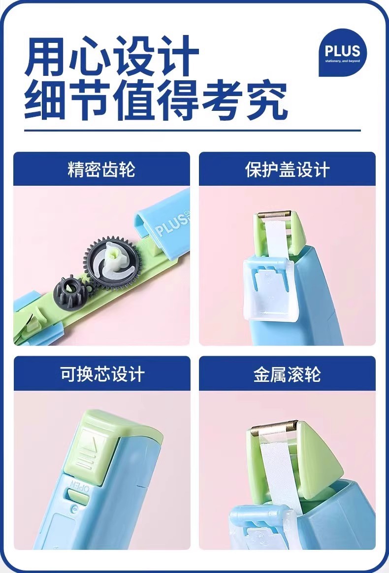 PLUS serie de bloques de colores cinta correctora 635BI rodillo inteligente color de contraste macaron color dopamina