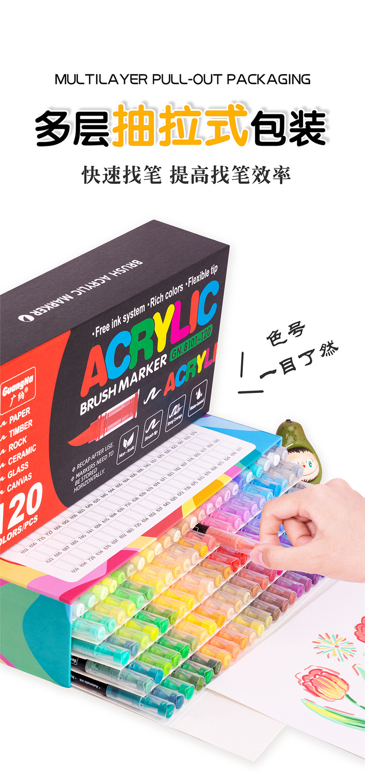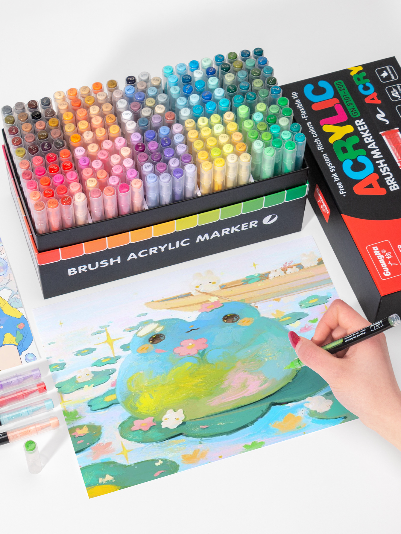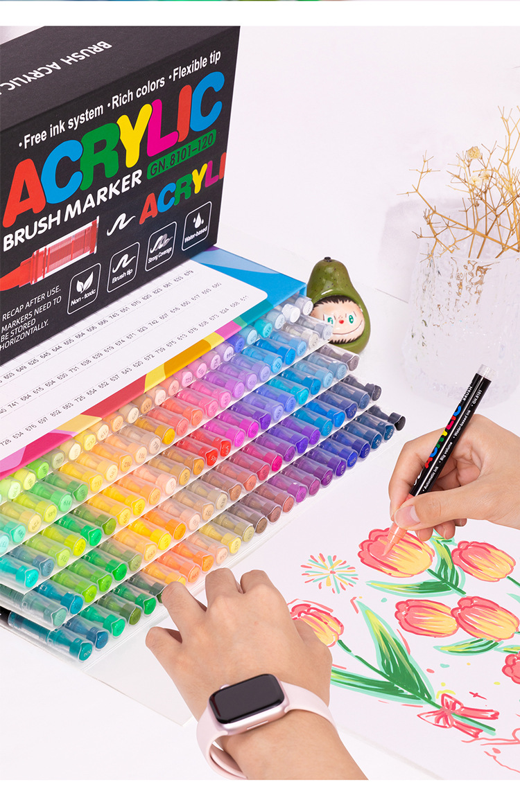 Rotulador acrílico GN Guangna 8101 de tercera generación, a base de líquido, colores apilables, inodoro, punta suave, 288 colores
