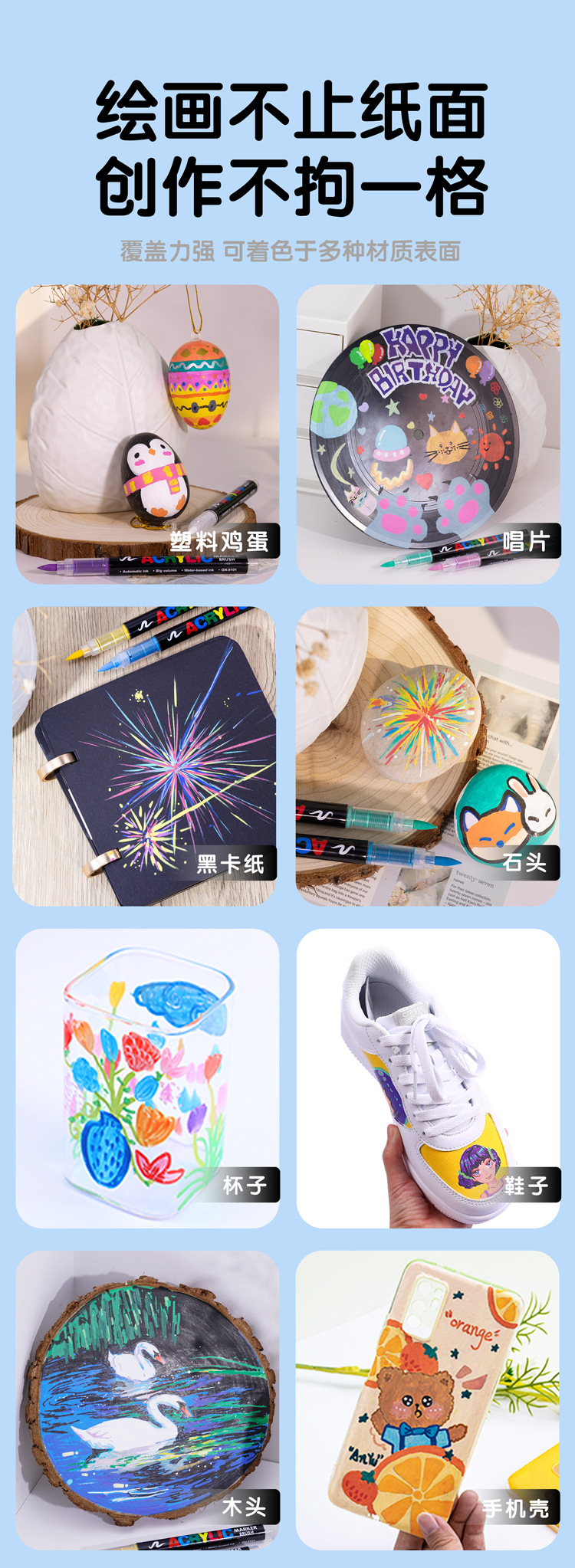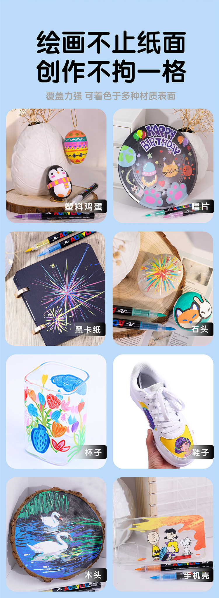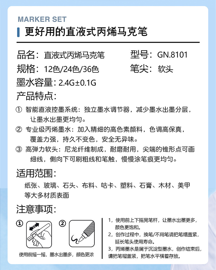 Rotulador acrílico GN Guangna 8101 de tercera generación, a base de líquido, colores apilables, inodoro, punta suave, 288 colores