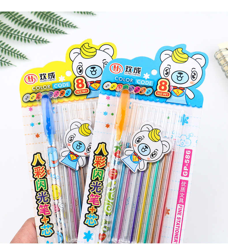 Hand account graffiti painting metal pen Children's Water Tik suit Happy flash metal 8-color pen suit DIY álbum