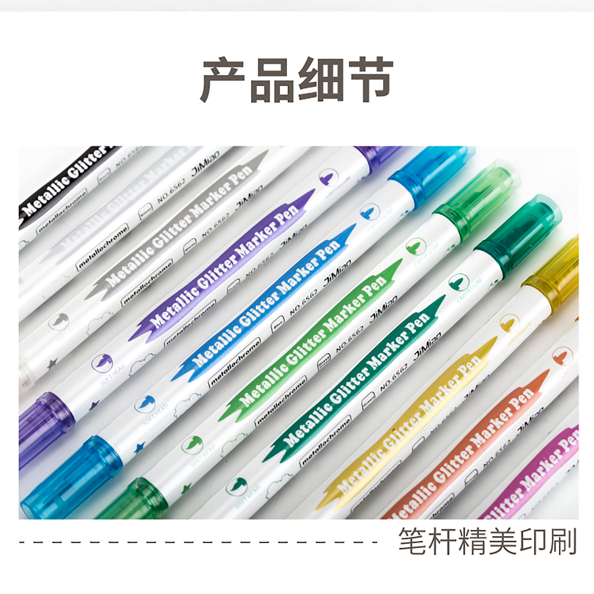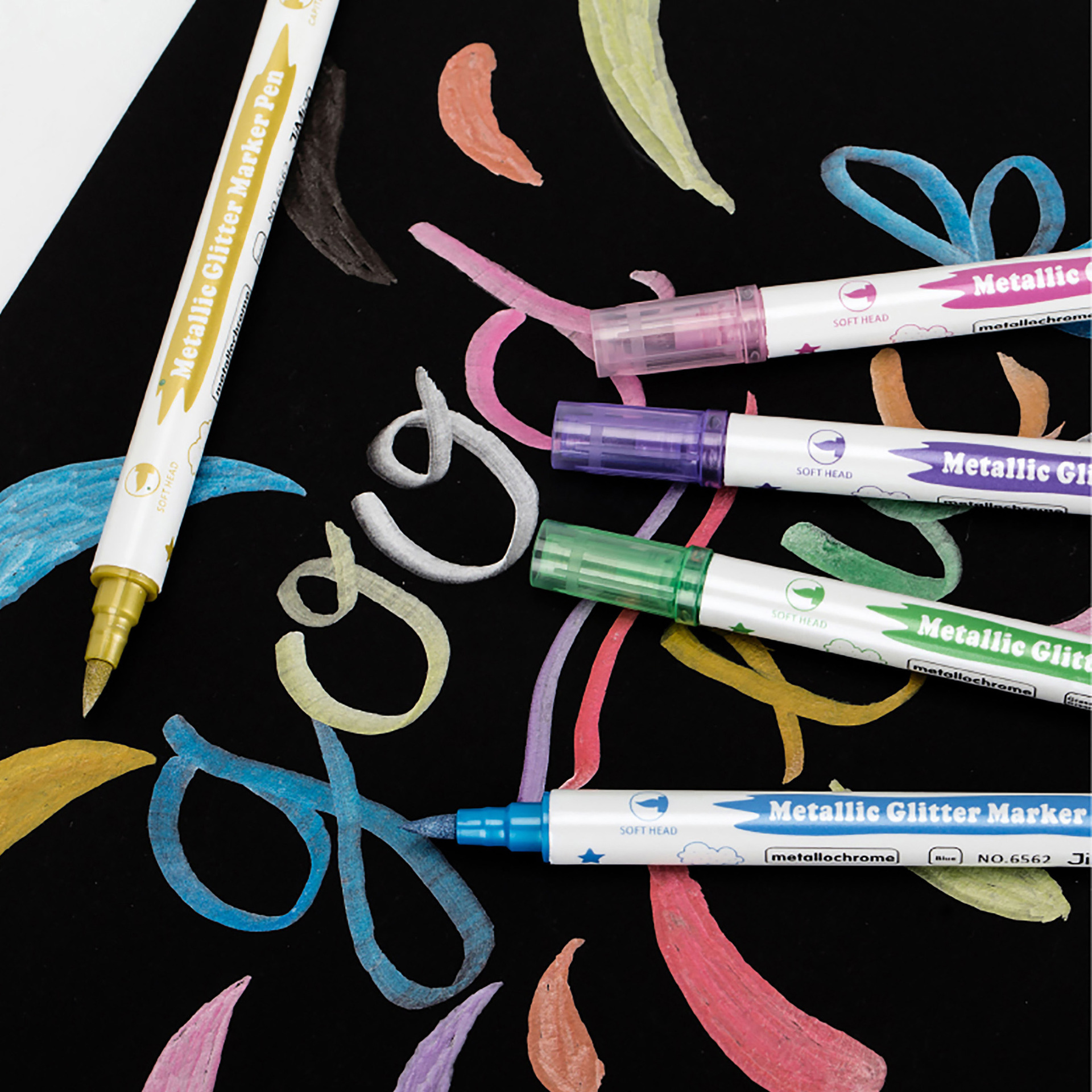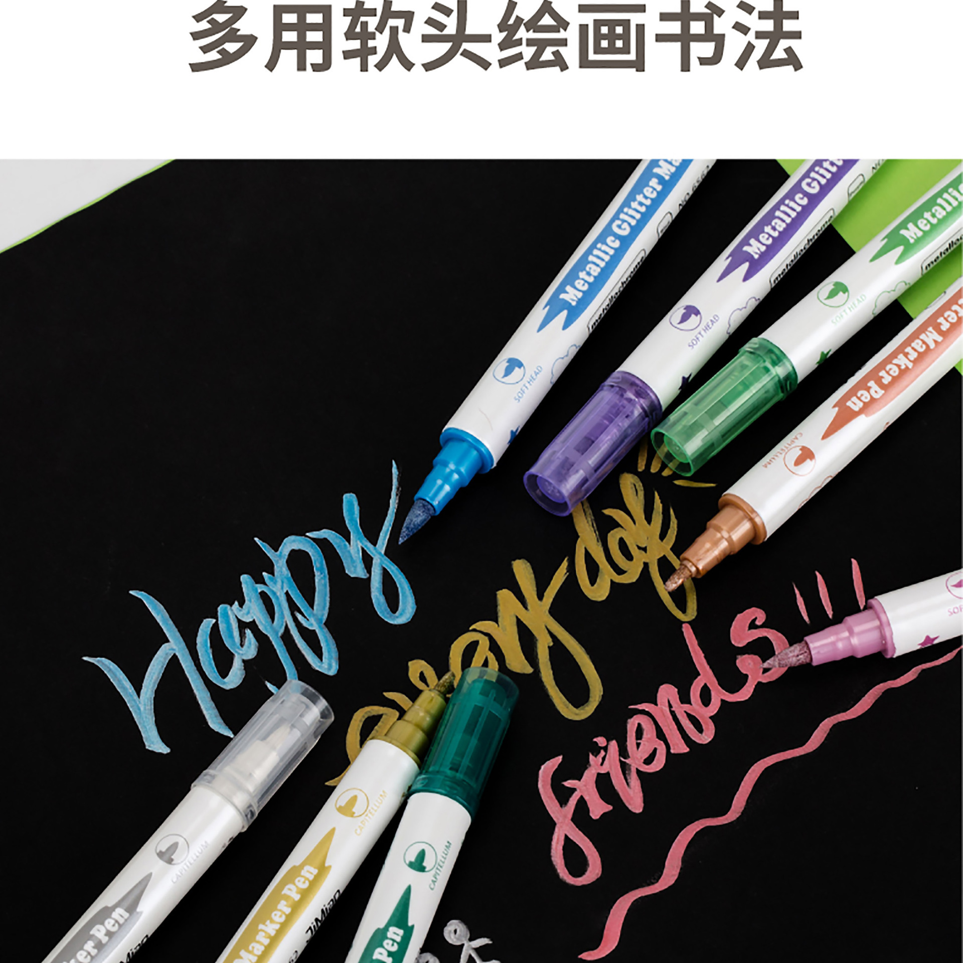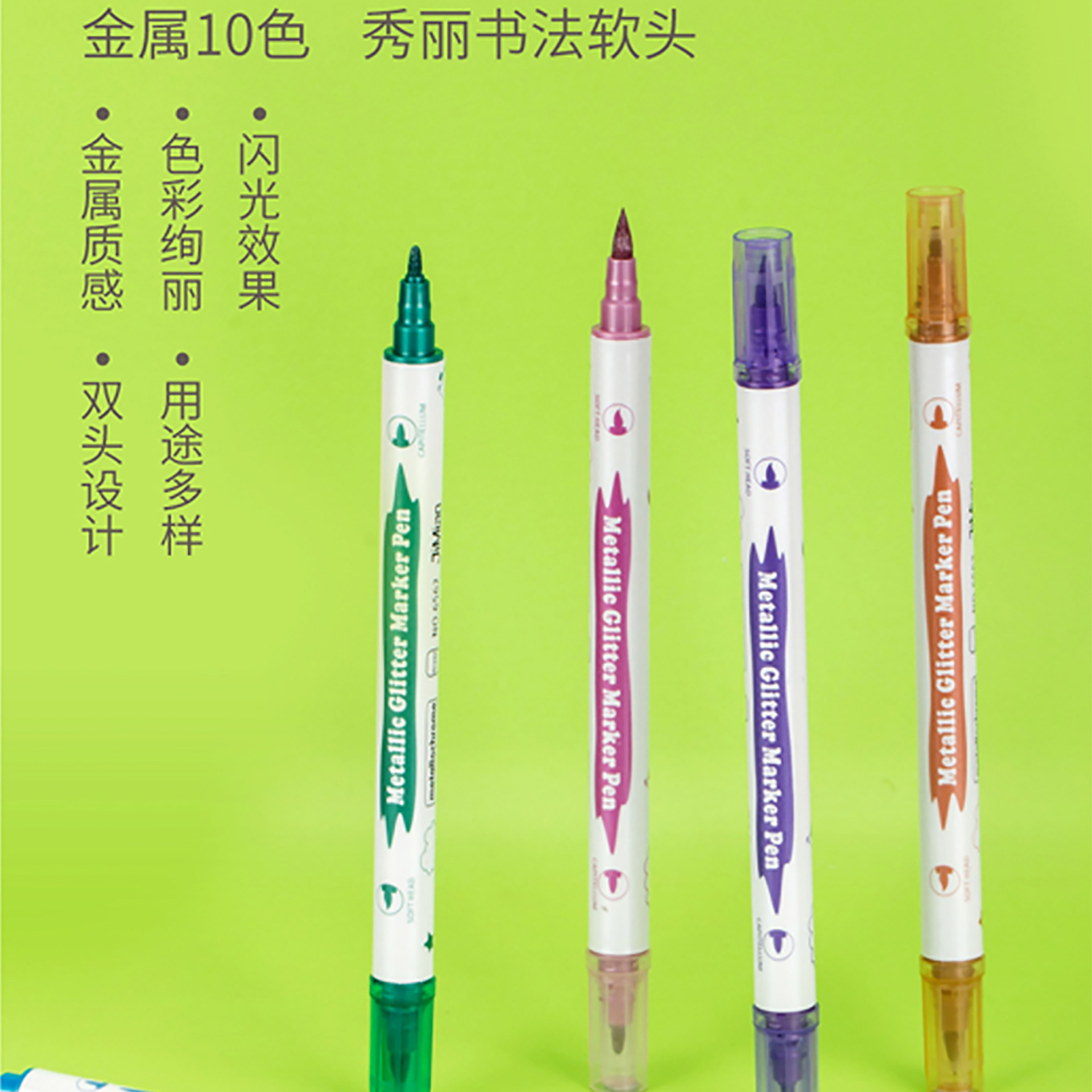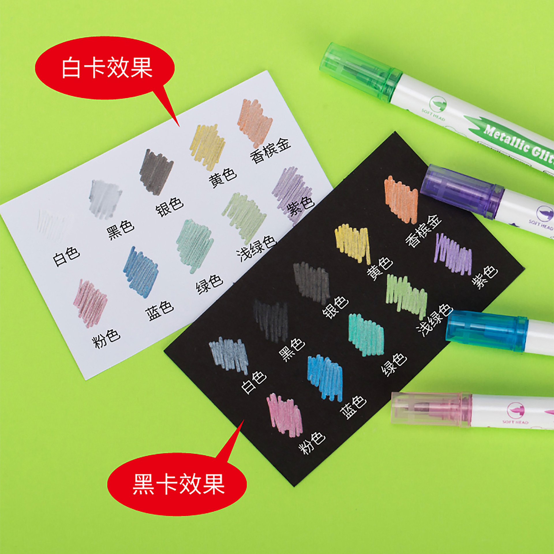 Color de la pluma de pintura de metal de cabeza suave estudiante resaltador de doble cabeza DIY cartón negro mano cuenta caligrafía hermosa pluma destacada