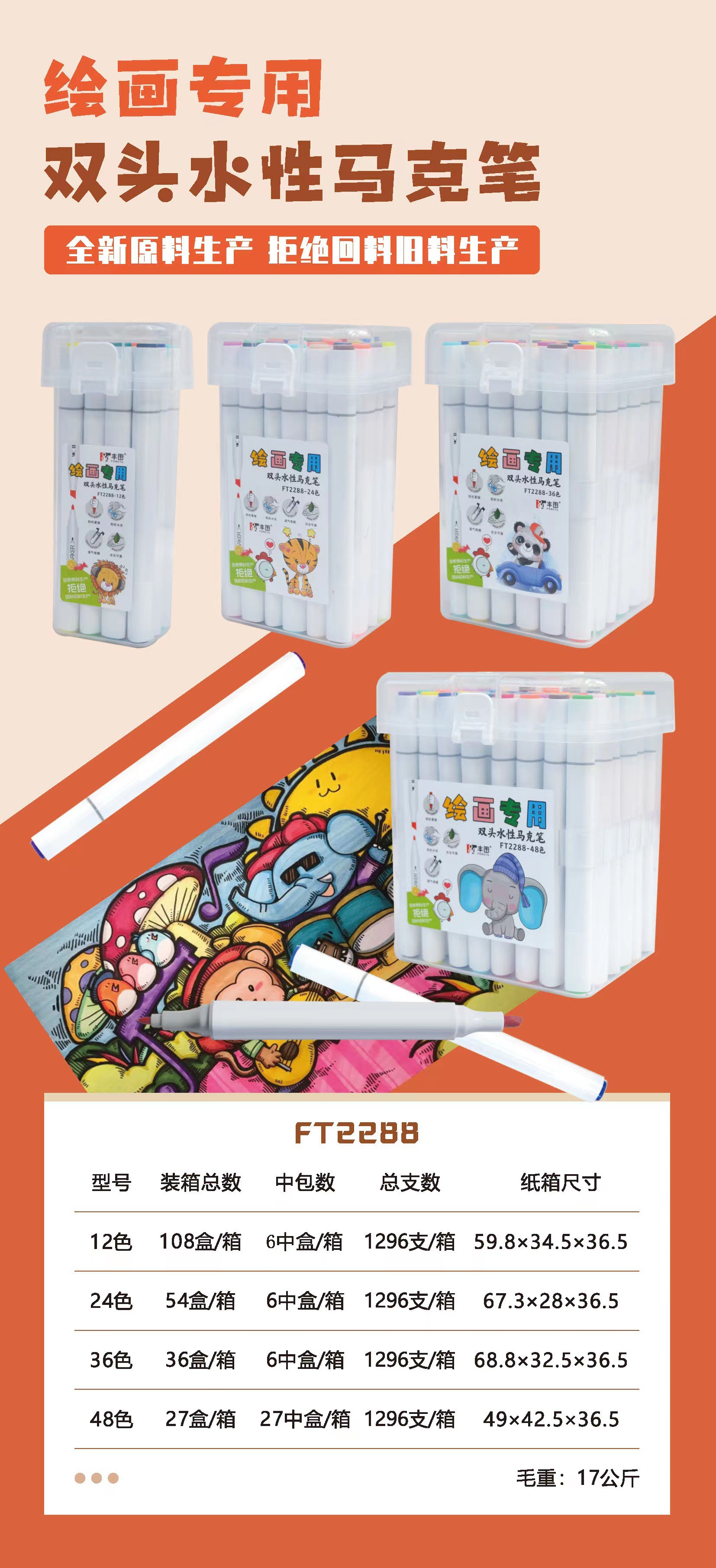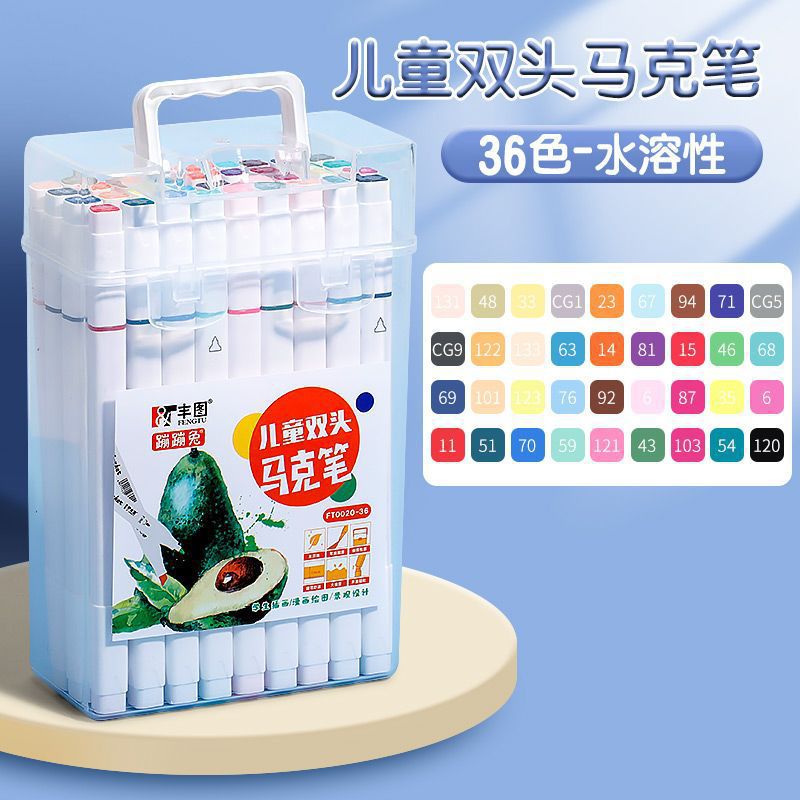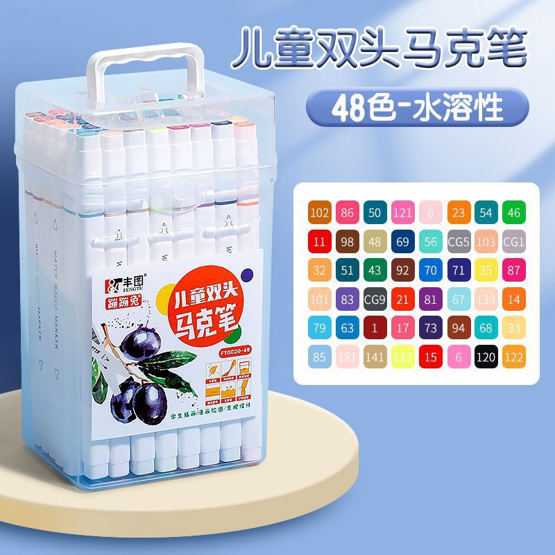 Marcador de dos cabezas a base de agua sin olor para estudiantes de escuela primaria Pintura artística Bolígrafo de acuarela 24 colores 48 colores Pincel de anime de barril