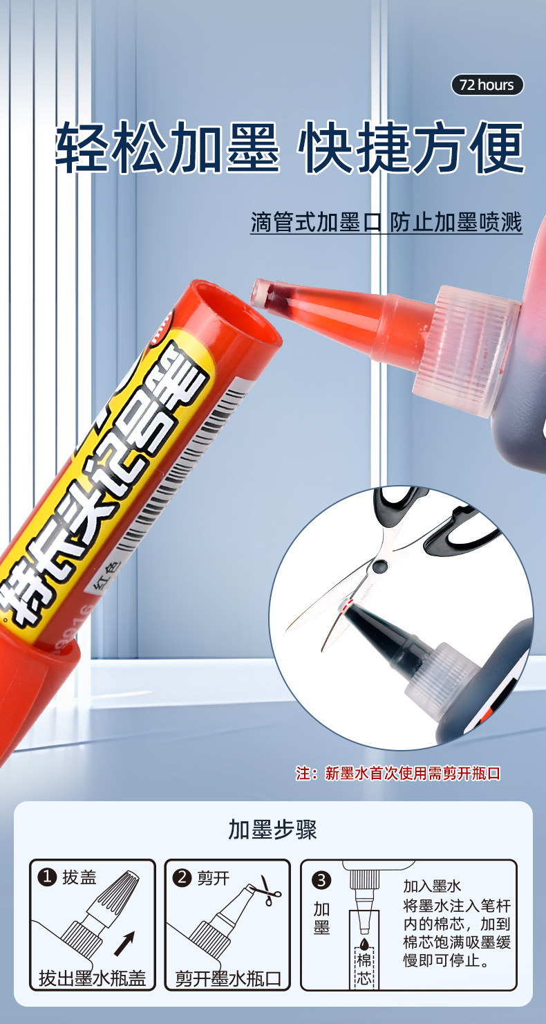 El rotulador de cabeza larga de 45mm se puede utilizar para la tinta.