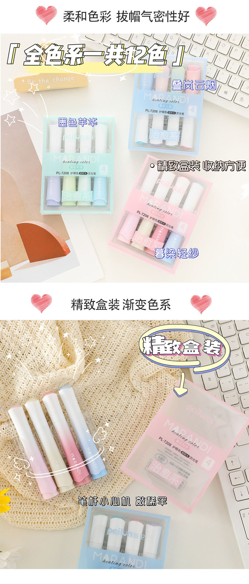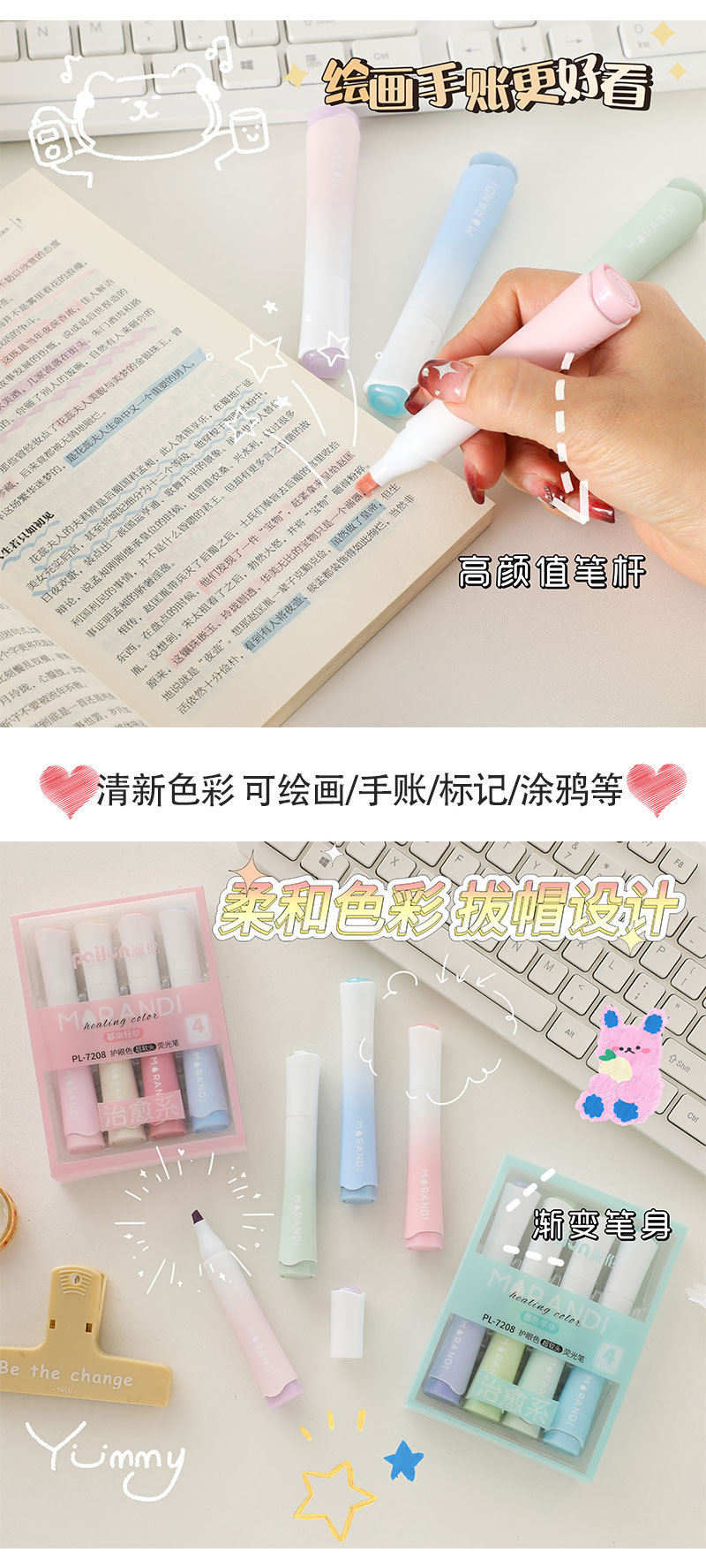 Nuevo marcador de color degradado de gran capacidad en forma de jarrón marcador de color estudiante punto clave pluma de cuenta de mano de alto aspecto