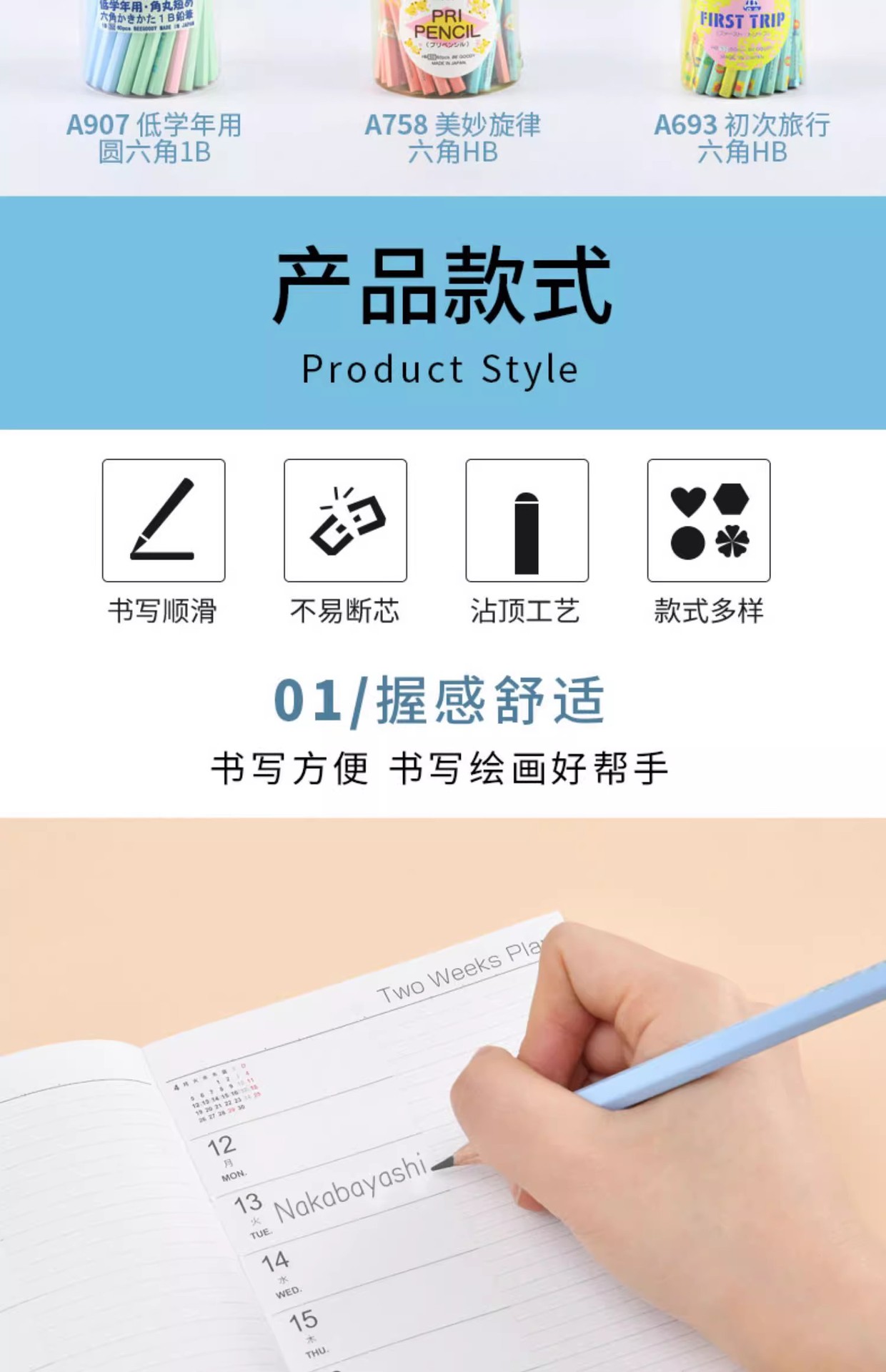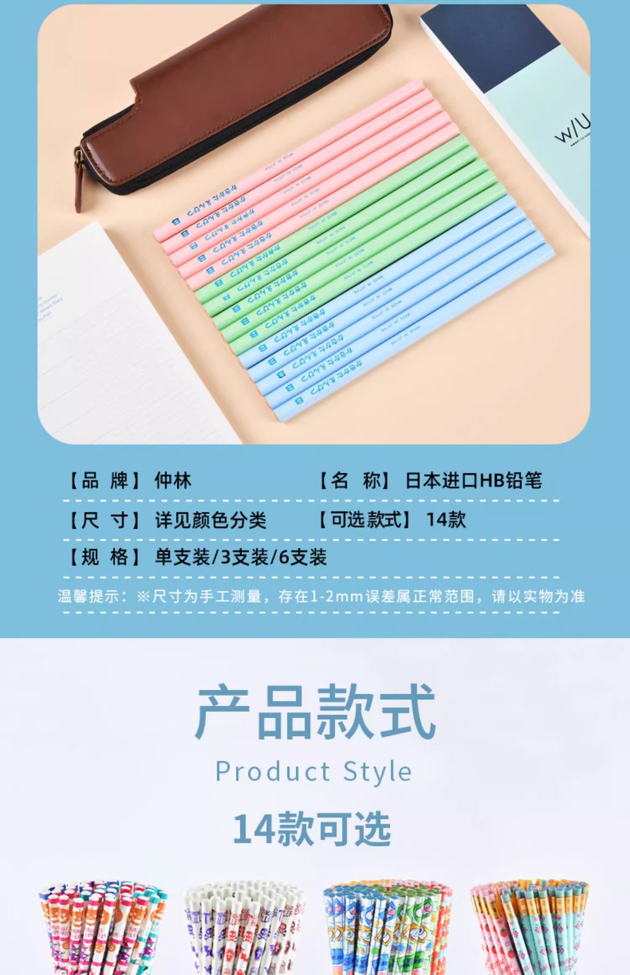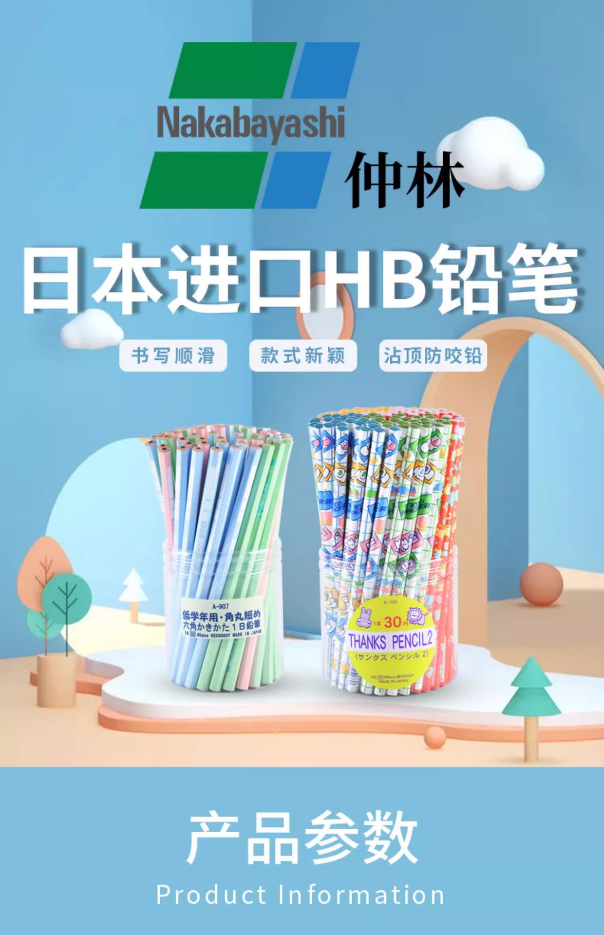 Nakabayashi Zhonglin Japón importado HB Escuela Primaria estudiante lápiz lindo lápiz de madera en caja redonda de cinco lados
