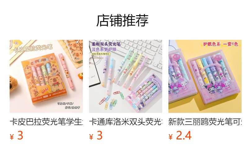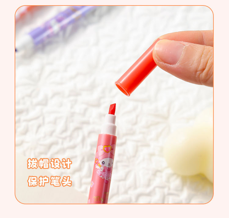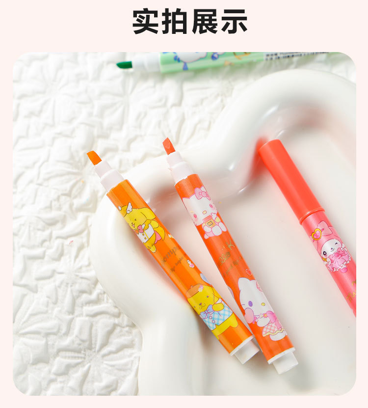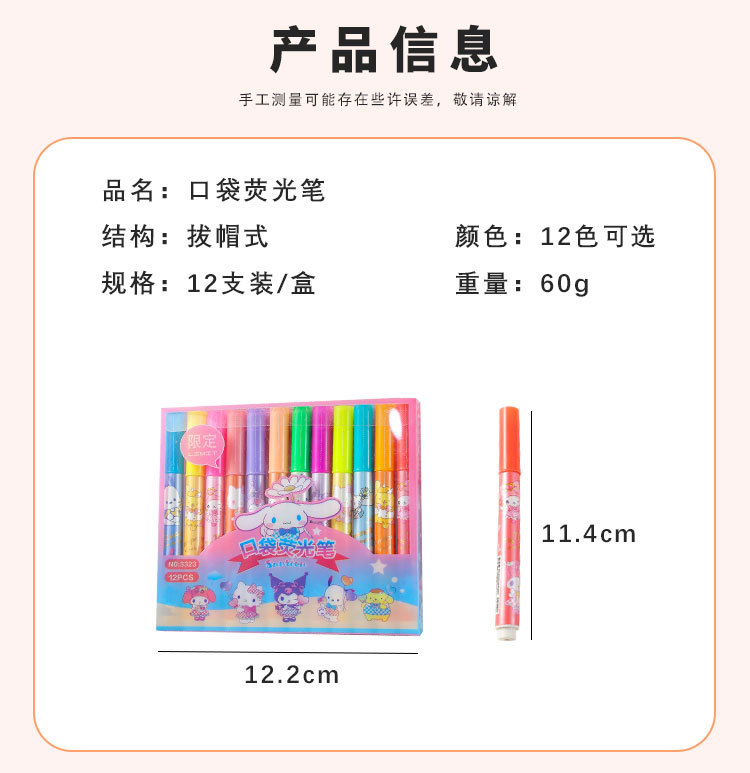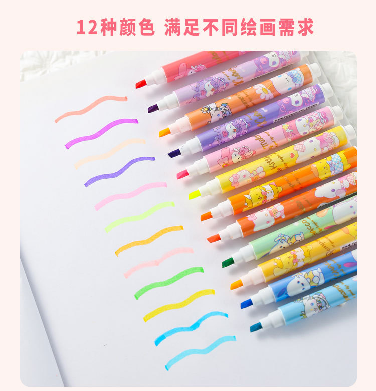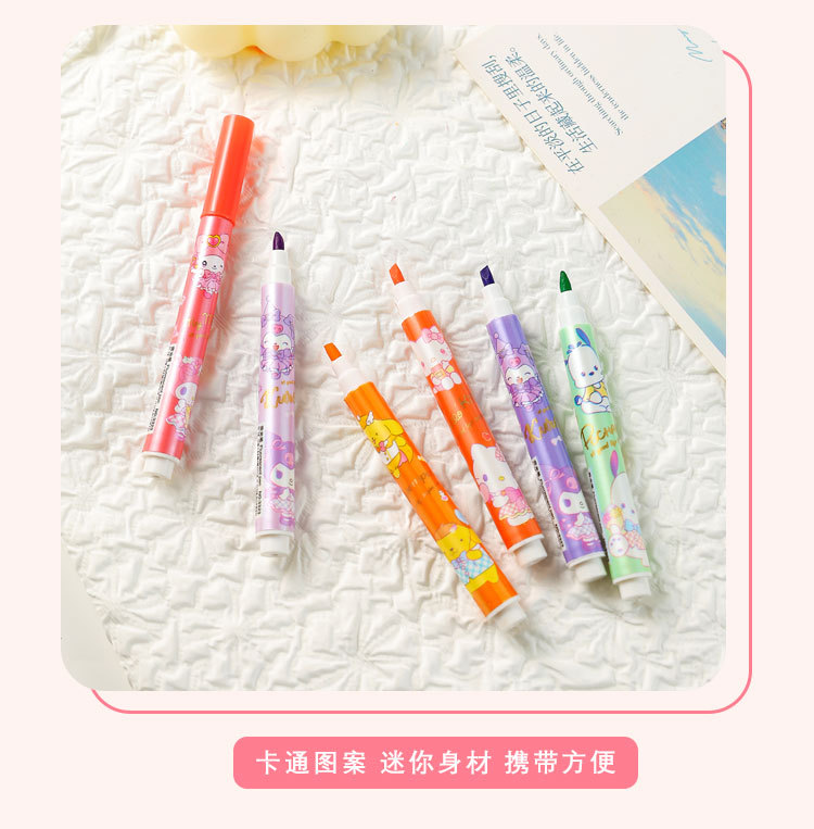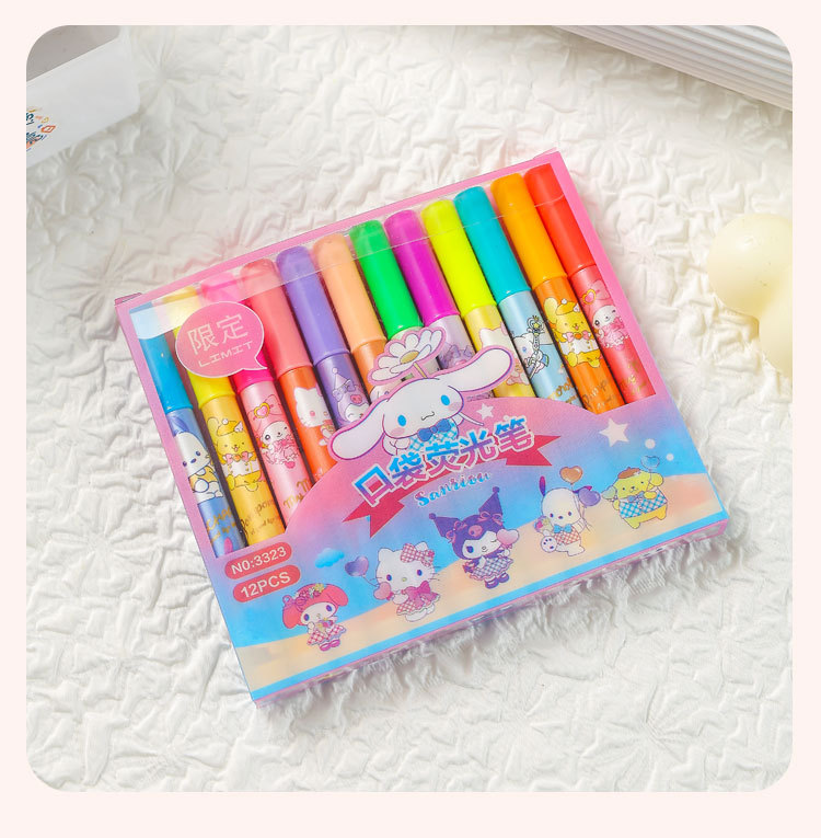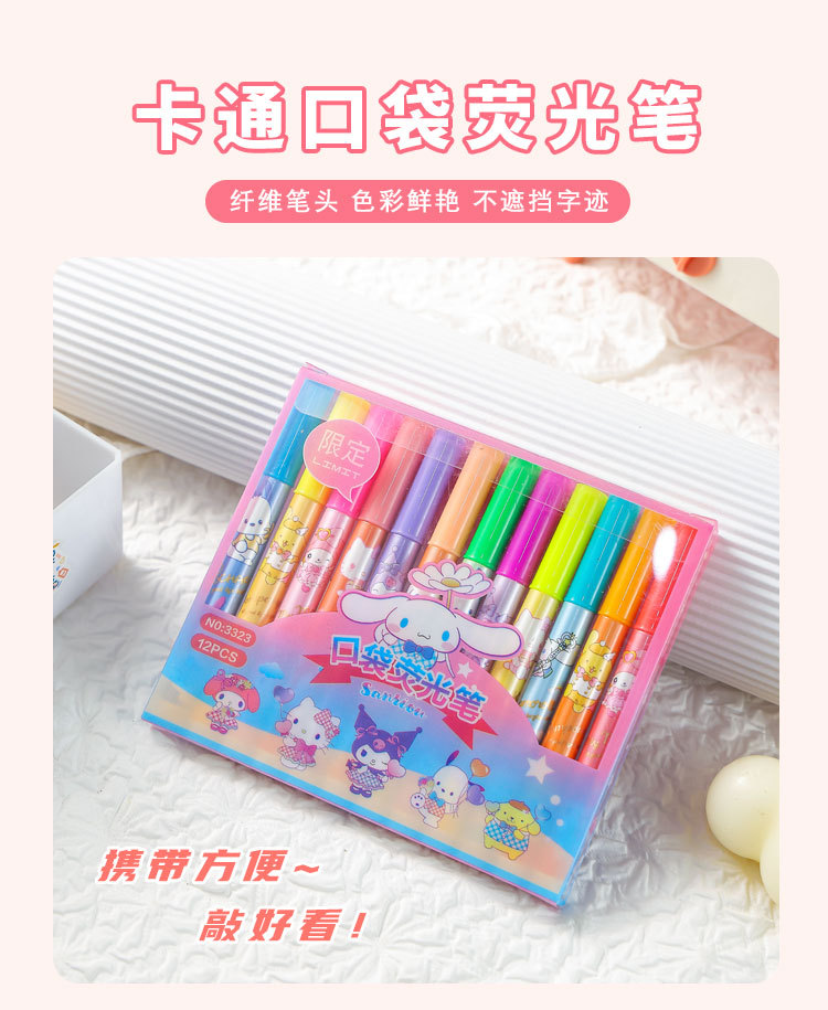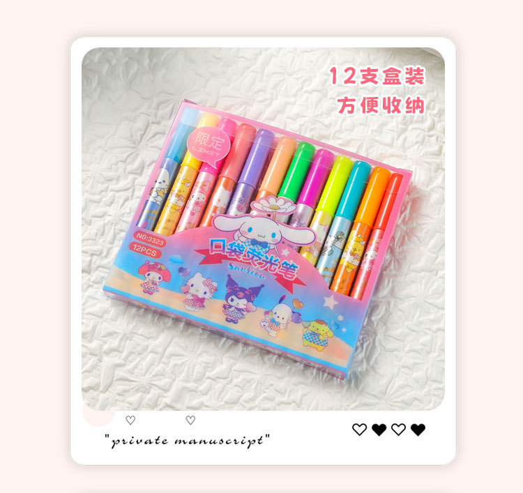12 colores de dibujos animados bolsillo de resaltos lindos de alto valor de color protector de ojos color bolígrafo de cuentas de mano de los estudiantes marcadores clave