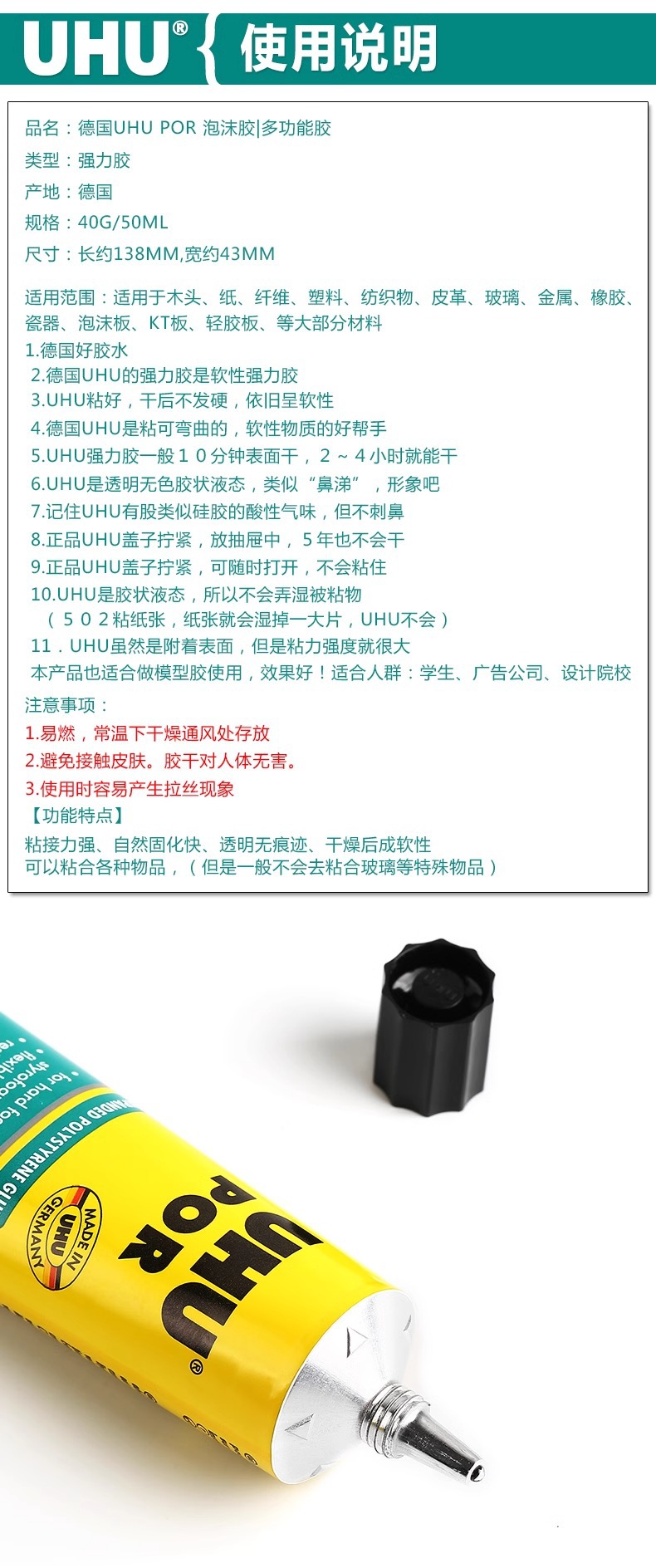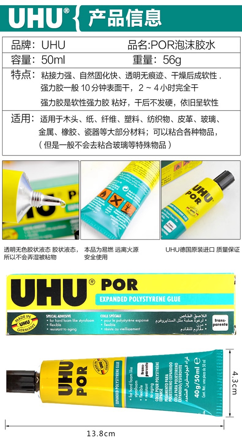 Importación alemana de espuma UHU modelo POR modelo de avión de metal diy modelo de aviación 50ml tablero de espuma especial hecho a mano