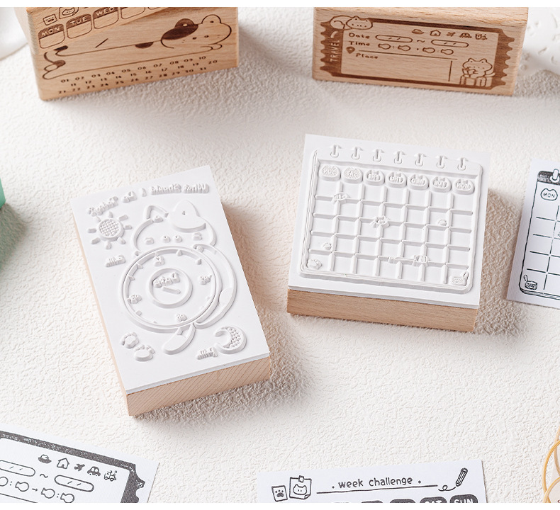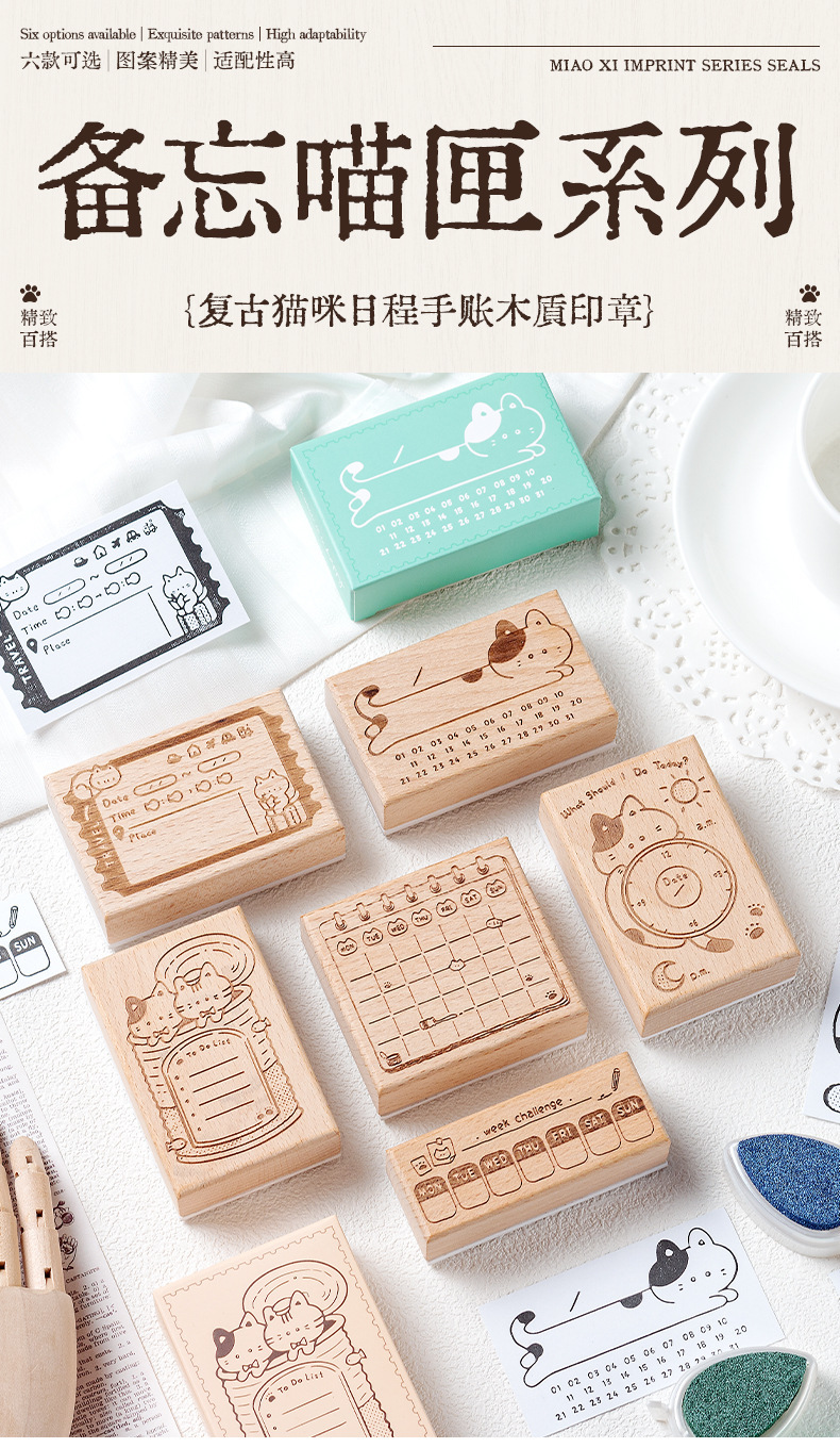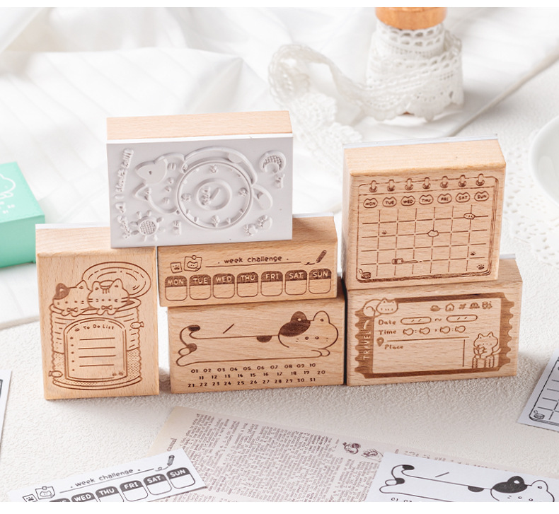 Memorando caja de gato de madera cuaderno de mano sello retro gato calendario sello de hayale diario sello de memo