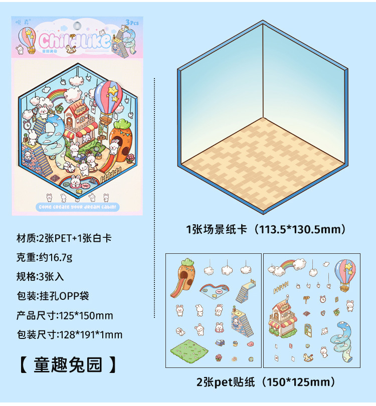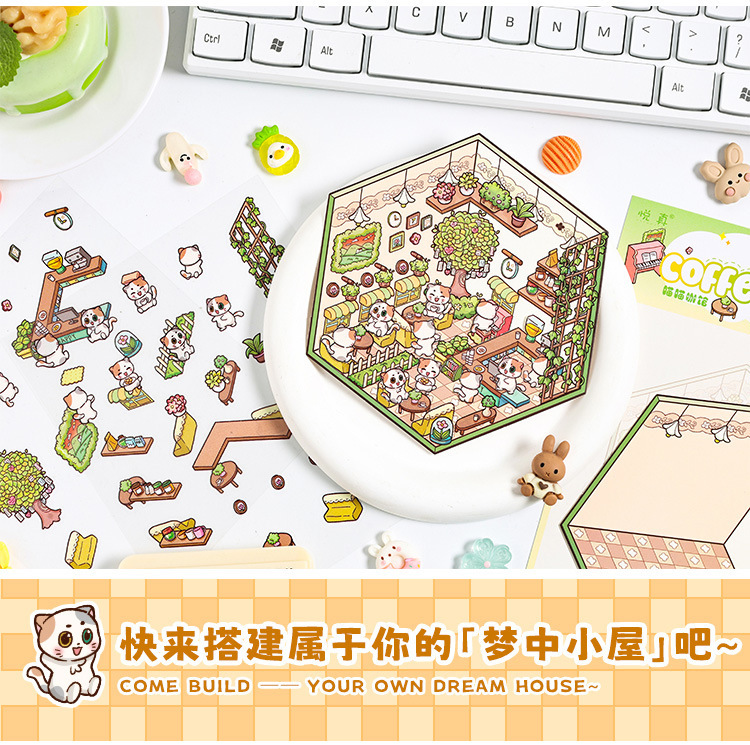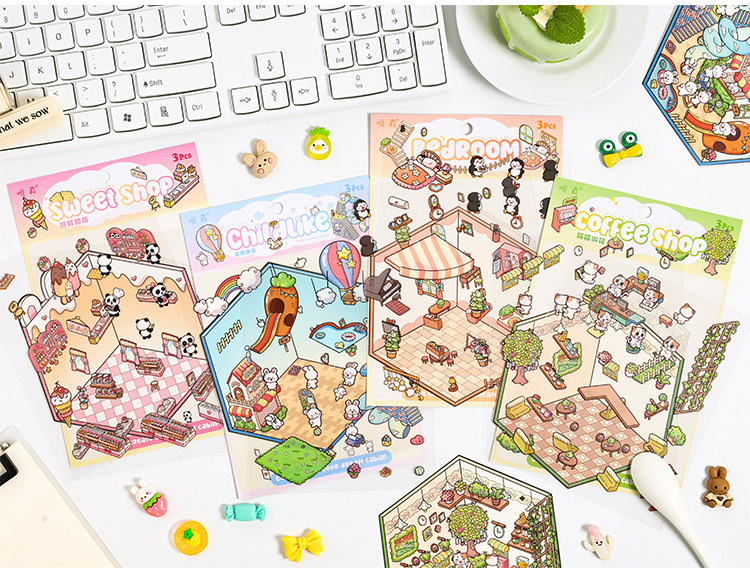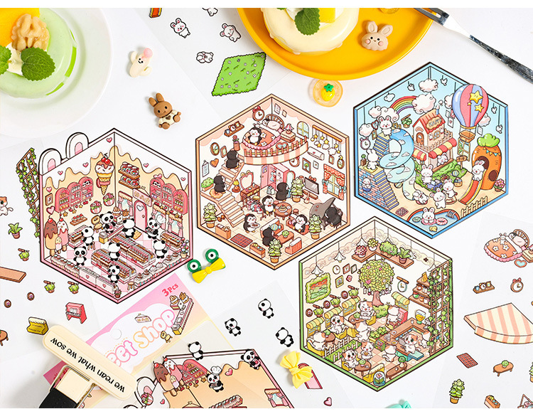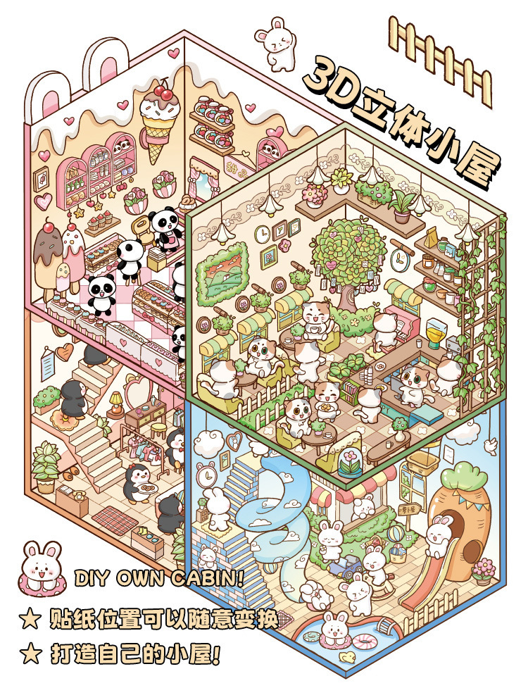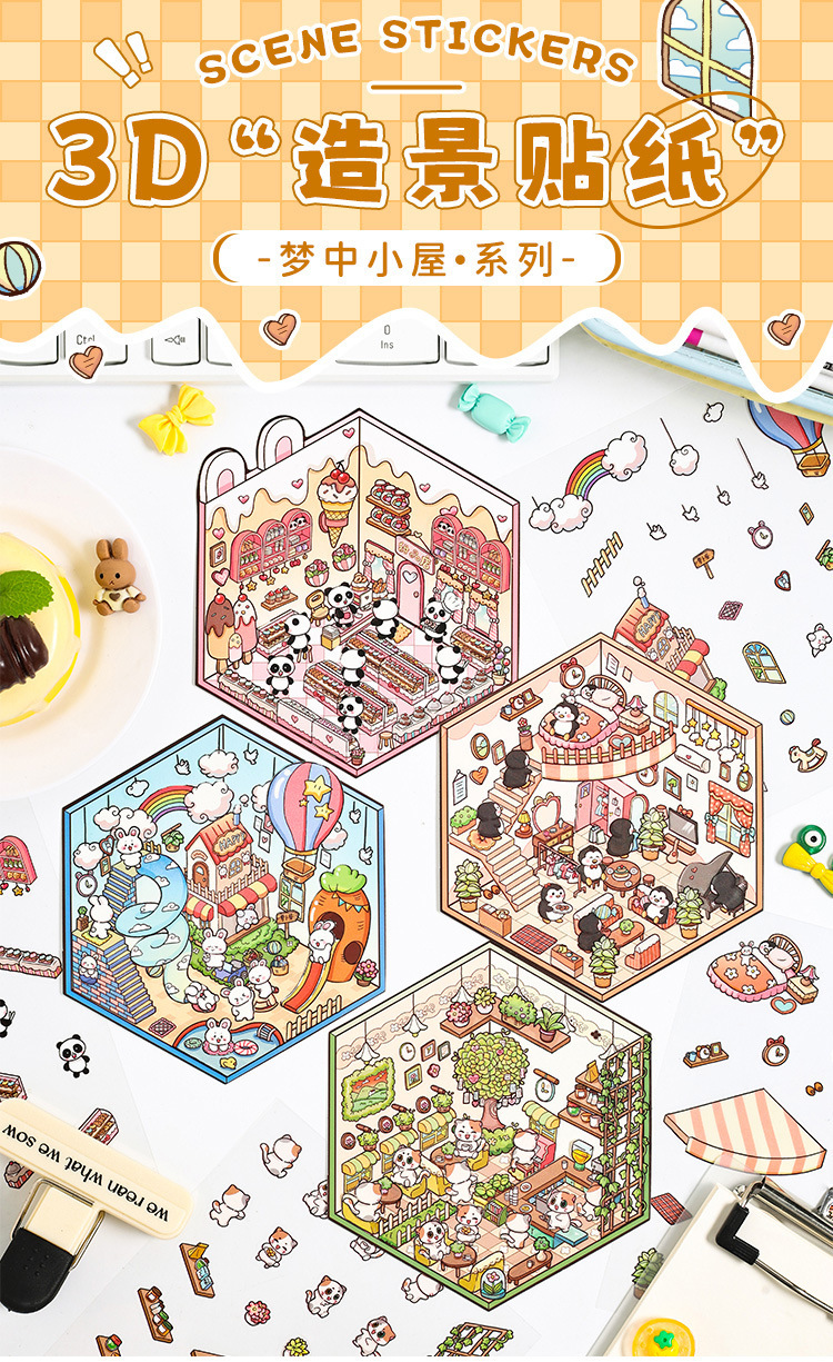 Dream Cabin 3D paisaje tridimensional pegatinas pet diy creativo miniatura dibujos animados contabilidad decoración escenas pegatinas de acertijo