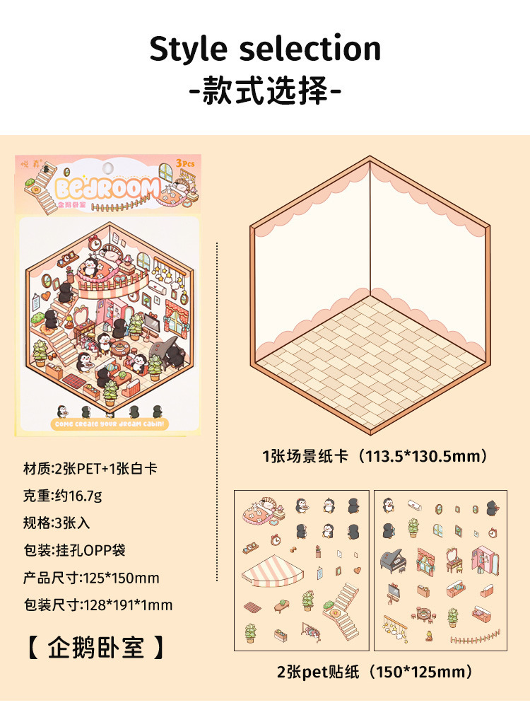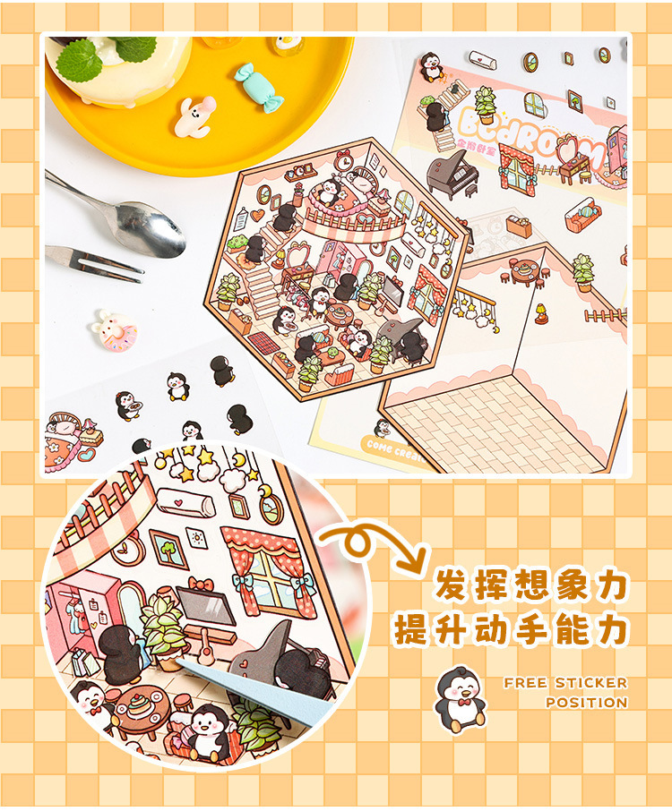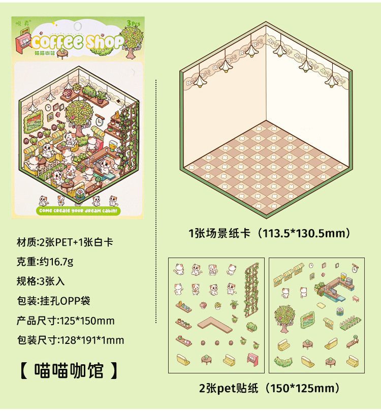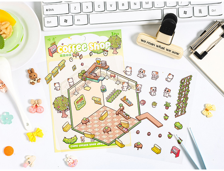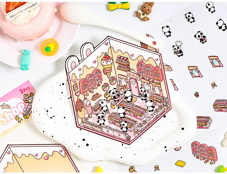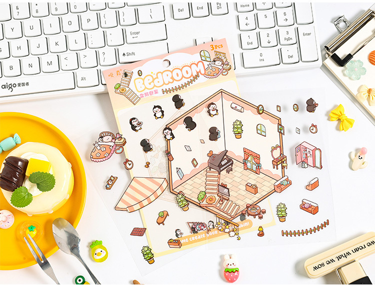 Dream Cabin 3D paisaje tridimensional pegatinas pet diy creativo miniatura dibujos animados contabilidad decoración escenas pegatinas de acertijo