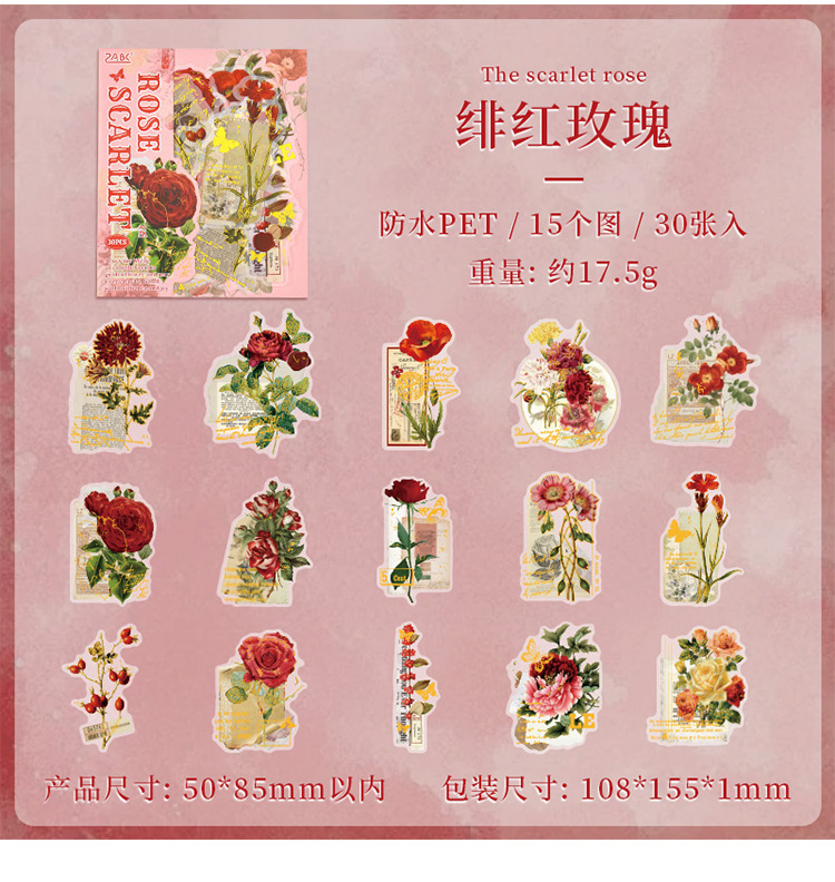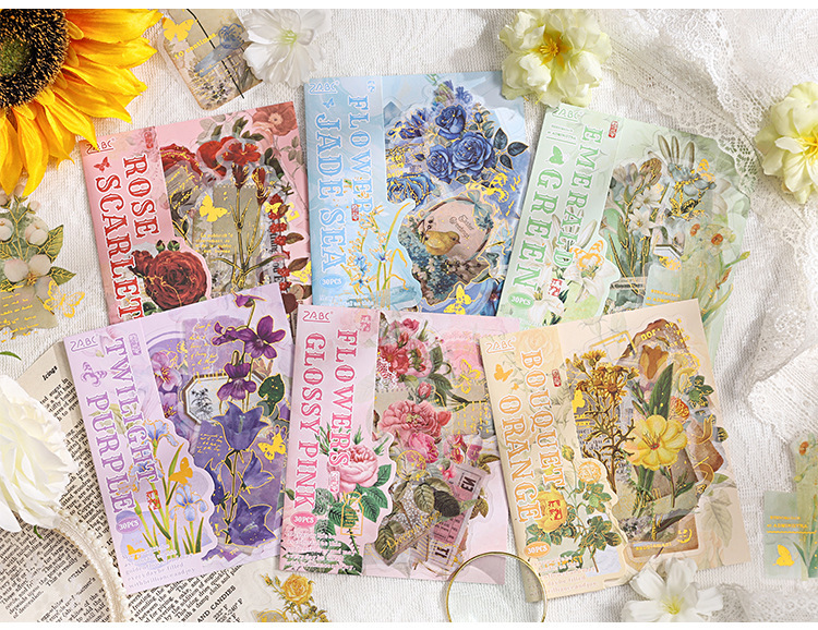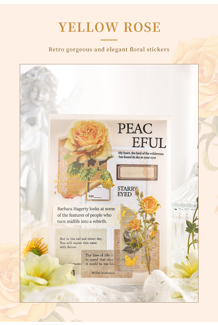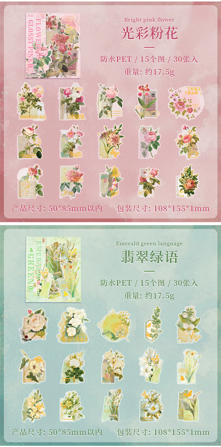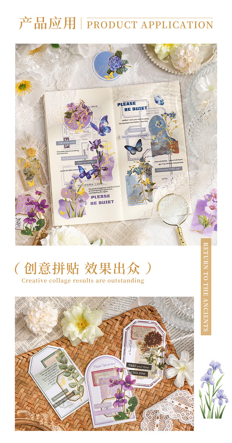 Flor dorada transparente pegatinas impermeables DIY pegatinas de diario pegatinas de flores de plantas estampadas retro transfronterizas