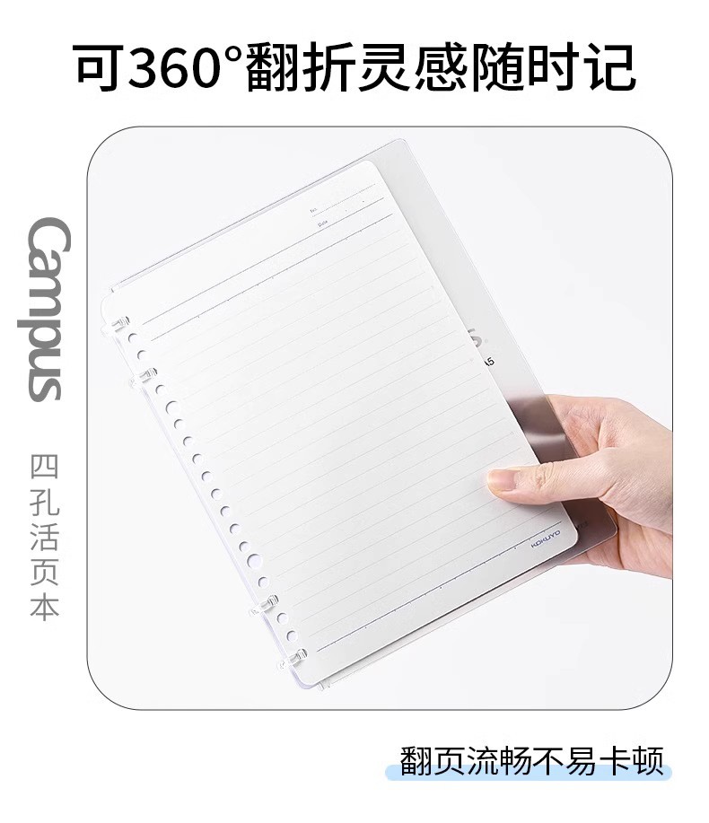Libro de hojas sueltas de cuatro orificios del Campus KOKUYO de Japón b5 desmontable, ligero y de gran capacidad para que los estudiantes lo usen fresco
