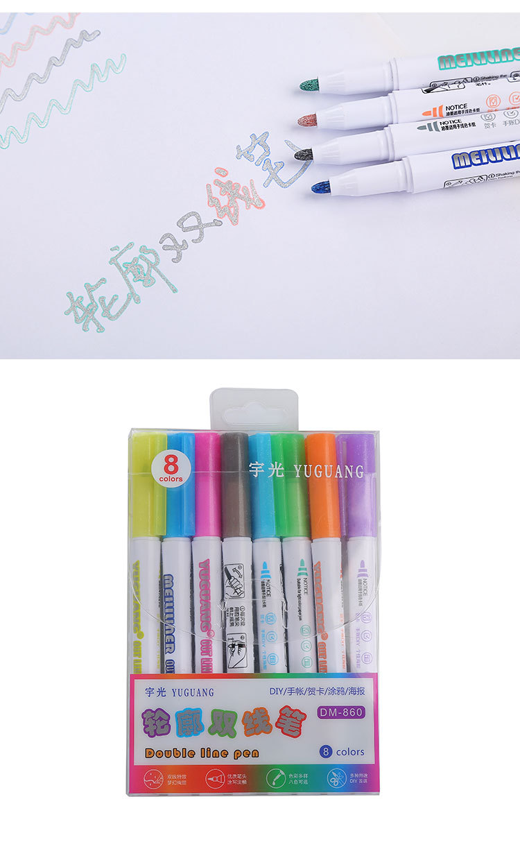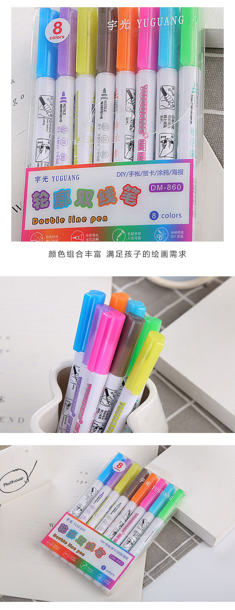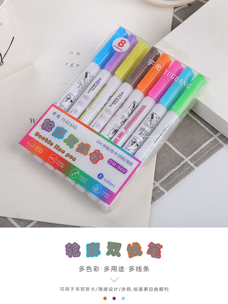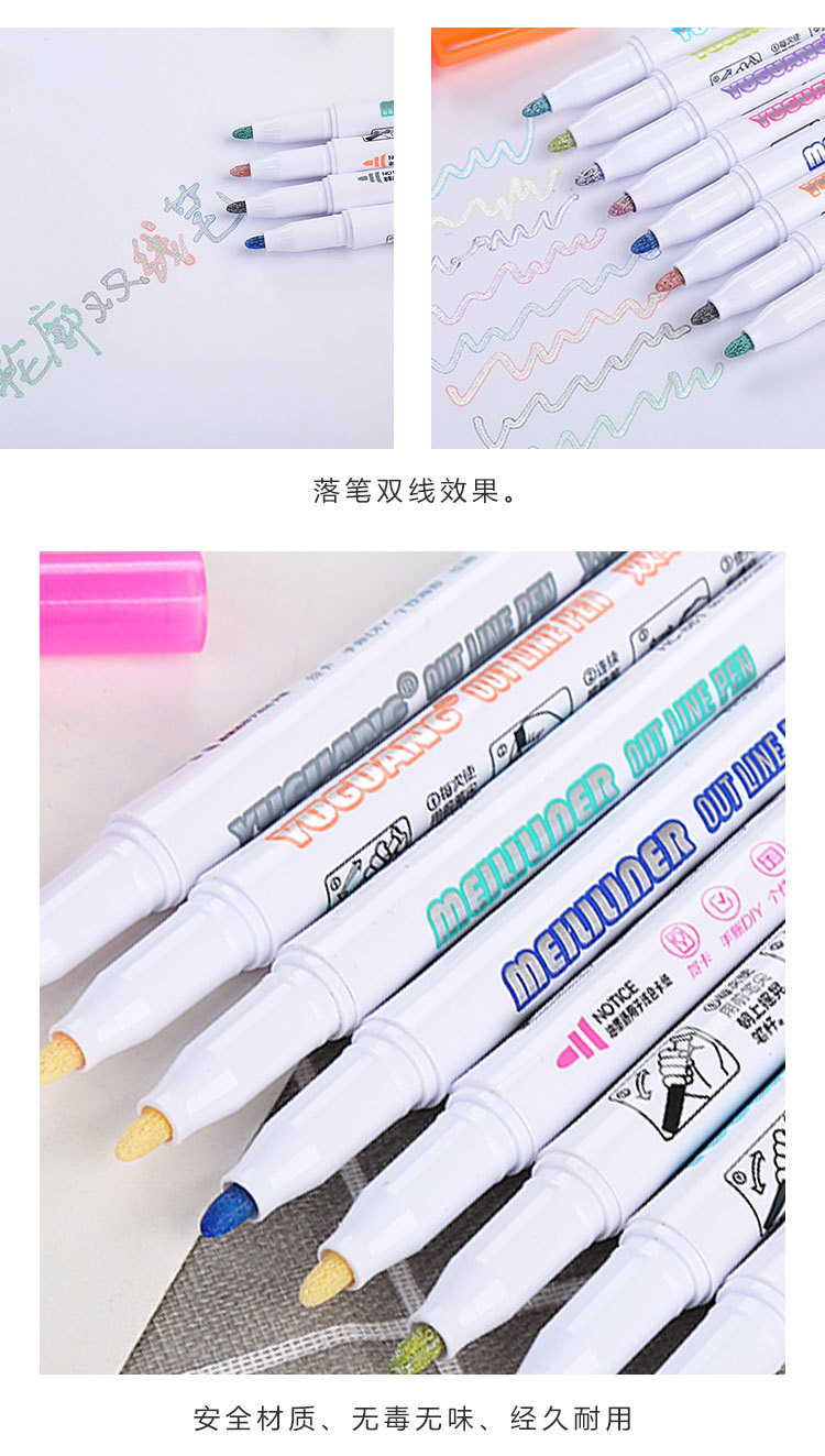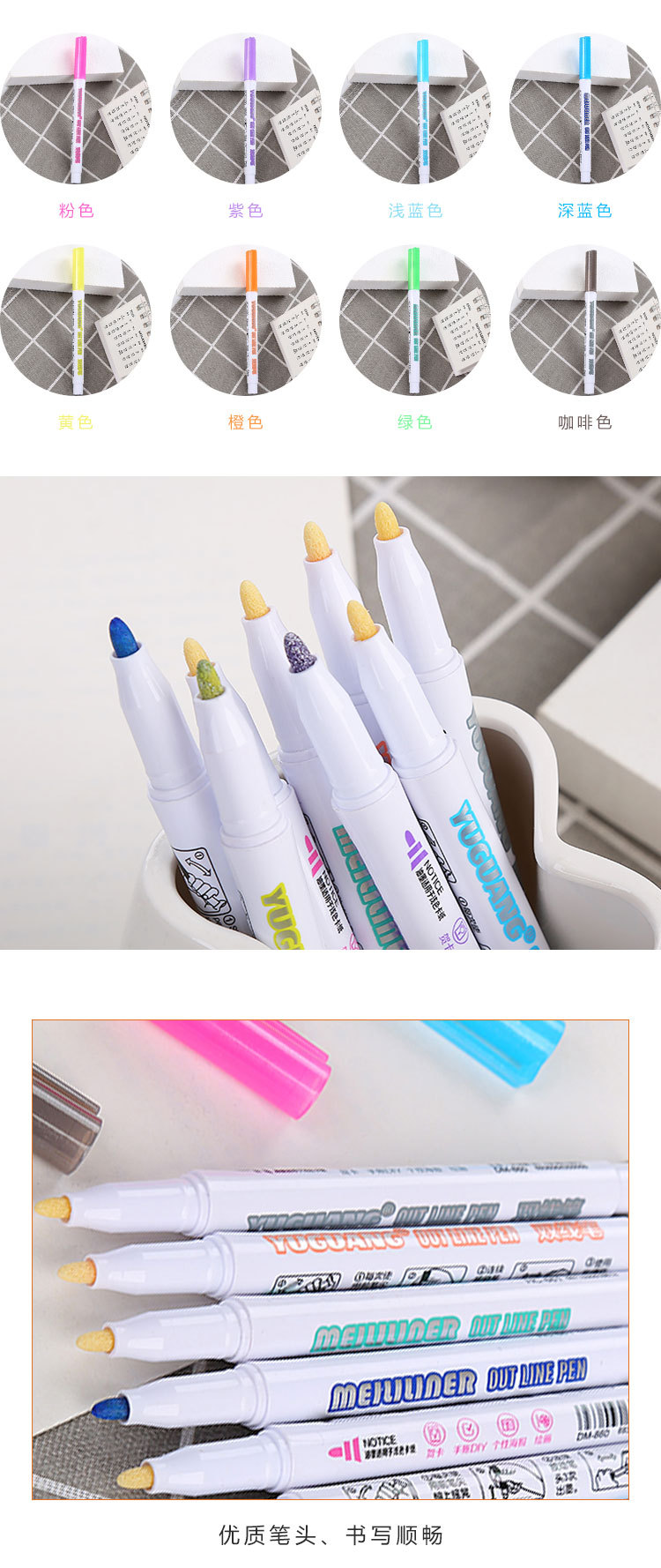 Internet celebridad colorido contorno pluma colorido flash DIY fantasía resaltador multifuncional pintura acuarela pluma al por mayor