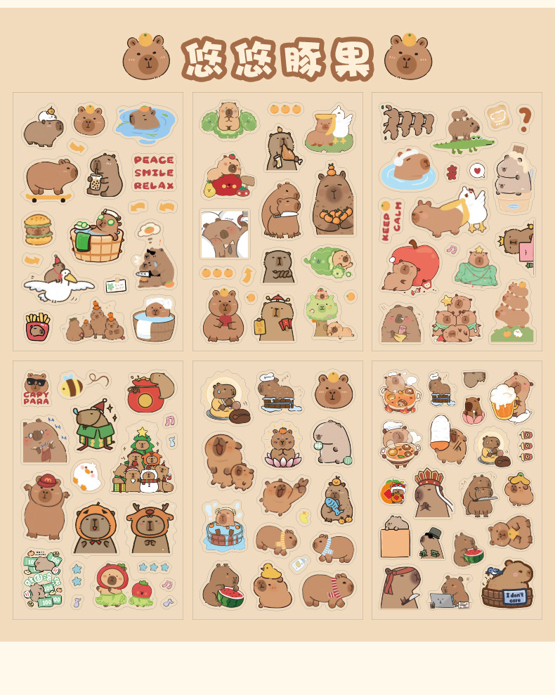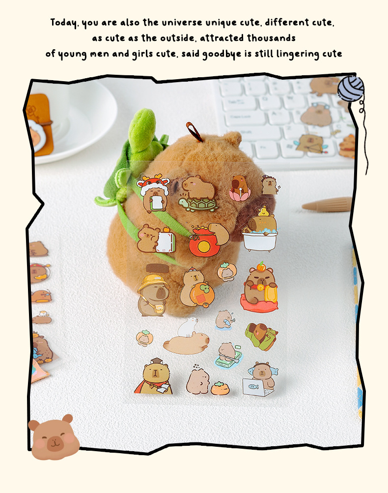 Pigman feliz transparente pegatinas impermeables para mascotas Kapibara serie de papelería pegatinas diy material de decoración de diario