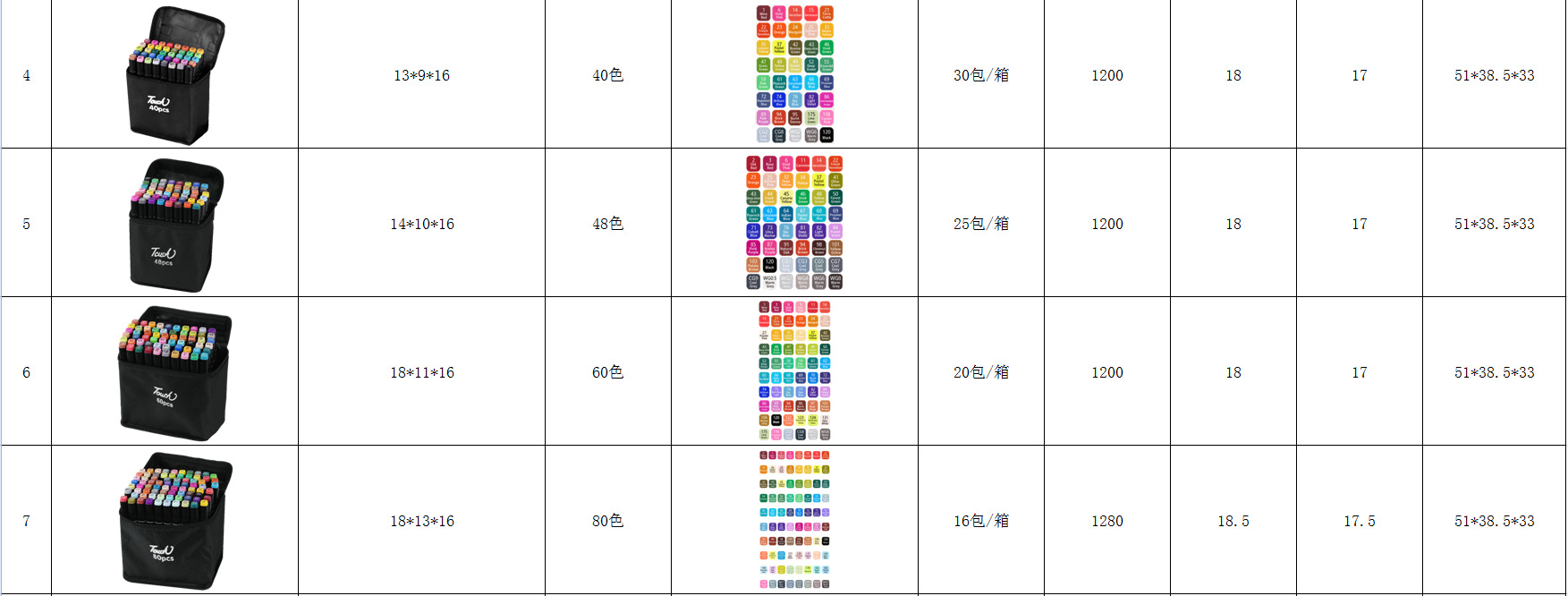 | Especificaciones | Barra negra de 24 colores [marcador de doble cabeza], barra negra de 30 colores [marcador de doble cabeza], base de barra negra de 30 colores [marcador de doble cabeza], barra negra de 36 colores [marcador de doble cabeza], base de barra negra de 36 colores [marcador de doble cabeza], barra negra de 40 colores [marcador de doble cabeza], base de barra negra de 40 colores [marcador de doble cabeza], barra negra de 48 colores [marcador de doble cabeza], base de barra negra de 48 colores [marcador de doble cabeza], barra negra de 60 colores [marcador de doble cabeza], base de barra negra de 60 colores [marcador de doble cabeza], base de barra negra de 60 colores [marcador de doble cabeza], base de barra negra de 80 colores [marcador de doble cabeza], base de barra negra de 80 colores [marcador de doble cabeza].marcador de doble cabeza], barra negra de 100 colores [marcador de doble cabeza], base de barra negra de 100 colores [marcador de doble cabeza], barra negra de 120 colores [marcador de doble cabeza], base de barra negra de 120 colores [marcador de doble cabeza], barra negra de 168 colores [marcador de doble cabeza], base de barra negra de 168 colores [marcador de doble cabeza], Bolso de hombro único con barra negra de 168 colores [marcador de doble cabeza] |