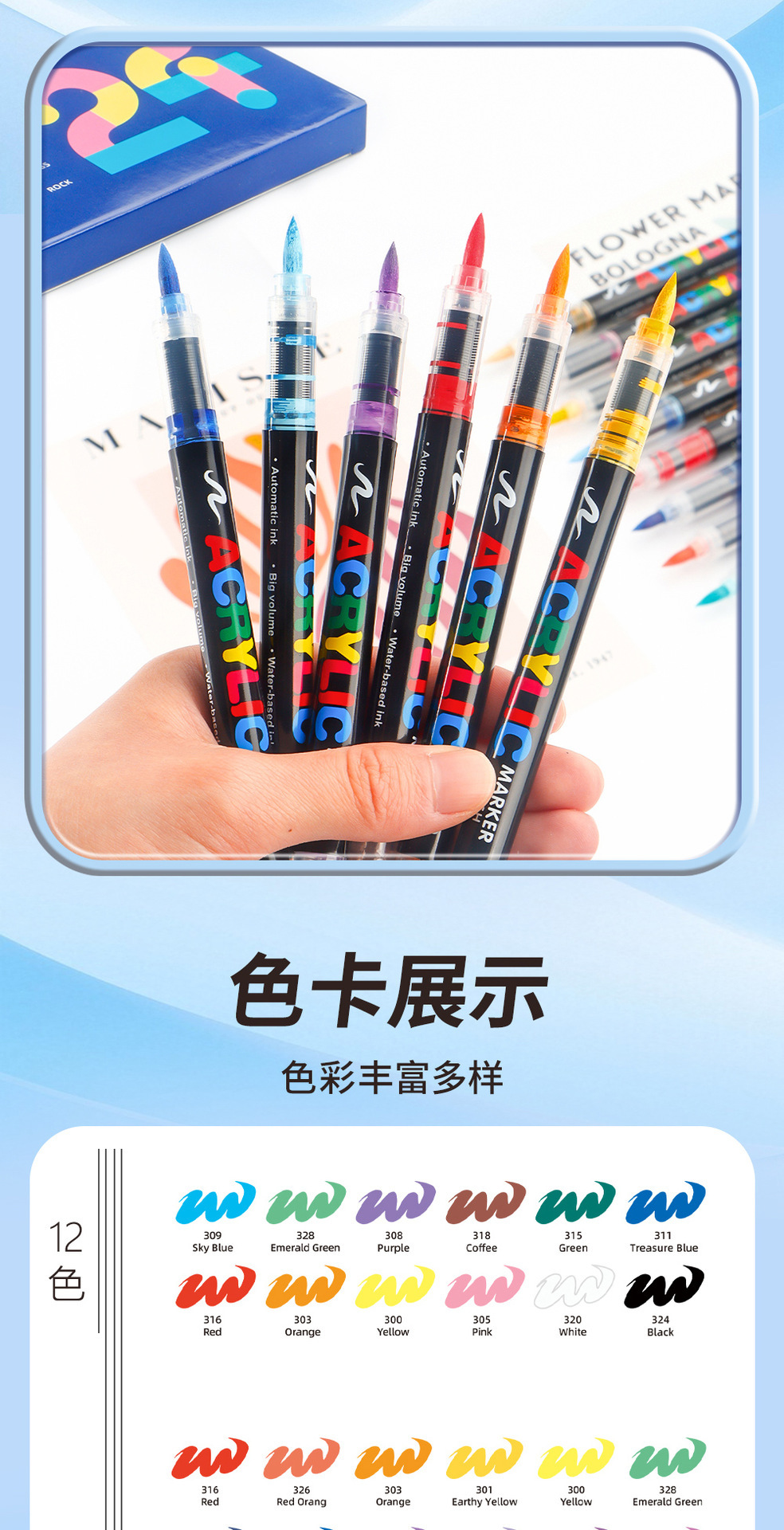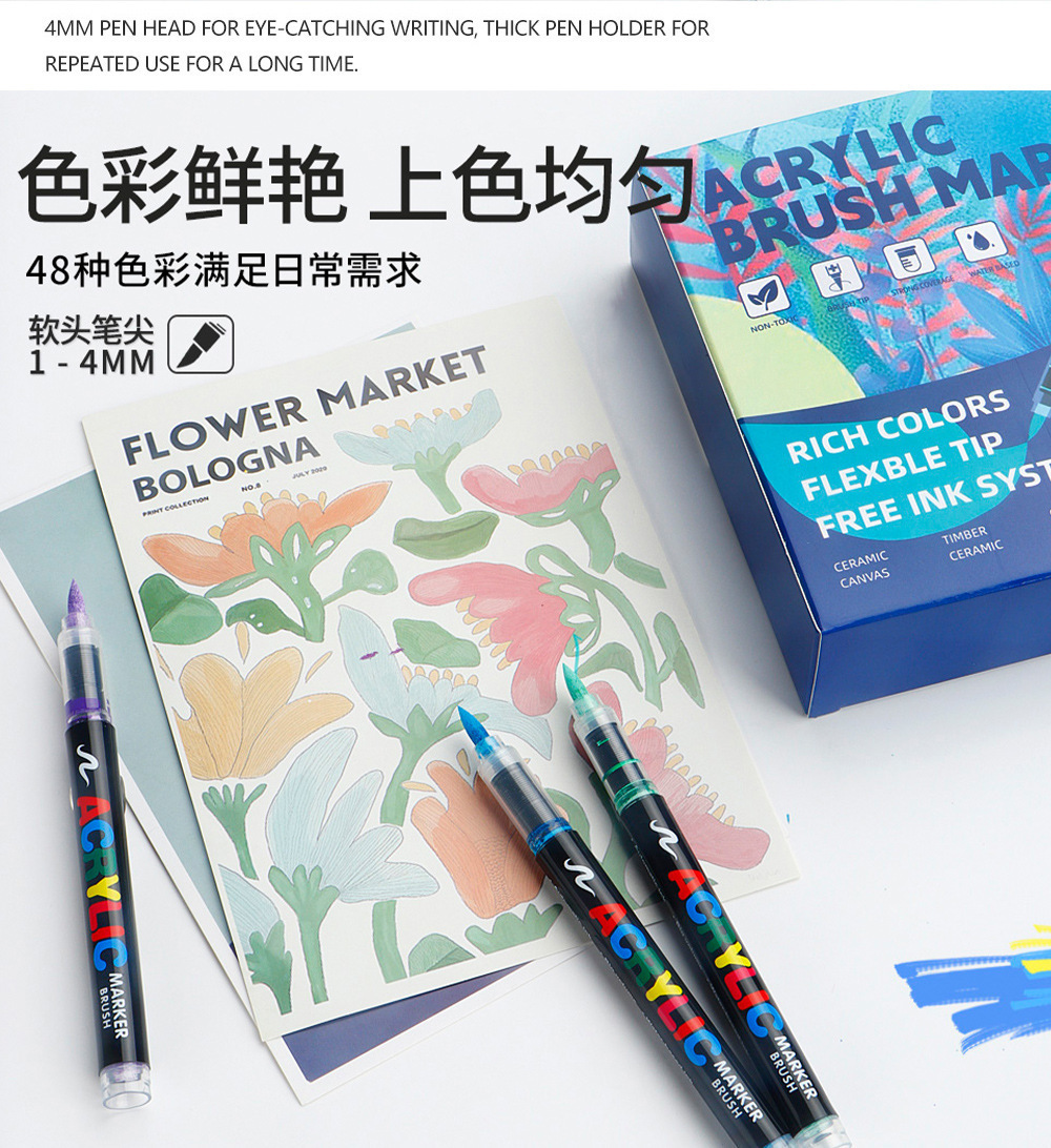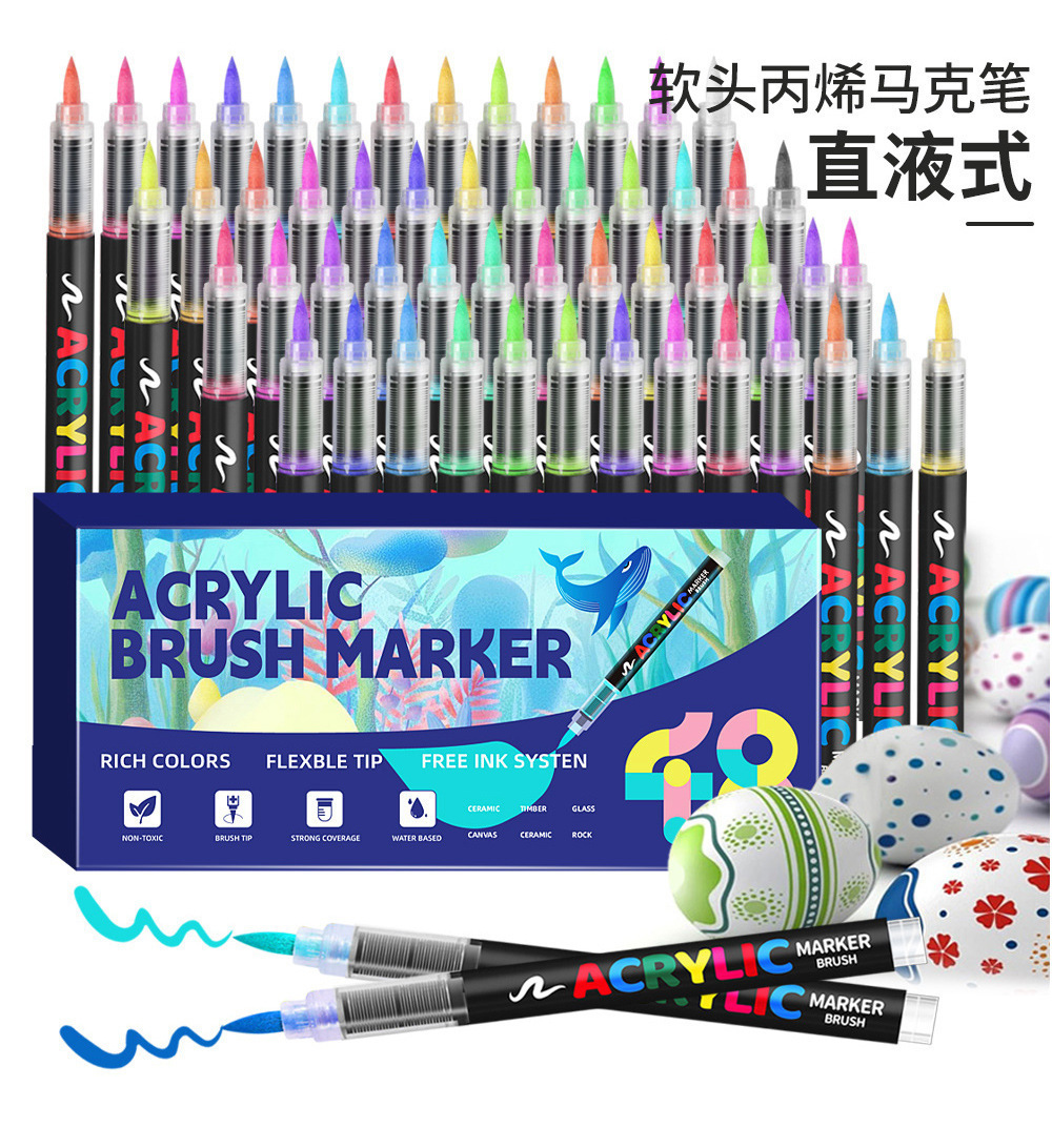 Nuevo marcador acrílico de punta suave tipo líquido recto para pintura artística de estudiantes, bolígrafo de tinta de control de color apilable, bolígrafo de dibujo de gran capacidad.