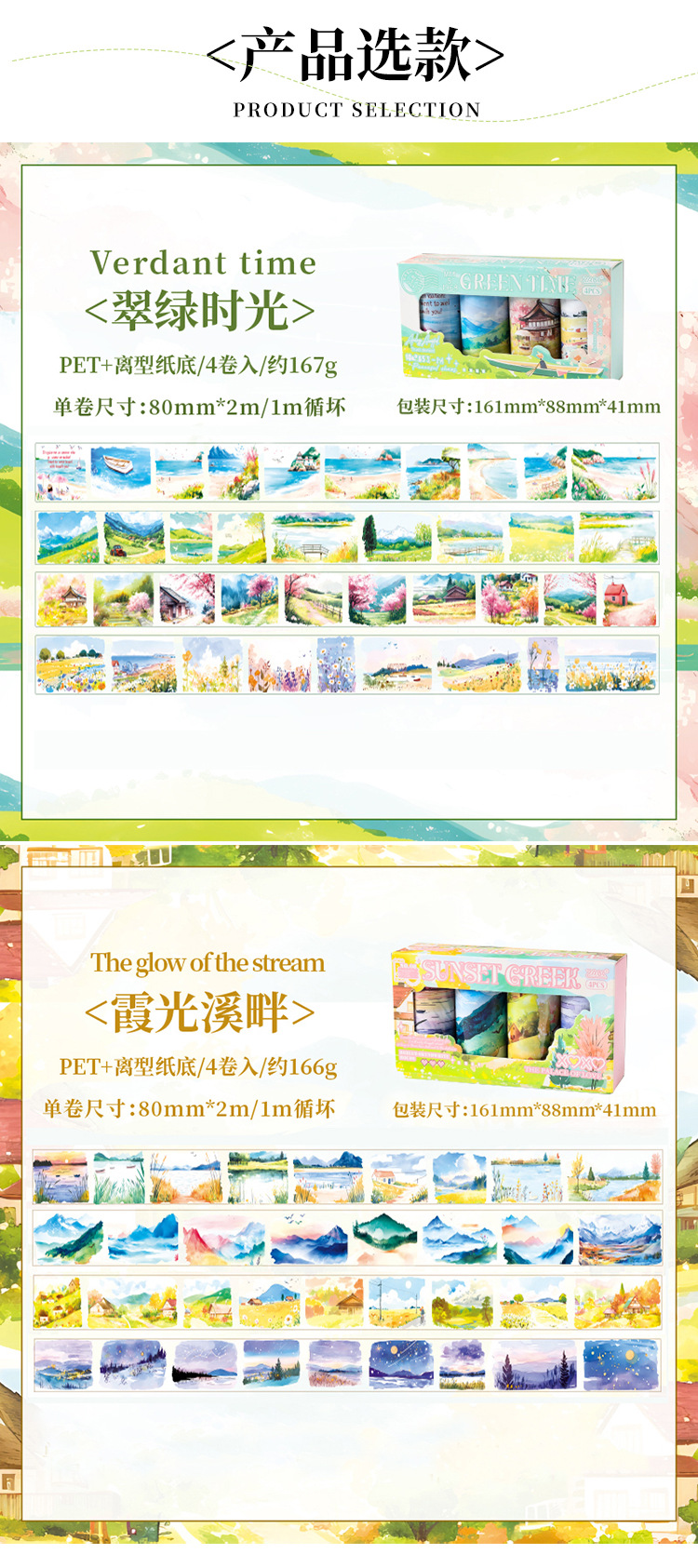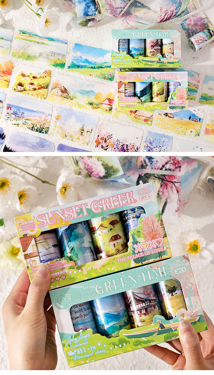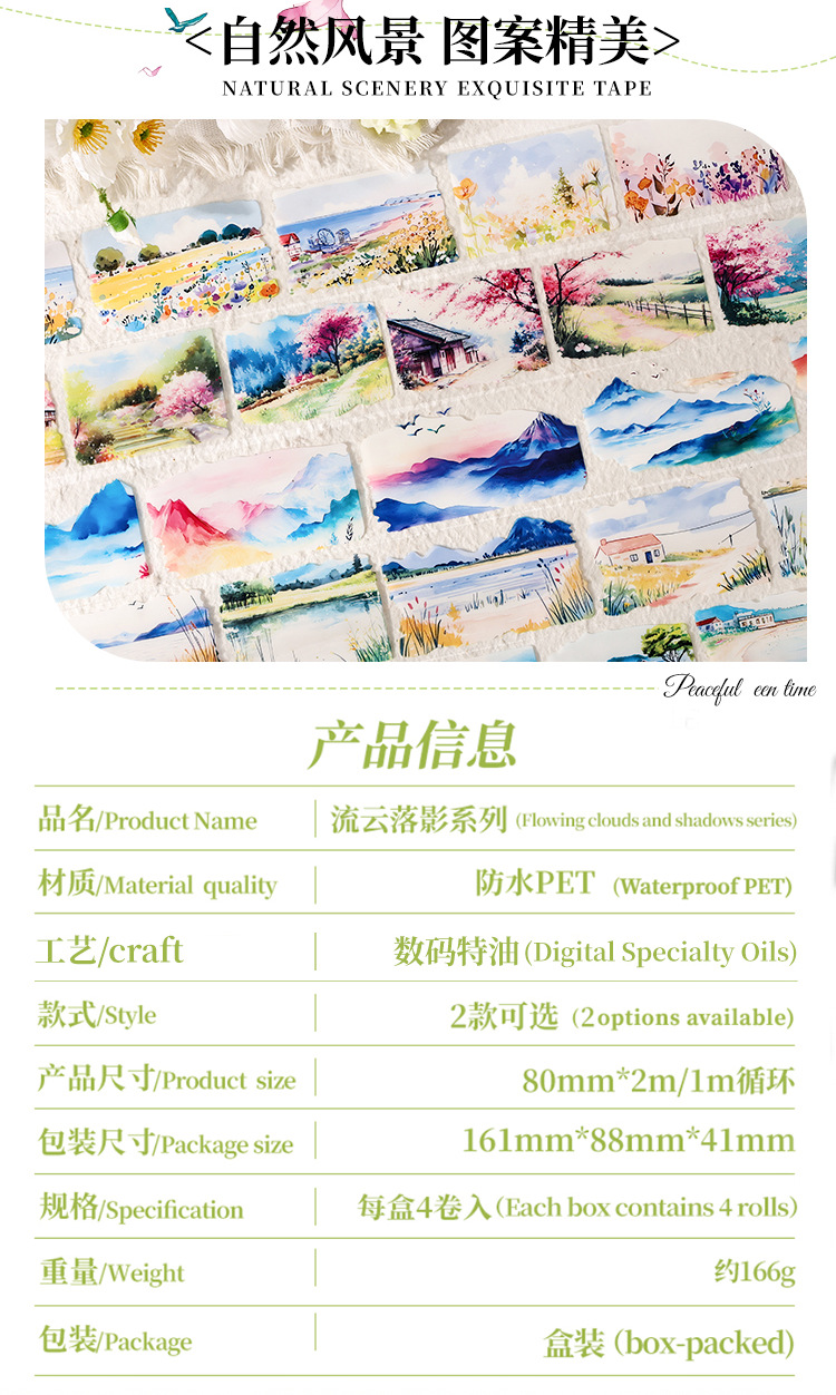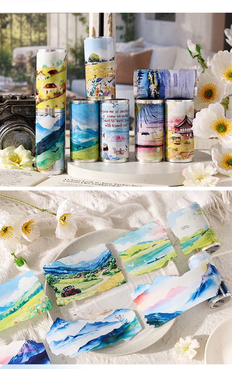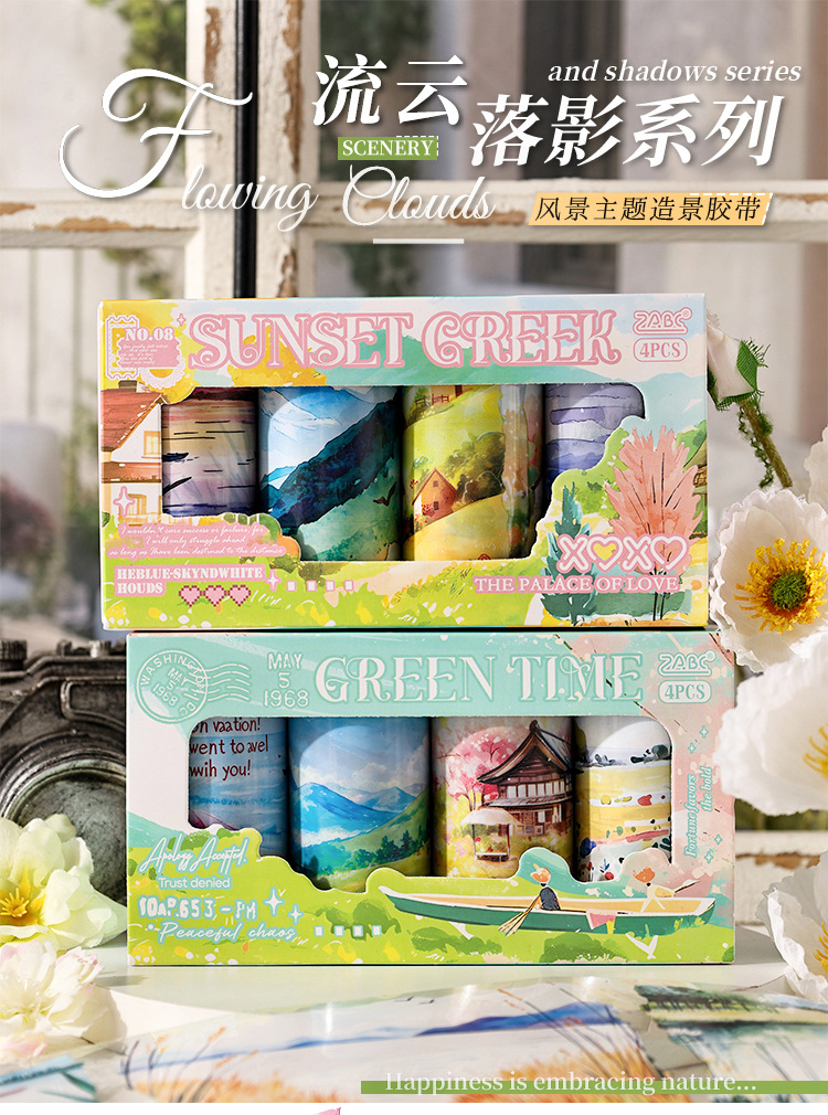 Nubes que fluyen y sombras serie pet tema de paisaje cinta de paisajismo caja de bricolaje material de decoración de cuenta manual cinta de collage