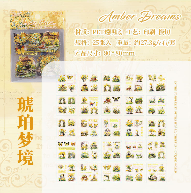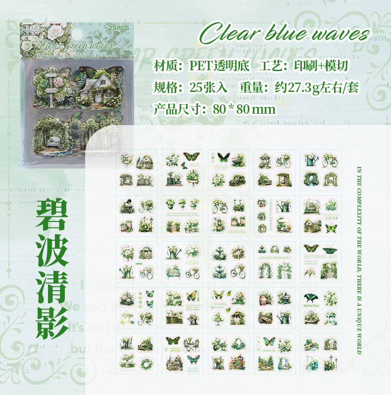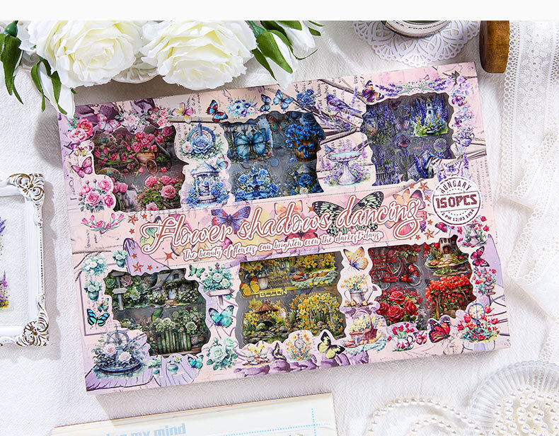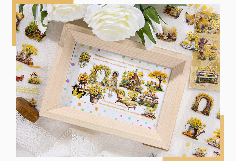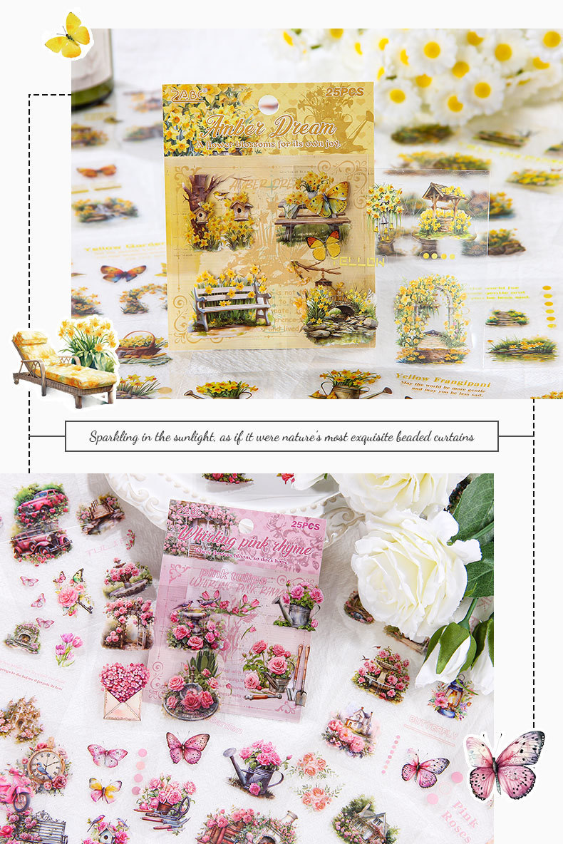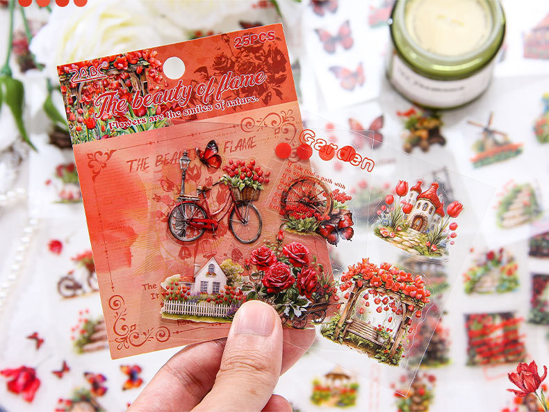 Espejos de flores transparentes pegatinas impermeables DIY pegatinas de diario pegatinas de flores pastorales retro transfronterizas pegatinas animales
