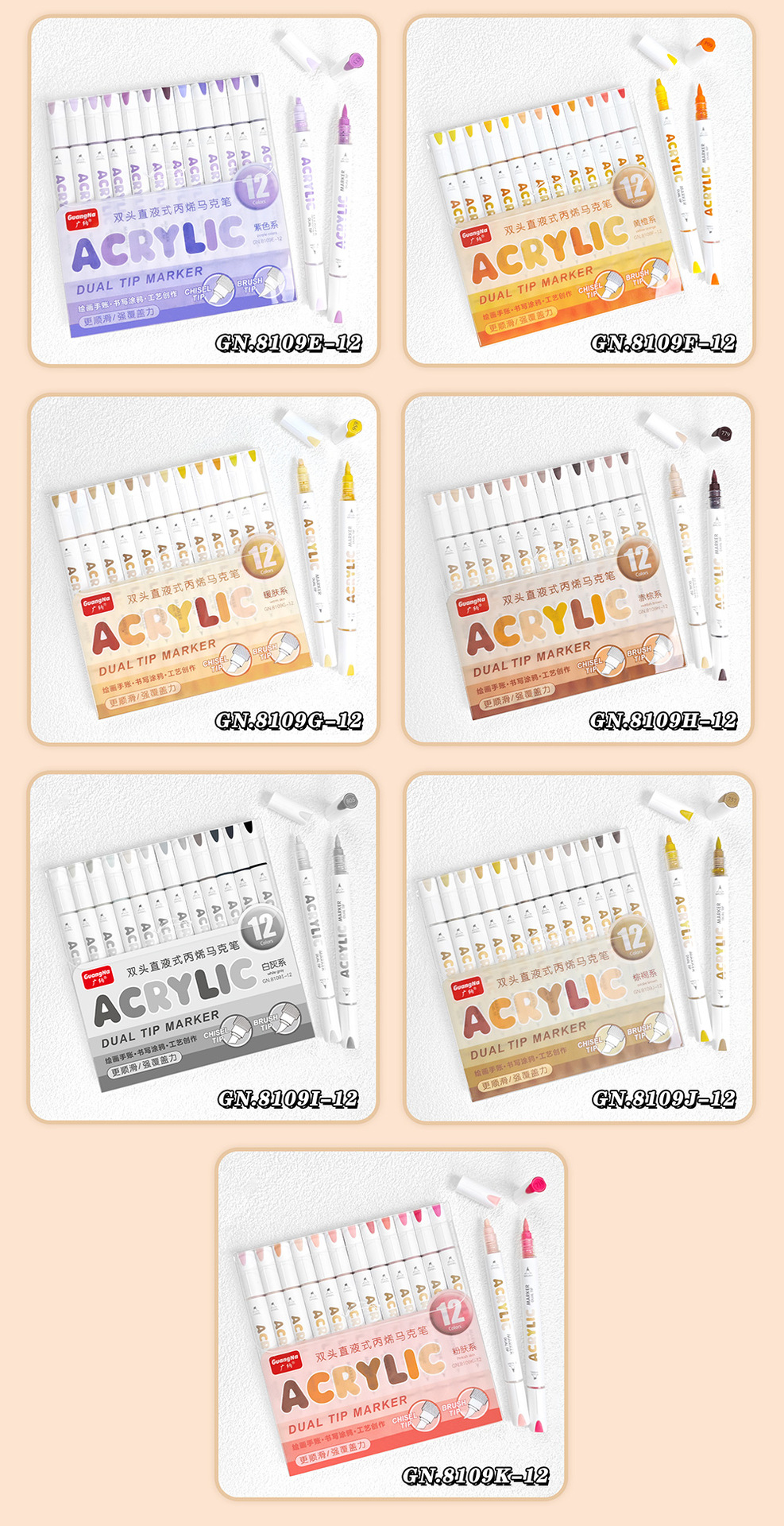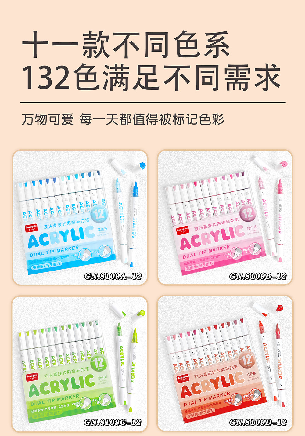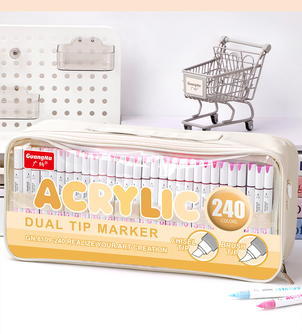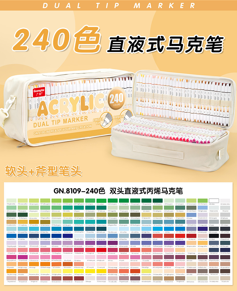 El rotulador acrílico de doble cabezal tipo líquido directo Guangna 8109 se puede apilar, papel impermeable, bricolaje, pintura de arte de graffiti