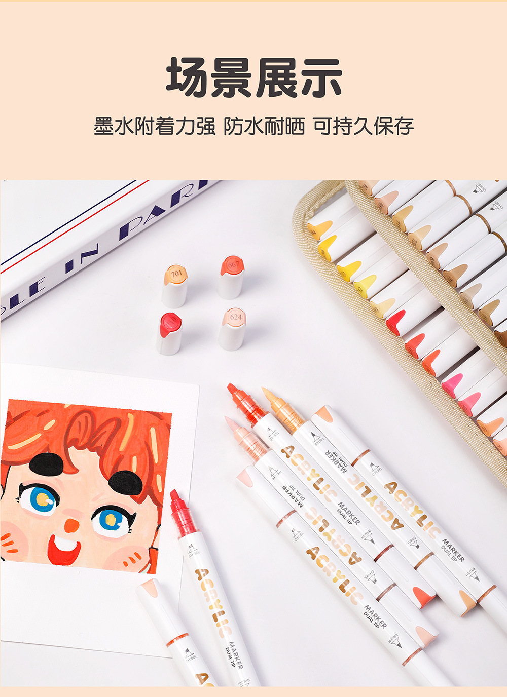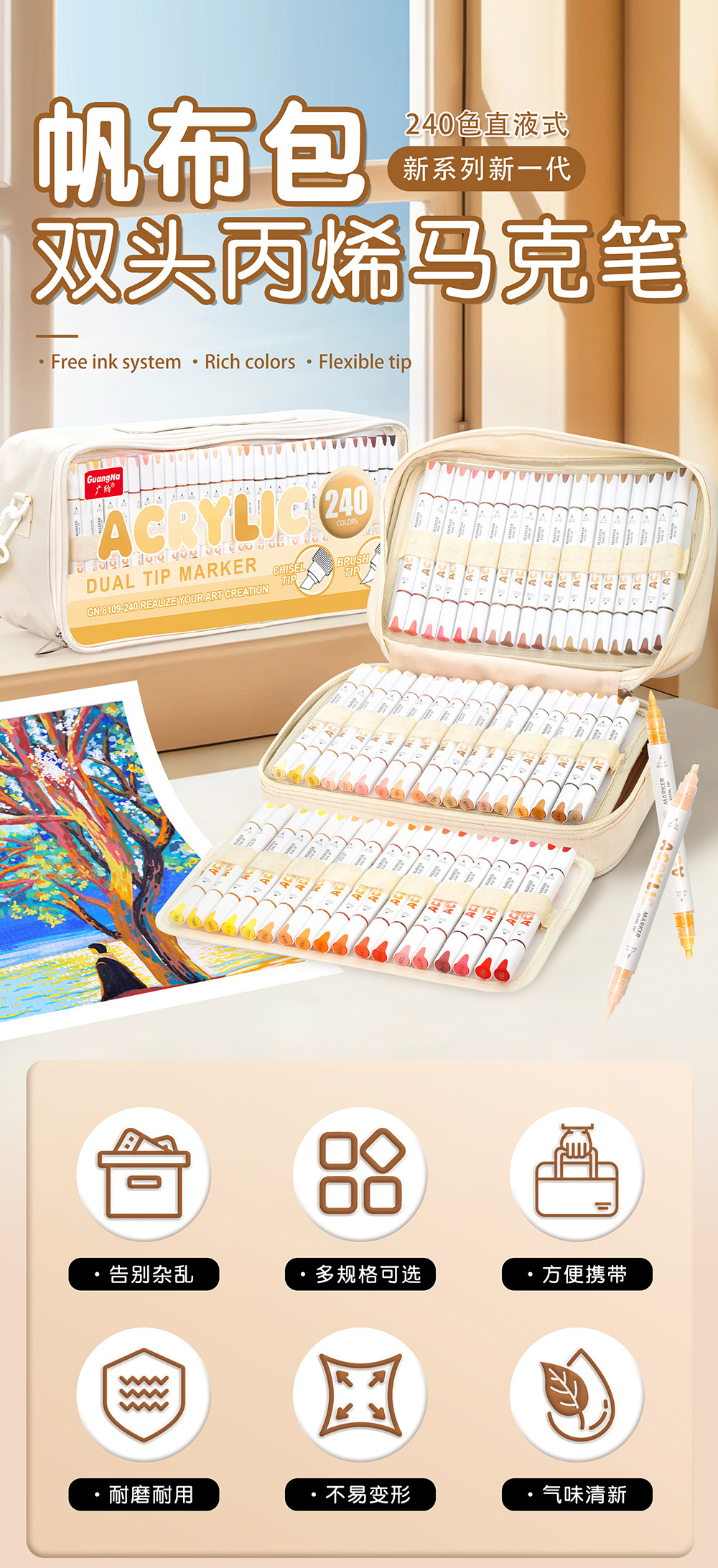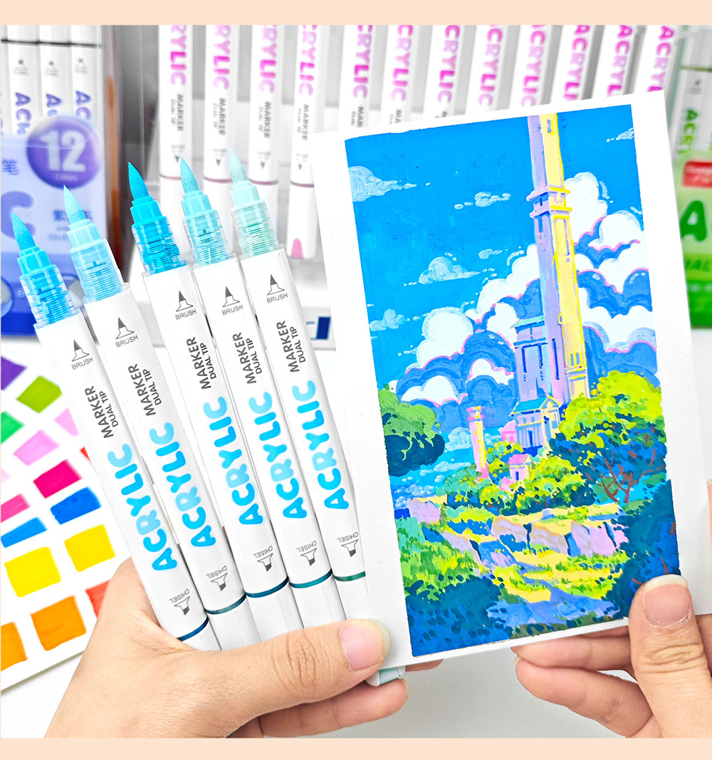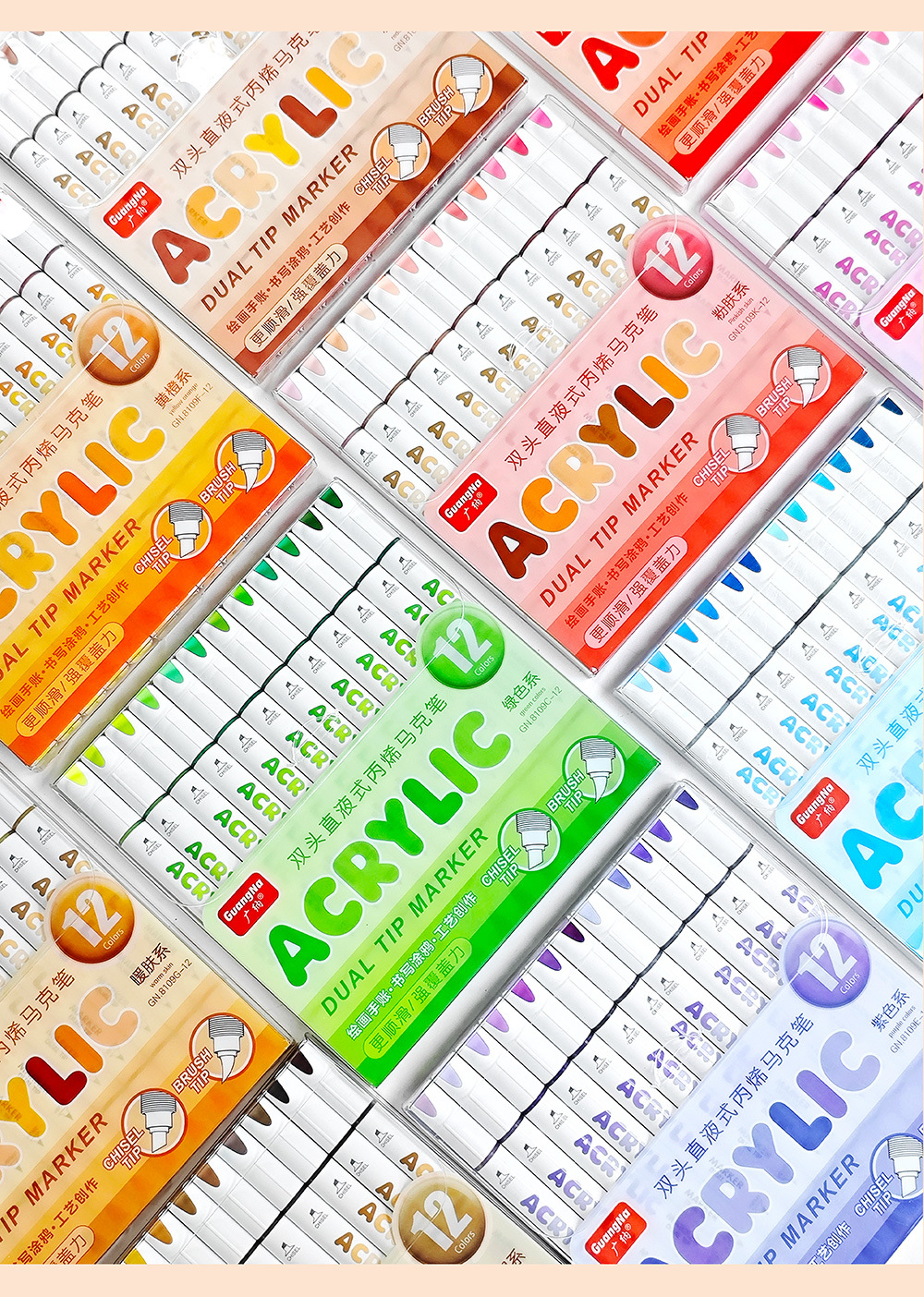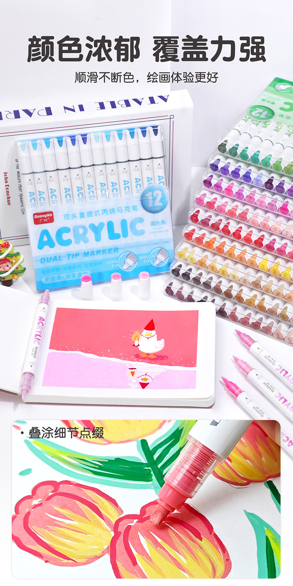 El rotulador acrílico de doble cabezal tipo líquido directo Guangna 8109 se puede apilar, papel impermeable, bricolaje, pintura de arte de graffiti