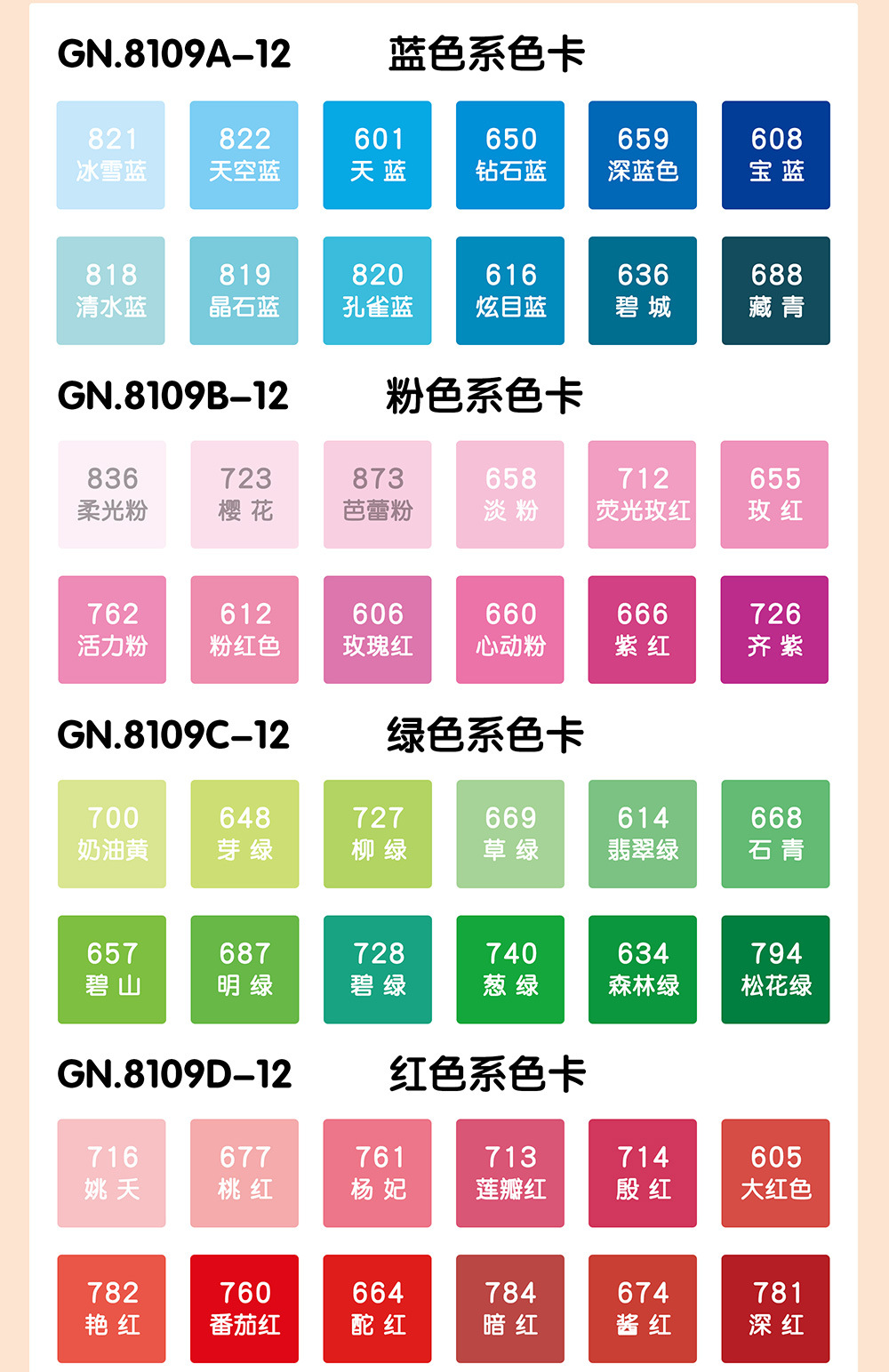 | Especificaciones | Color GN8109A-12,Color GN8109B-12,Color GN8109C-12,Color GN8109D-12,Color GN8109E-12,Color GN8109F-12,Color GN8109G-12,Color GN8109H-12,Color GN8109I-12,Color GN8109K-12,Color GN8109J-12 |