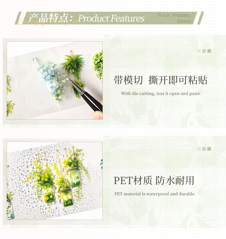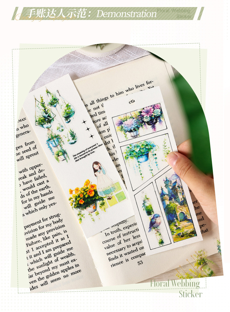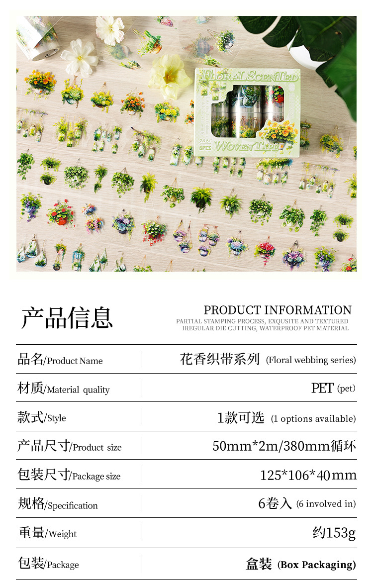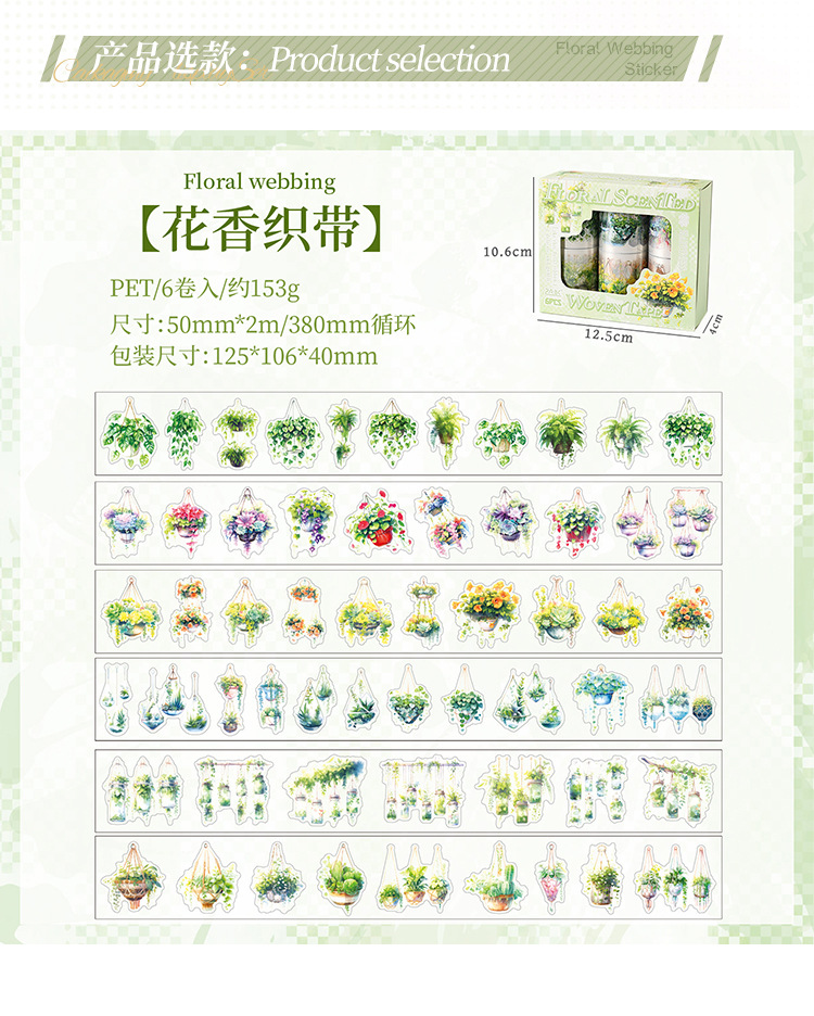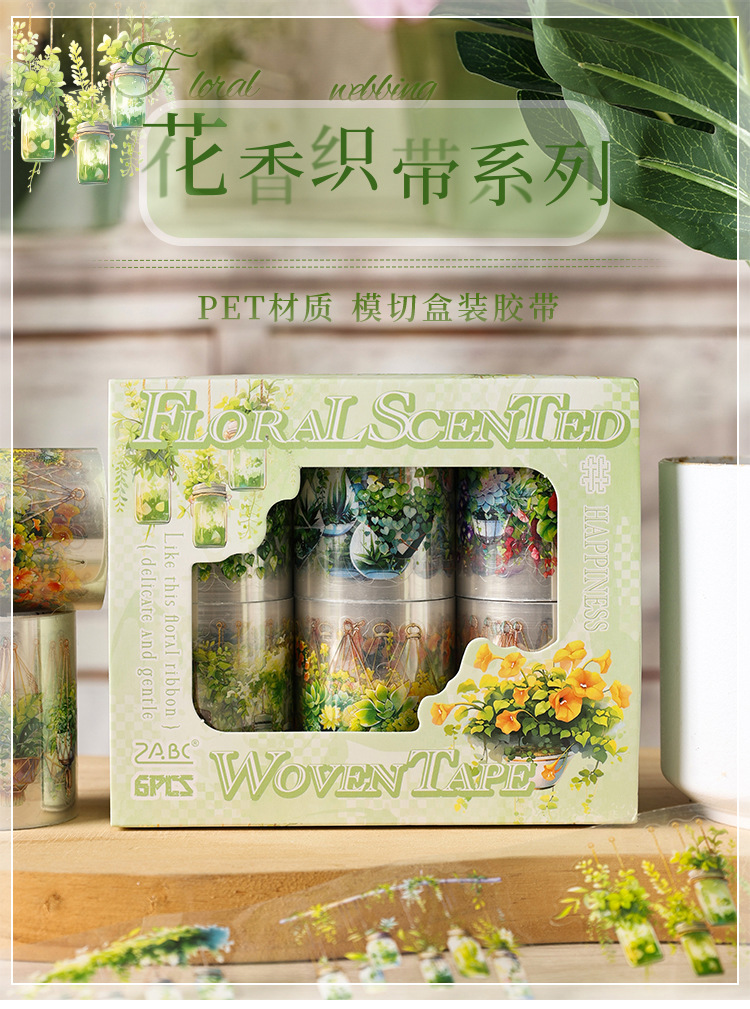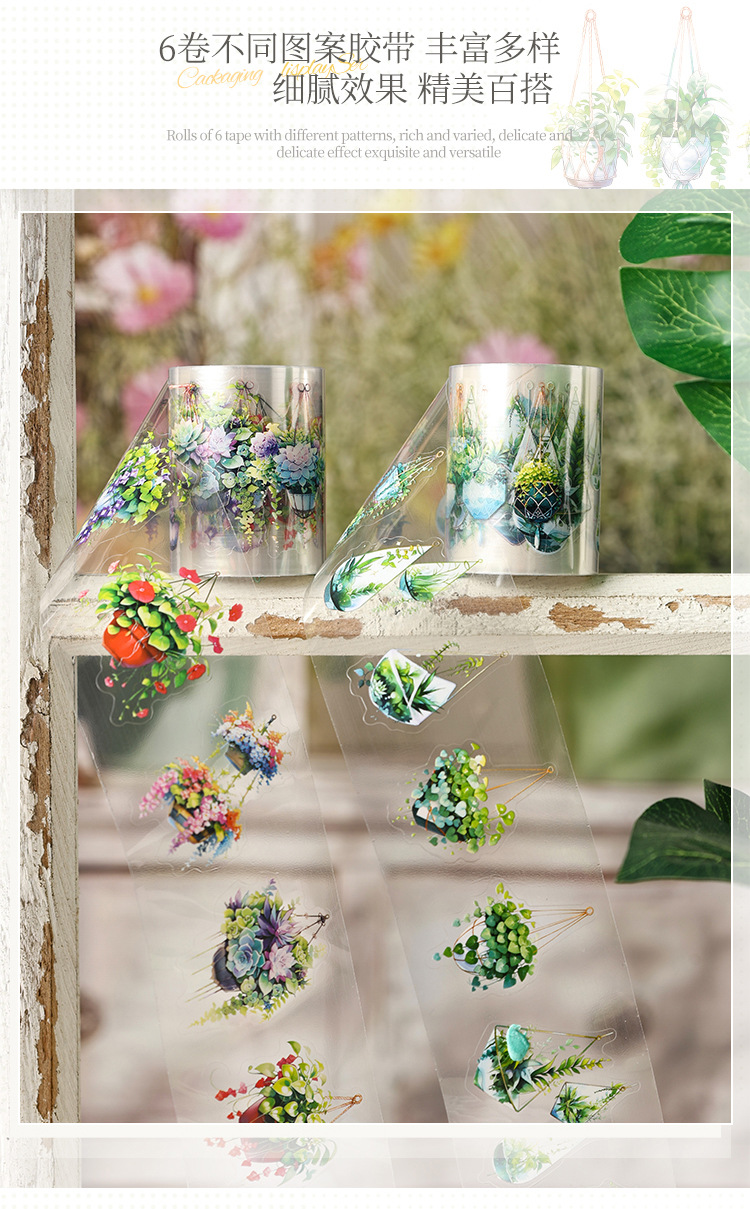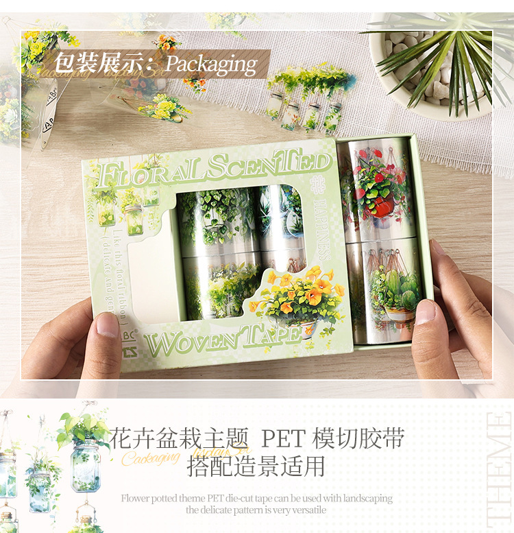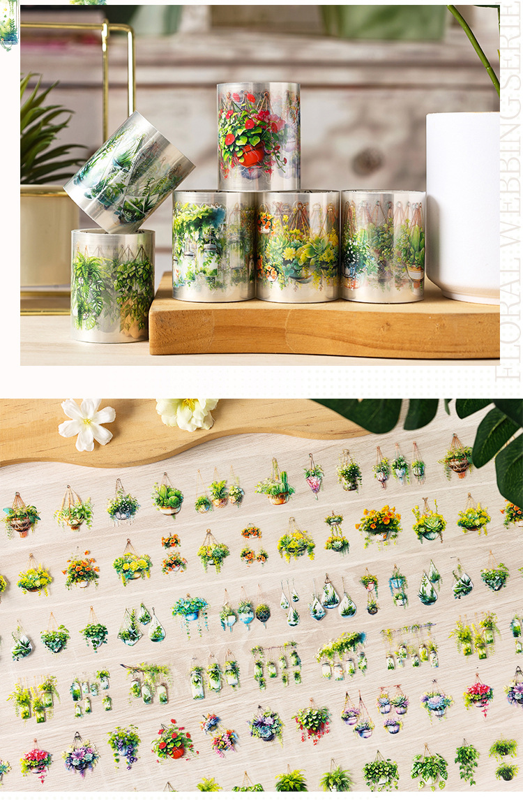 Serie de correas florales Pet tema floral cinta de caja material de decoración de bricolaje cinta de tienda de mano de paisaje de collage