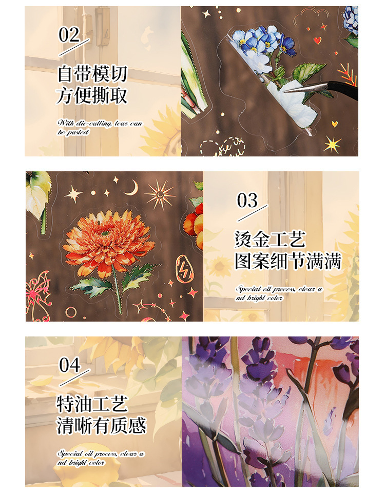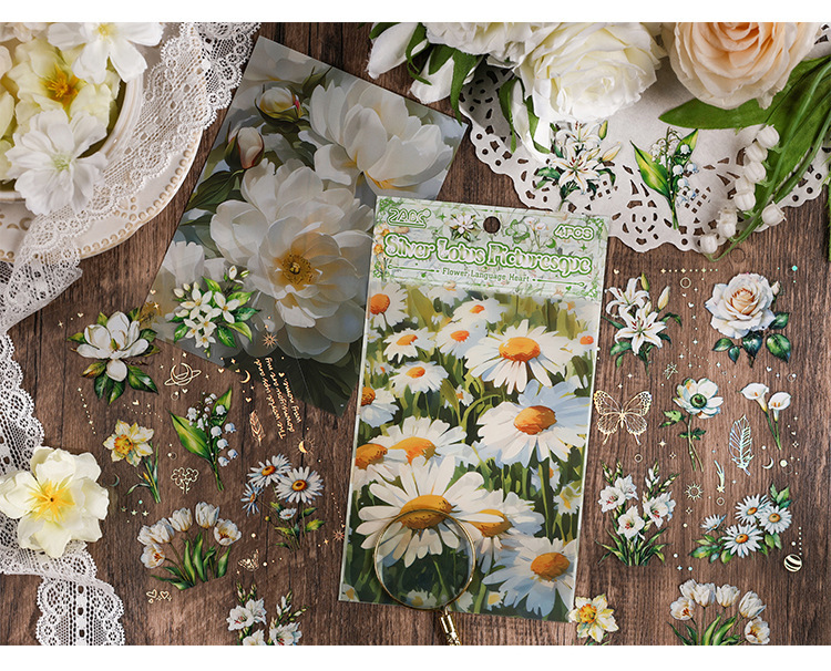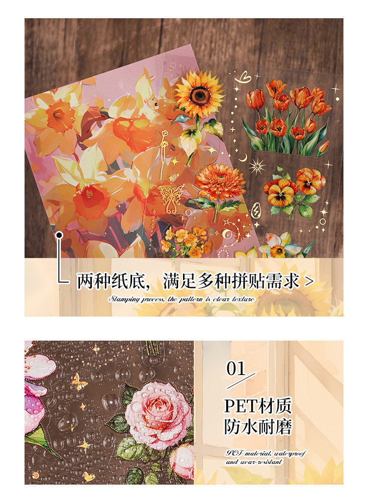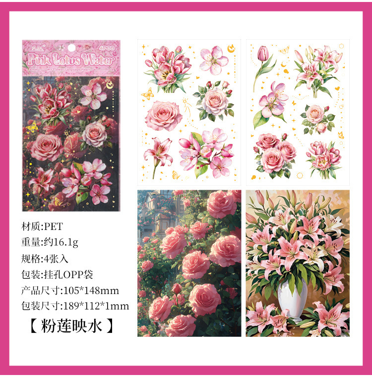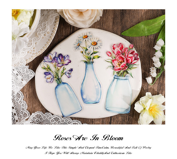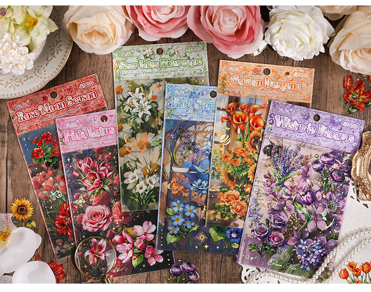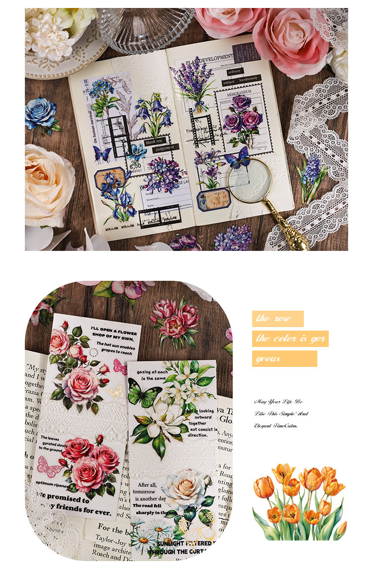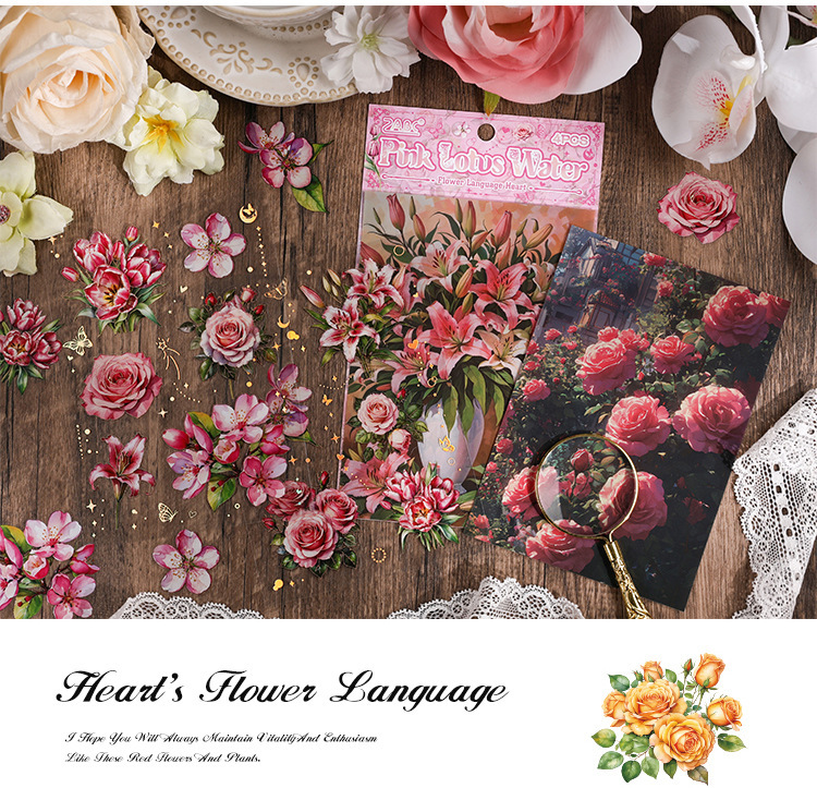 Flor de corazón transparente pegatinas impermeables para mascotas diy diario pegatinas transfronterizas retro estampado pegatinas de flores y plantas