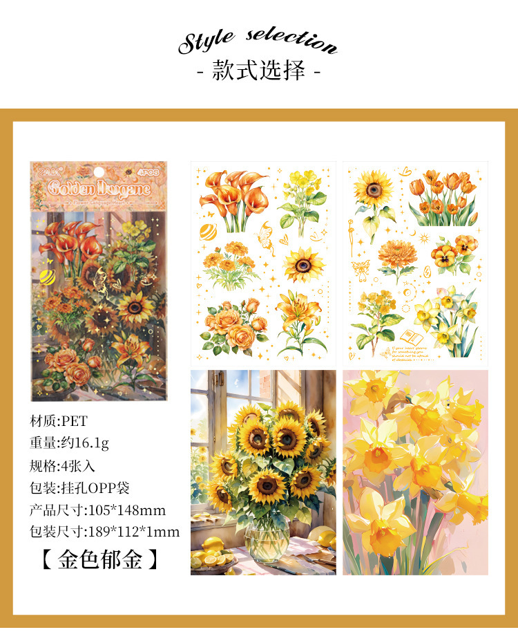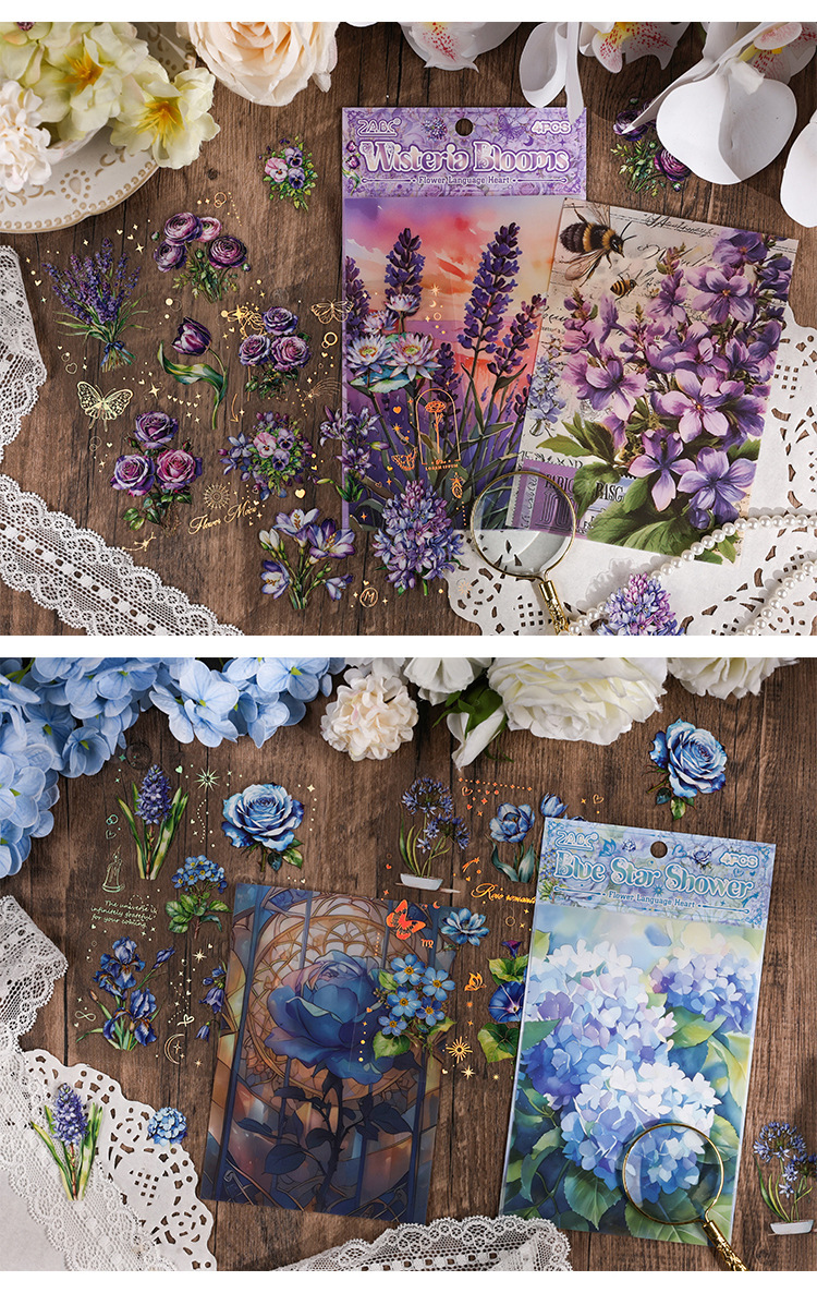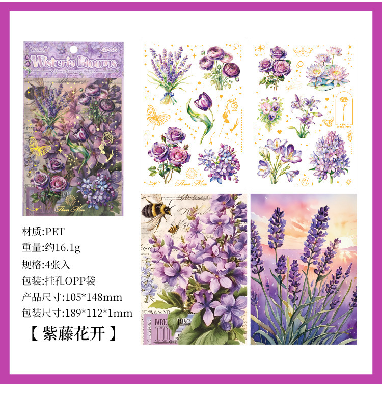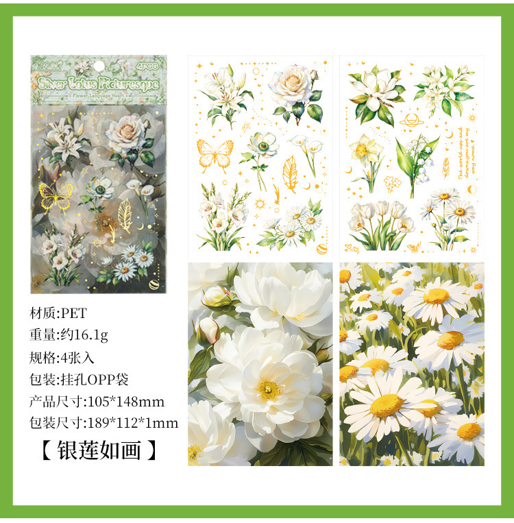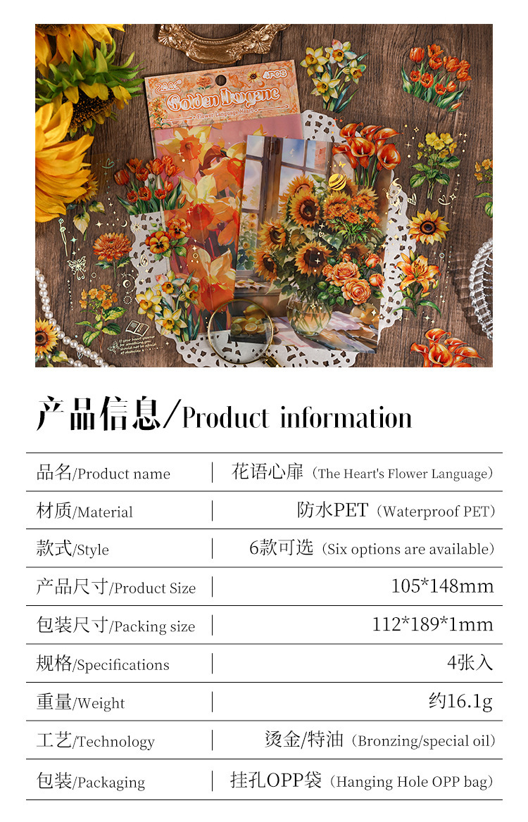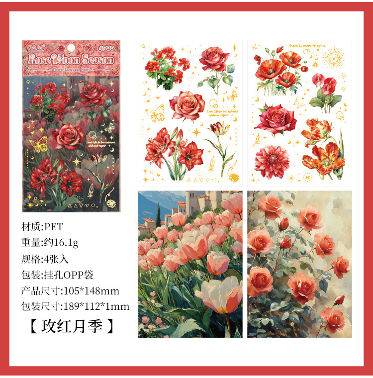 Flor de corazón transparente pegatinas impermeables para mascotas diy diario pegatinas transfronterizas retro estampado pegatinas de flores y plantas
