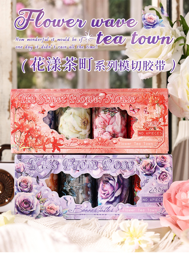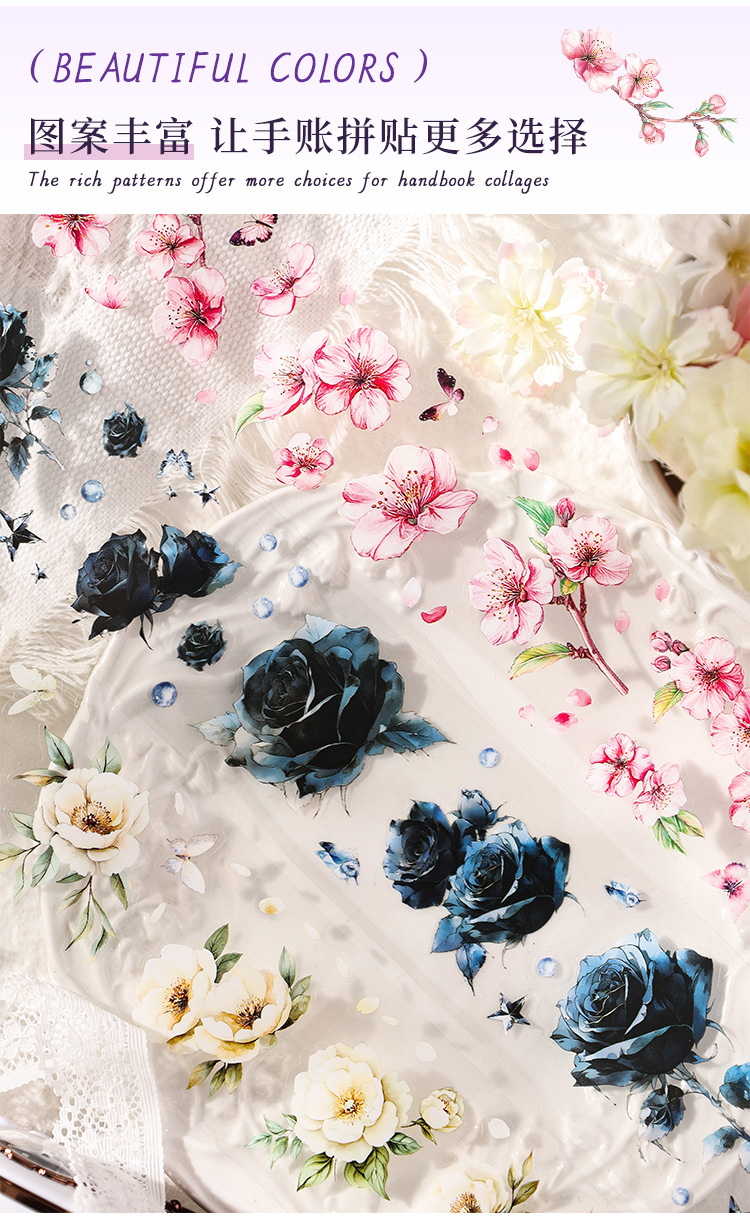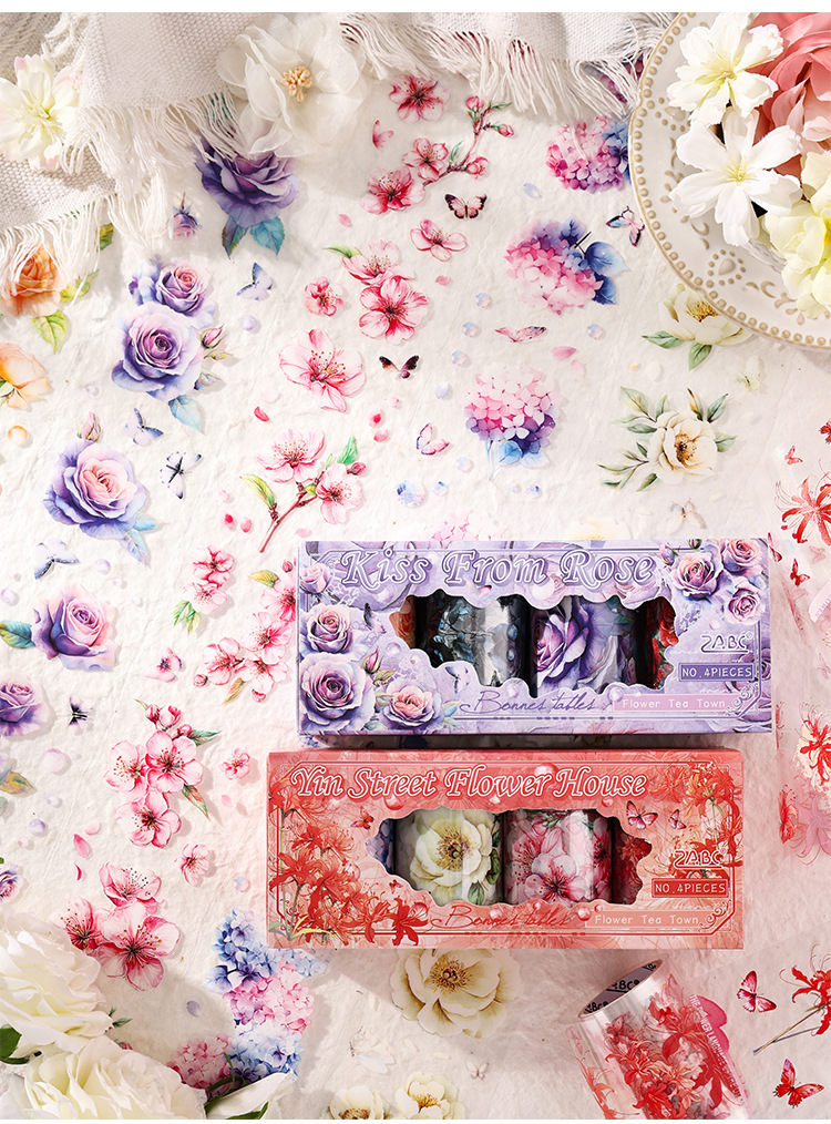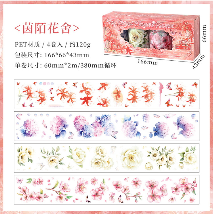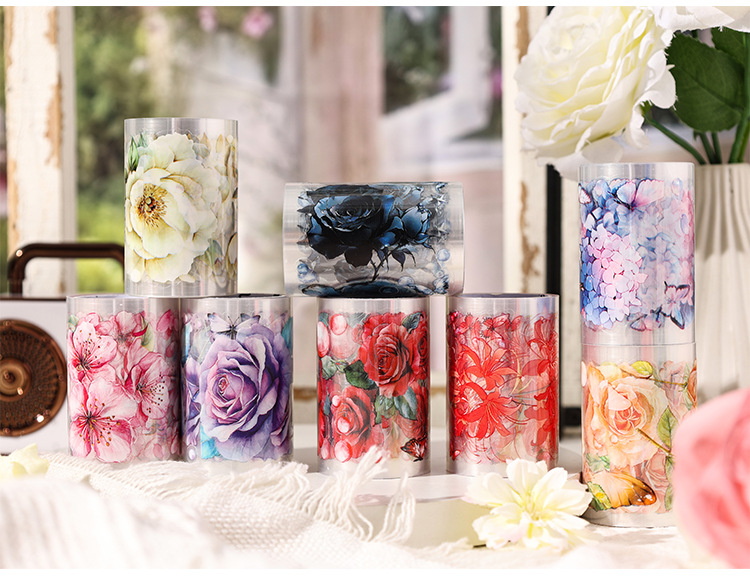 Huayang Chacho Transparente Pet Impermeable Flower Adhesivo Caja de cinta adhesiva Diy Material de cuenta manual Caja de cinta de collage decorativa